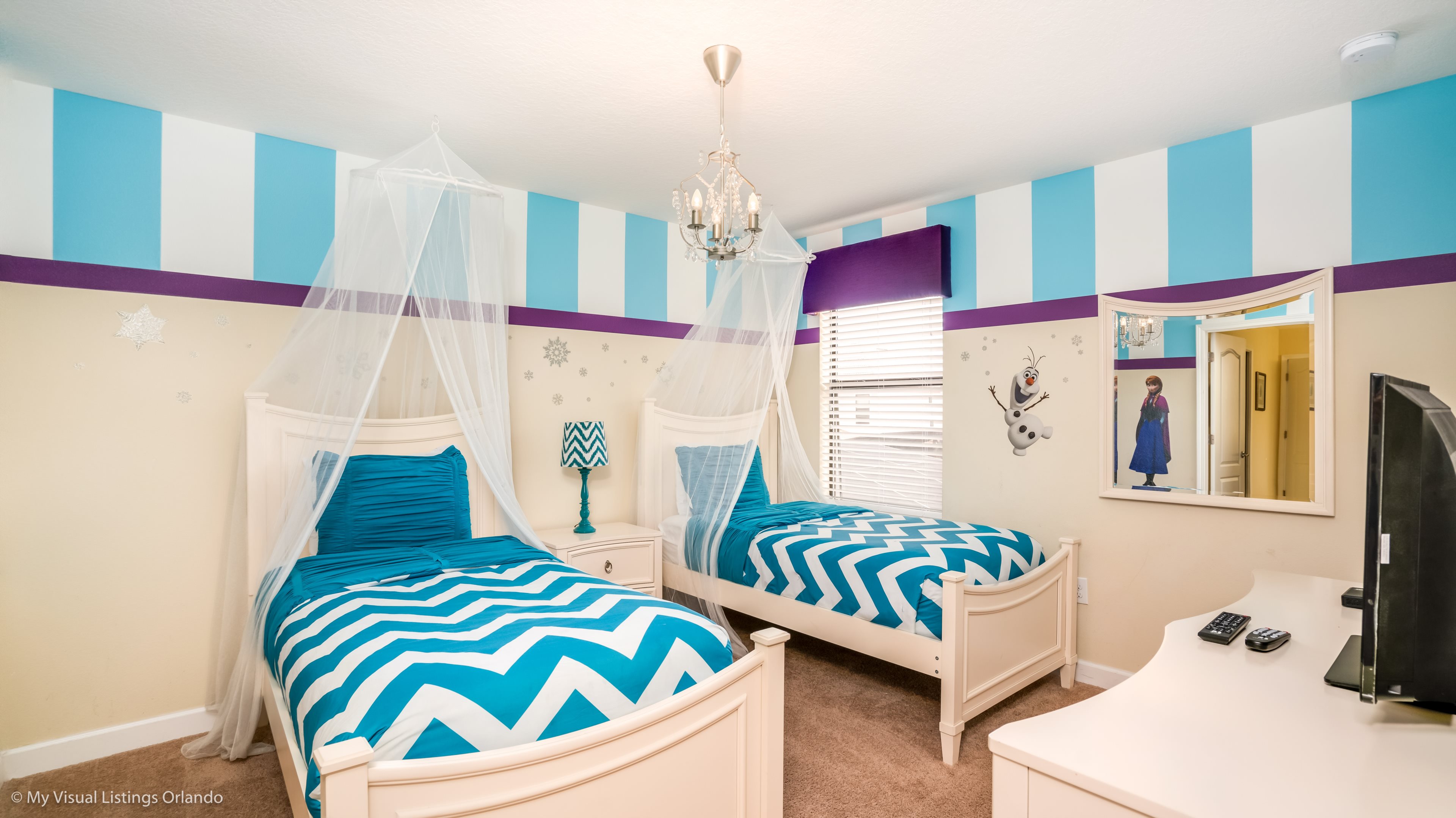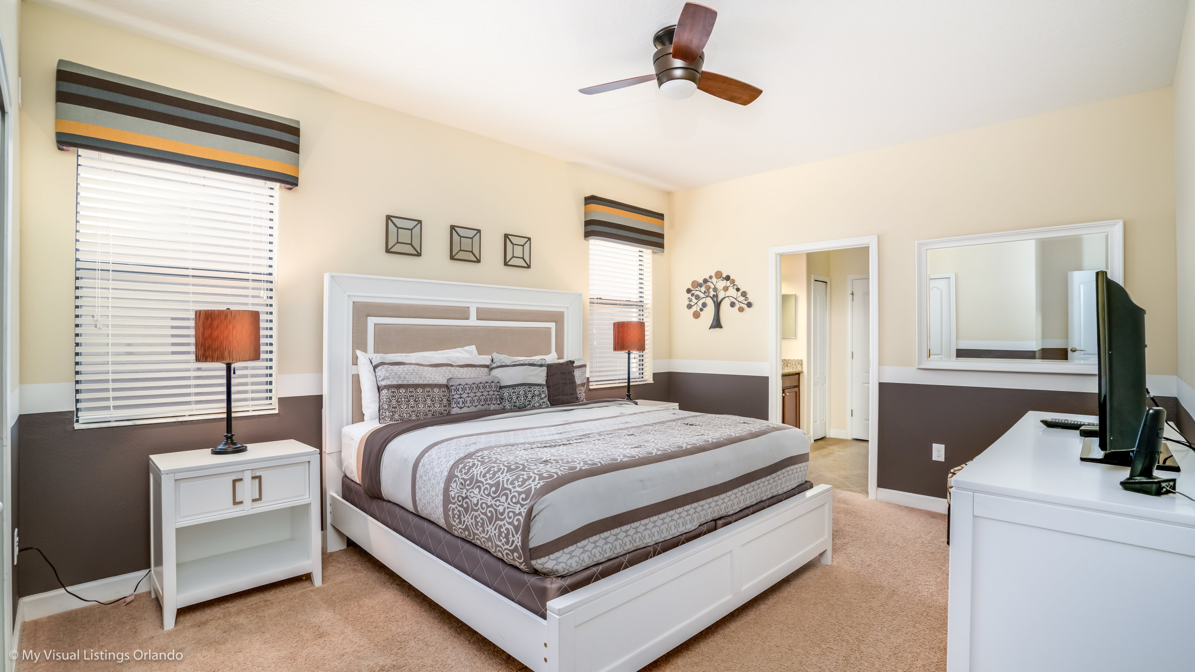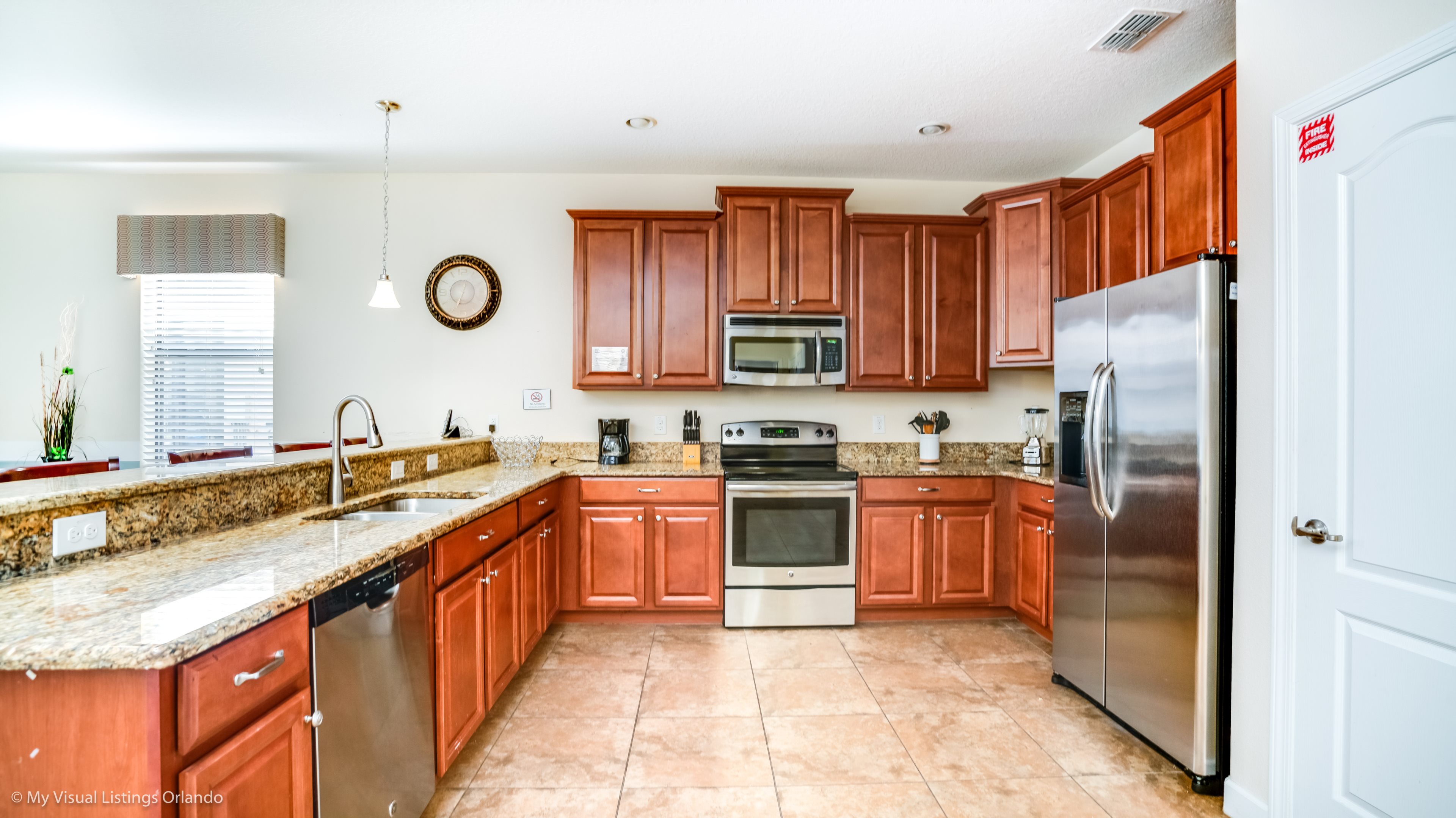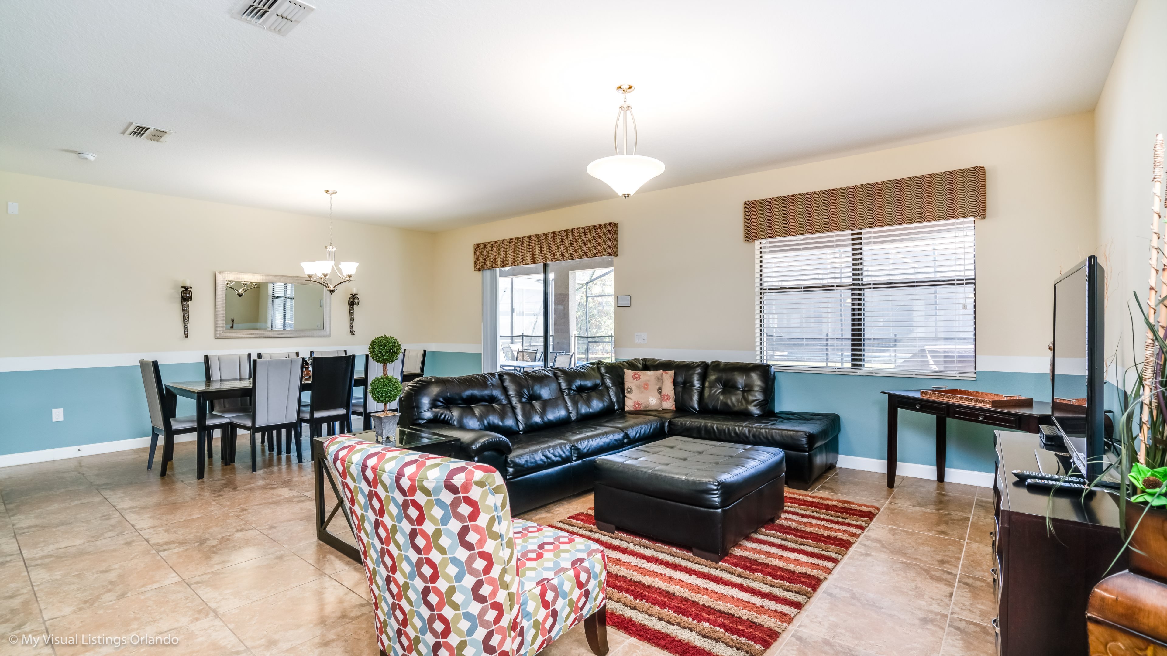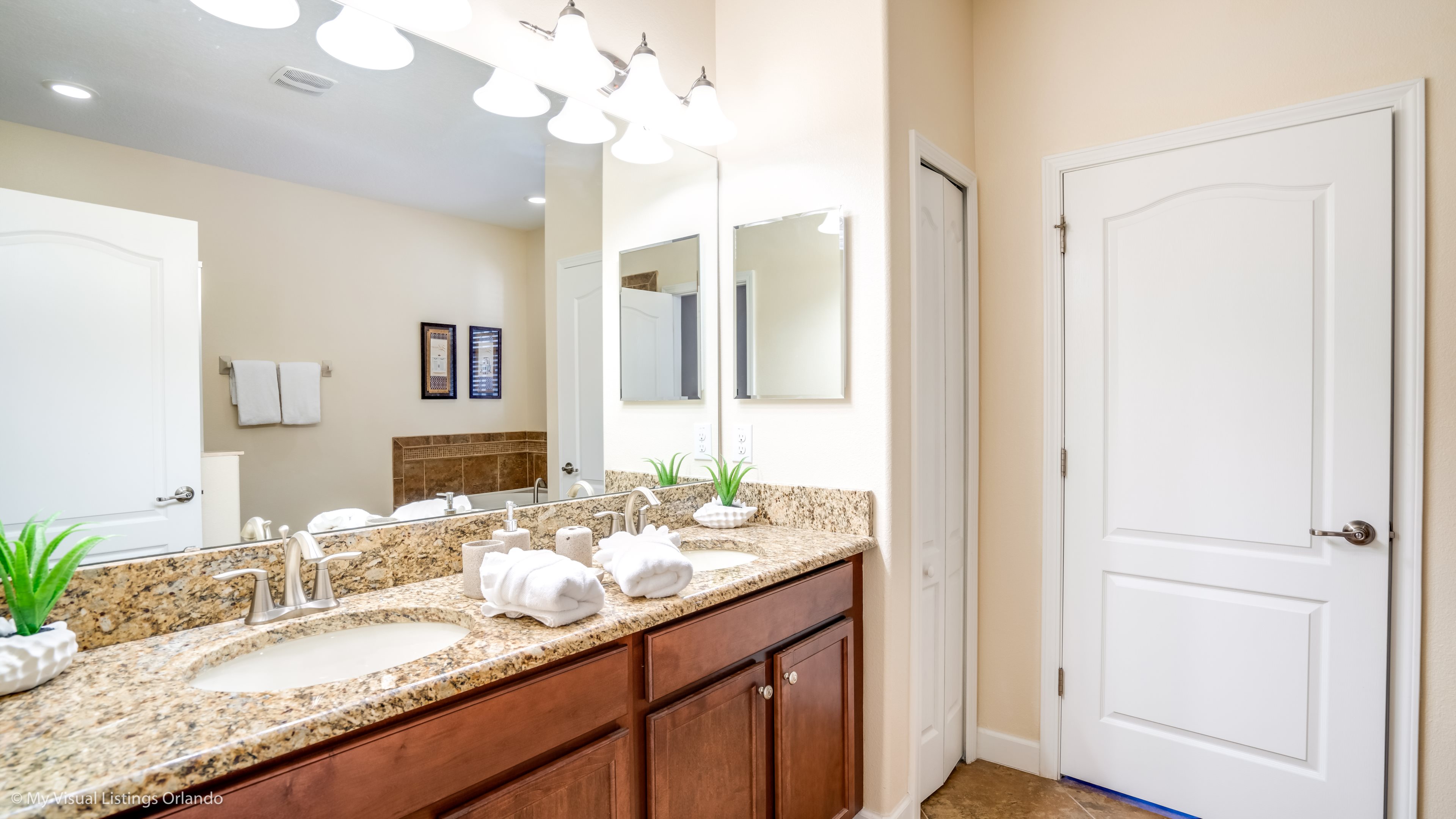 You will feel immediately relaxed as you enter our 8 bedroom, 5 bathroom executive home which sleeps up to 16 in style. We have paid great attention to every detail when we furnished this home and we hope you will enjoy it as much as we do with our own family. With 4 king bedrooms, 2 queen bedroom 2 twins rooms , there is plenty of room for everyone to spread out and relax after a day out or just to stay in and take it easy. Each room has a different feel so all guests should be equally happy with their room, and all have wall mounted flat screen LED Tv’s. The dining room and living area offers plenty of space to congregate and enjoy meals together, and the bright and airy kitchen has all the appliances that you would expect in your own home. (There is also a full-size washer and dryer). You can also enjoy a game of pool in the game room, or watch a movie in the huge loft area, or leave the kids to play on the PlayStation. Or why not take a dip in the large pool or relax in the spa, even in the evening as the pool area is south facing? This home will bring all the excitement of Orlando to you, and have the entire group talking about your trip for months to come.