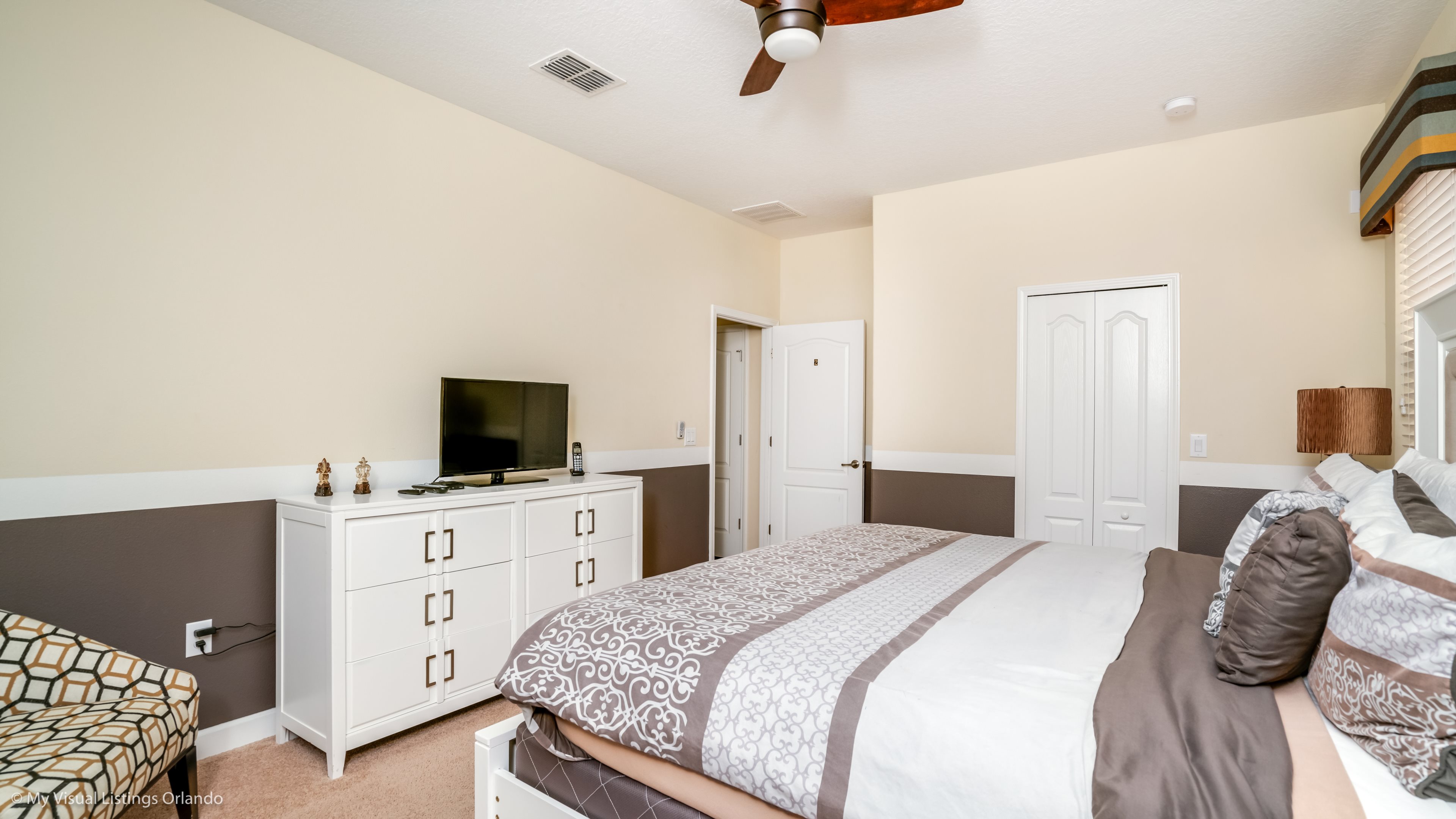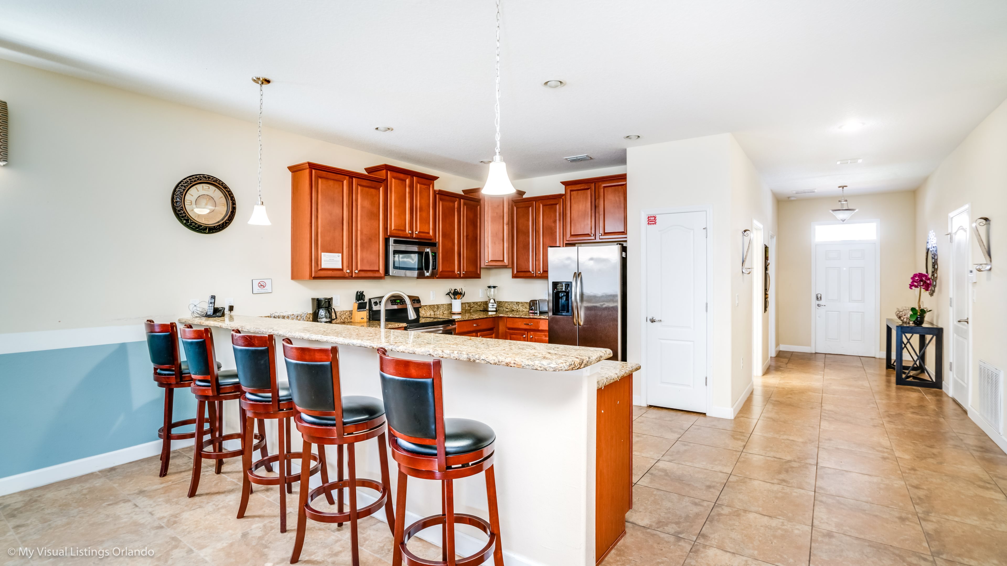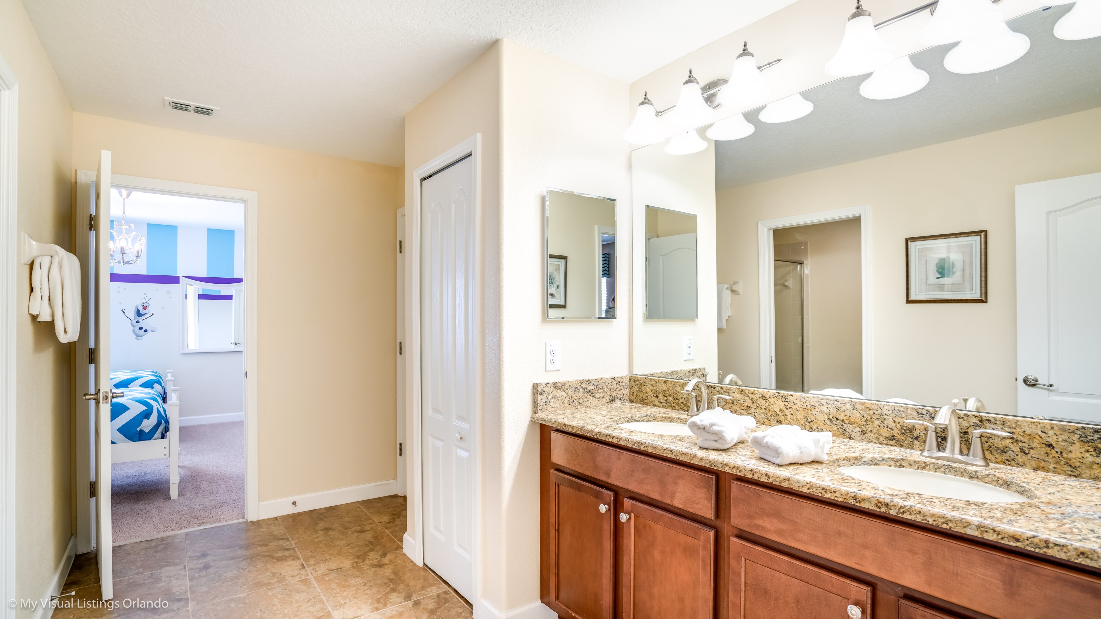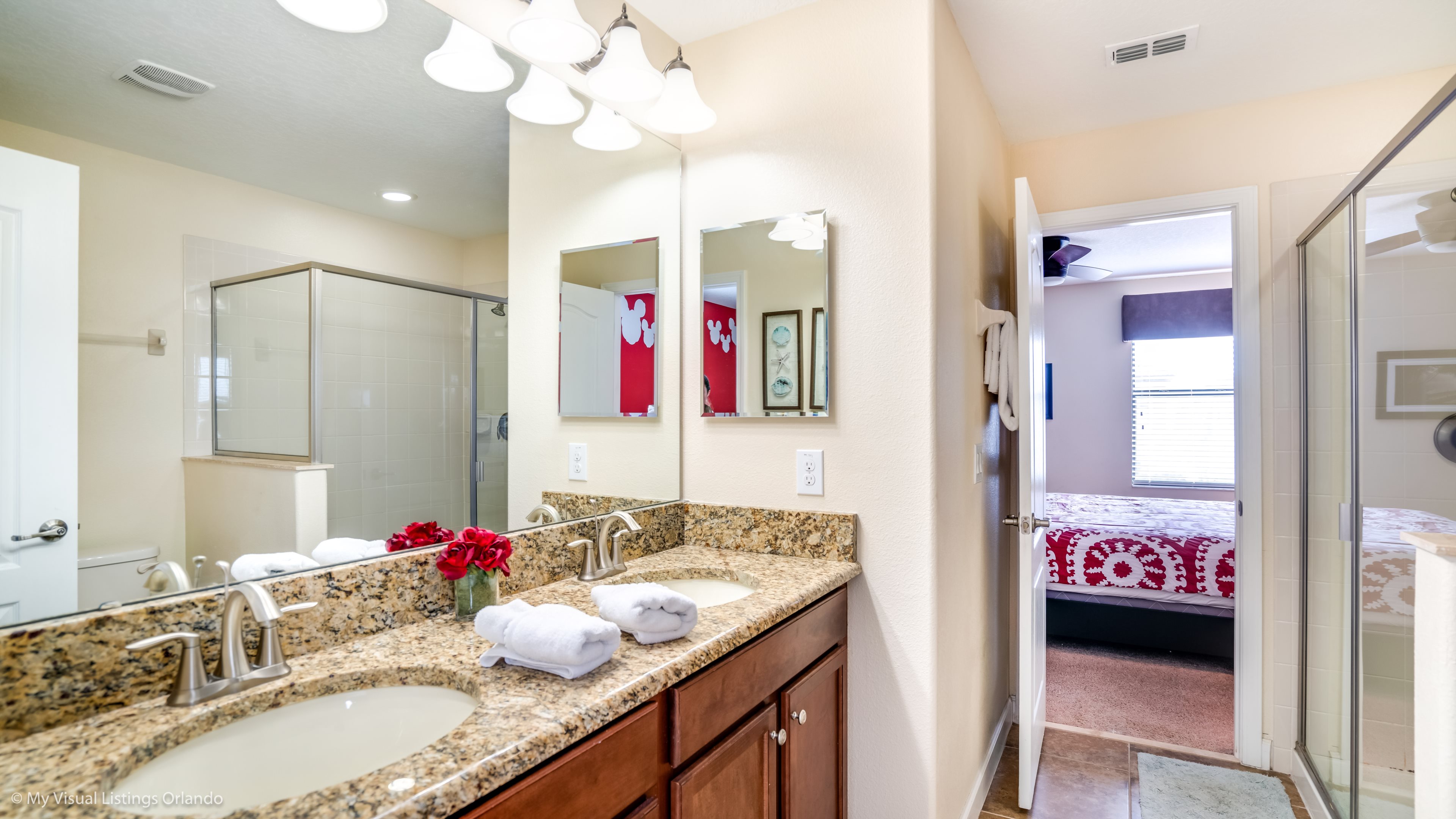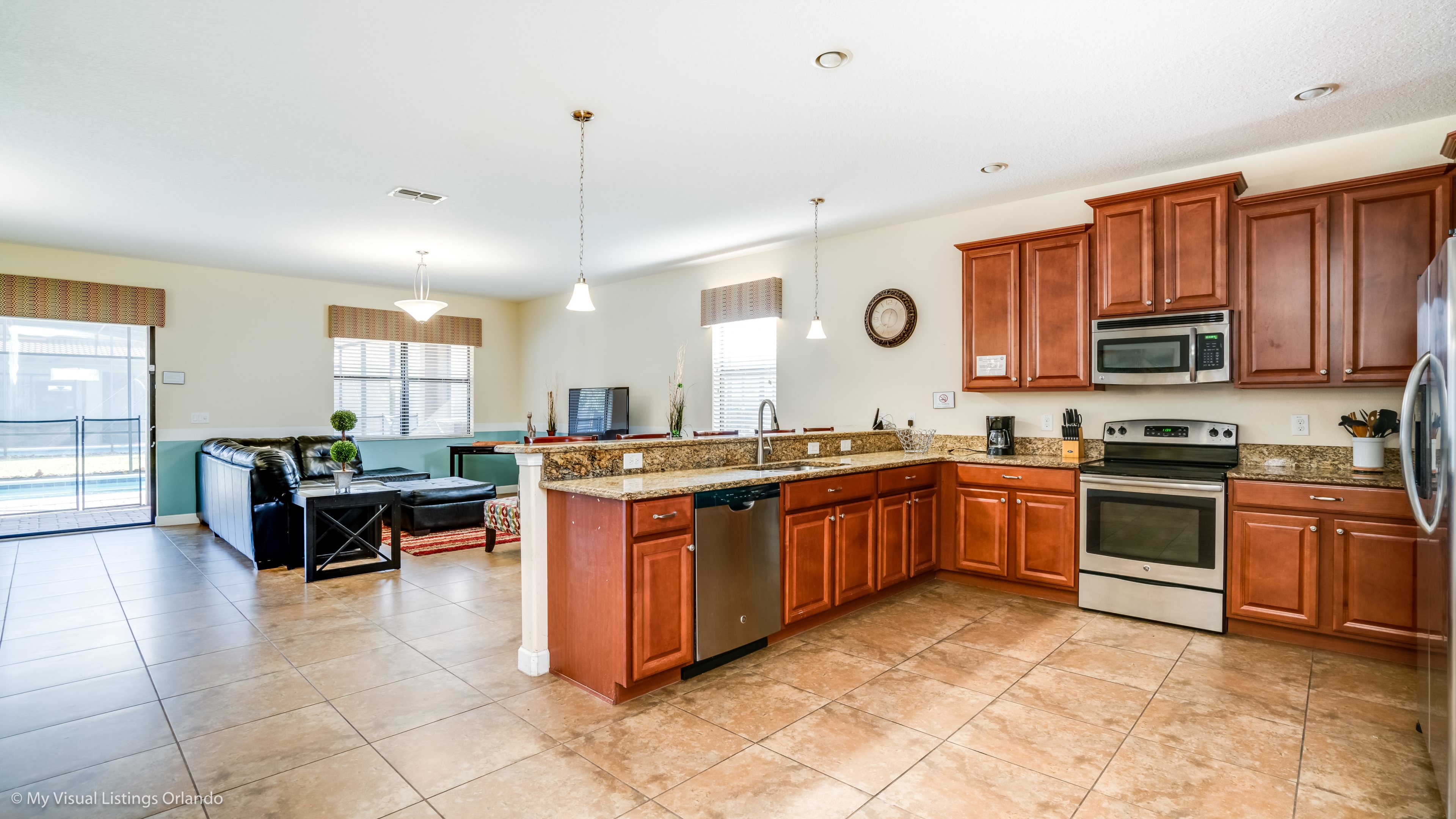 You will feel immediately relaxed as you enter our 8 bedroom, 5 bathroom executive home which sleeps up to 16 in style. We have paid great attention to every detail when we furnished this home and we hope you will enjoy it as much as we do with our own family. With 4 king bedrooms, 2 queen bedroom 2 twins rooms , there is plenty of room for everyone to spread out and relax after a day out or just to stay in and take it easy. Each room has a different feel so all guests should be equally happy with their room, and all have wall mounted flat screen LED Tv’s. The dining room and living area offers plenty of space to congregate and enjoy meals together, and the bright and airy kitchen has all the appliances that you would expect in your own home. (There is also a full-size washer and dryer). You can also enjoy a game of pool in the game room, or watch a movie in the huge loft area, or leave the kids to play on the PlayStation. Or why not take a dip in the large pool or relax in the spa, even in the evening as the pool area is south facing? This home will bring all the excitement of Orlando to you, and have the entire group talking about your trip for months to come.