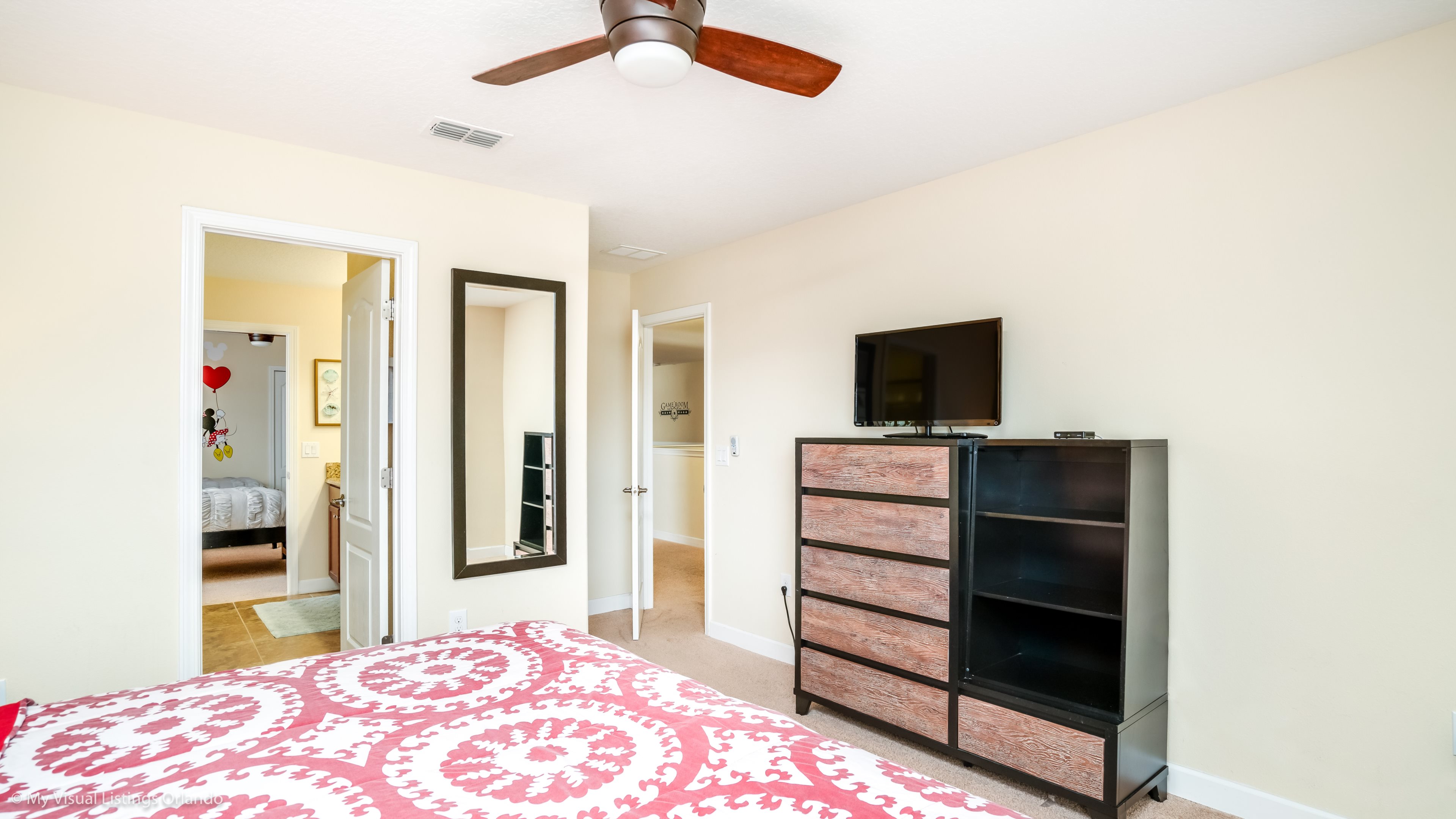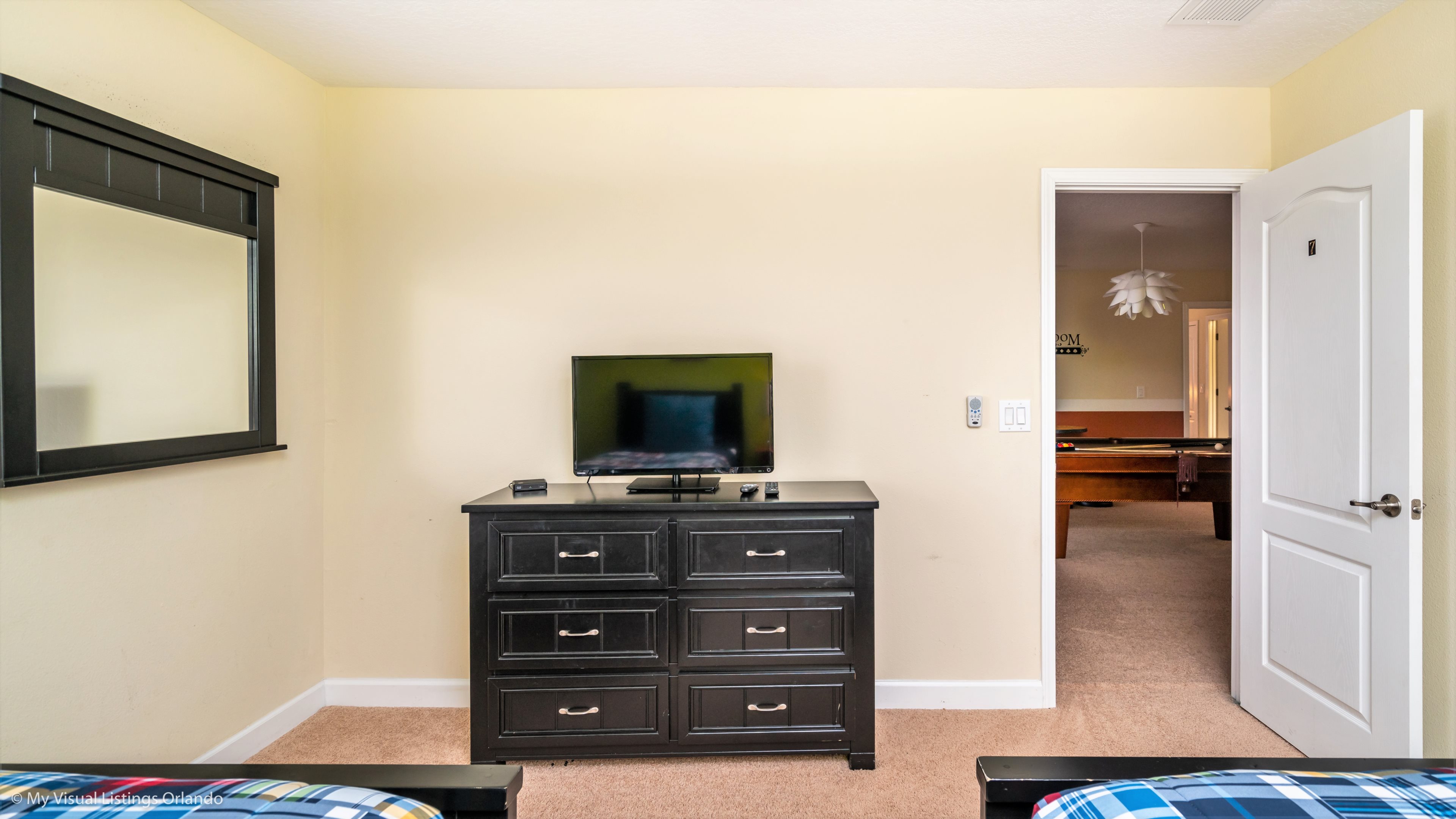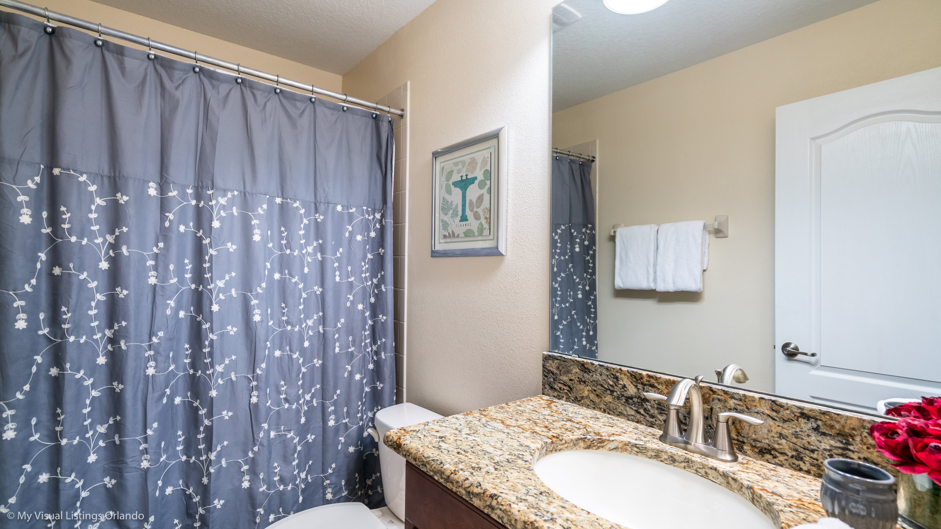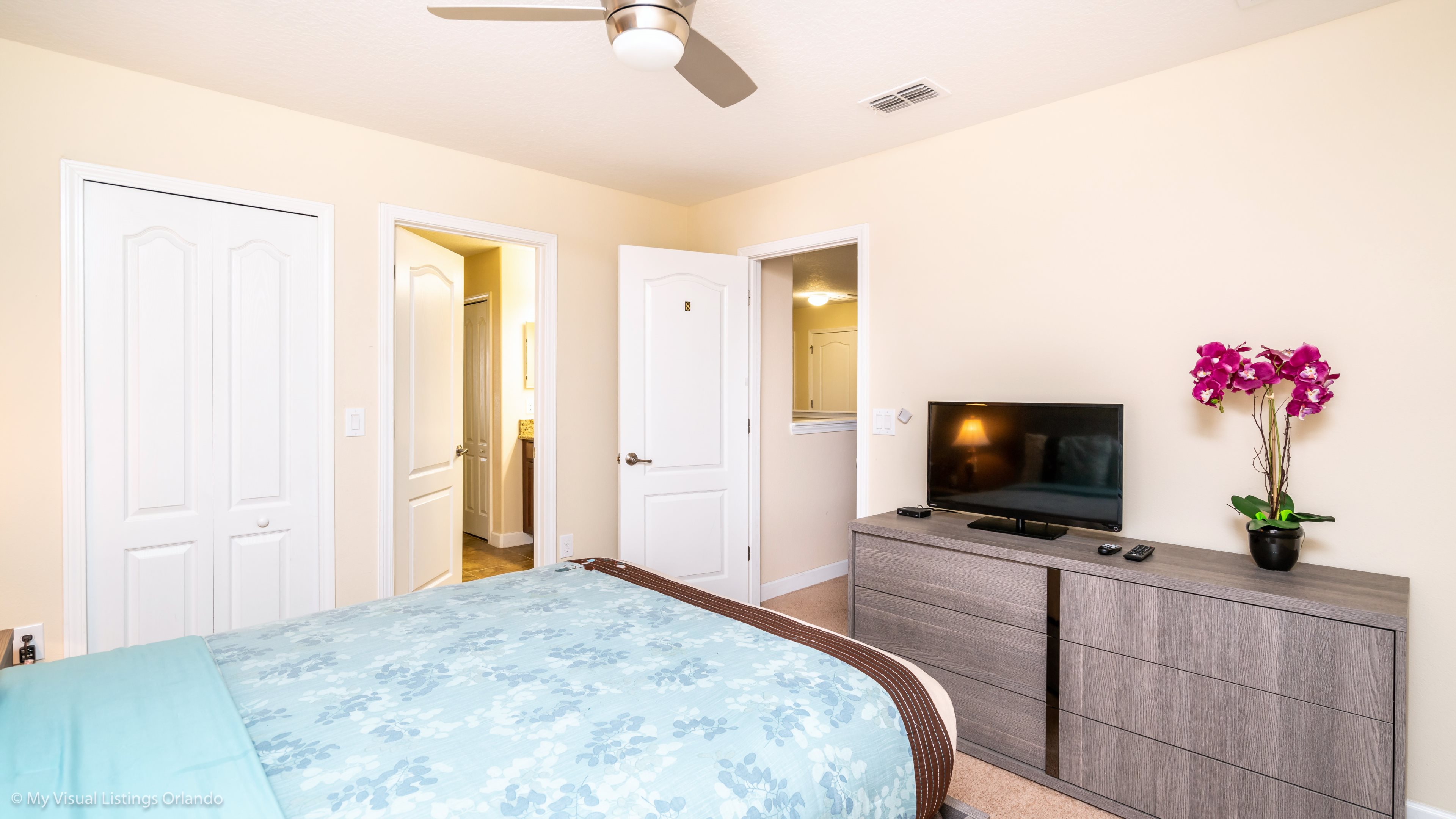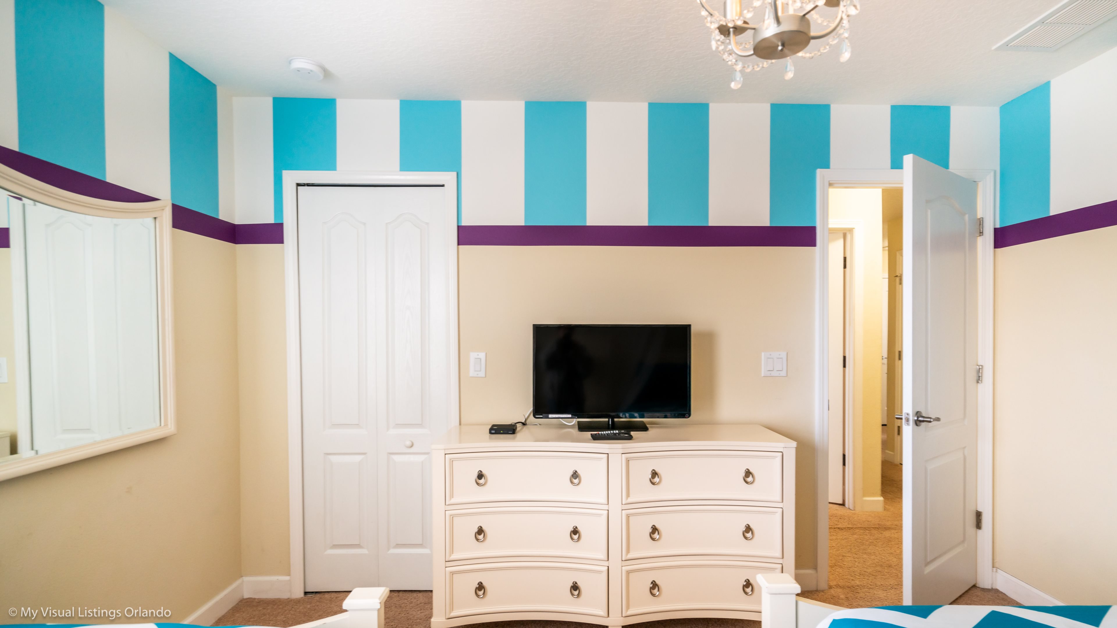 You will feel immediately relaxed as you enter our 8 bedroom, 5 bathroom executive home which sleeps up to 16 in style. We have paid great attention to every detail when we furnished this home and we hope you will enjoy it as much as we do with our own family. With 4 king bedrooms, 2 queen bedroom 2 twins rooms , there is plenty of room for everyone to spread out and relax after a day out or just to stay in and take it easy. Each room has a different feel so all guests should be equally happy with their room, and all have wall mounted flat screen LED Tv’s. The dining room and living area offers plenty of space to congregate and enjoy meals together, and the bright and airy kitchen has all the appliances that you would expect in your own home. (There is also a full-size washer and dryer). You can also enjoy a game of pool in the game room, or watch a movie in the huge loft area, or leave the kids to play on the PlayStation. Or why not take a dip in the large pool or relax in the spa, even in the evening as the pool area is south facing? This home will bring all the excitement of Orlando to you, and have the entire group talking about your trip for months to come.