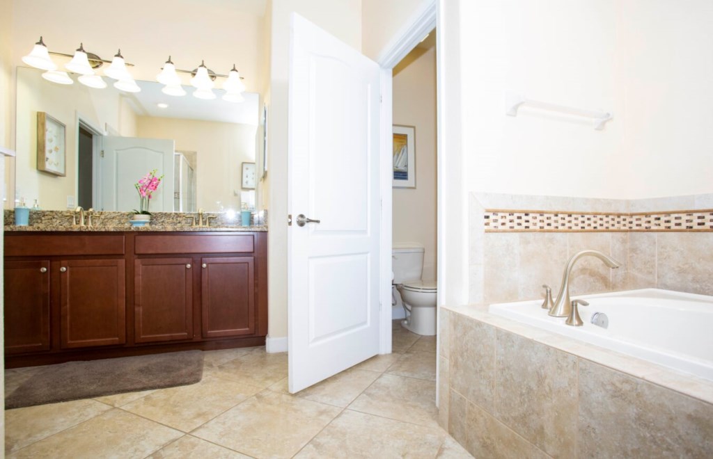 King sized Master with en suite/pool bathroom (shower, tub, twin vanities)