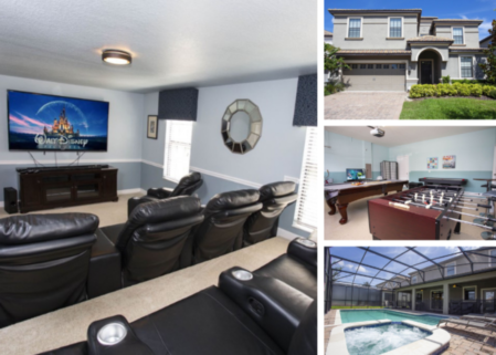 Sleeping up to 16 people, CG061 has bedrooms across both floors, a games room equipped with an air hockey, foosball and pool table as well as a home theater so the fun does not have to end at the theme parks!