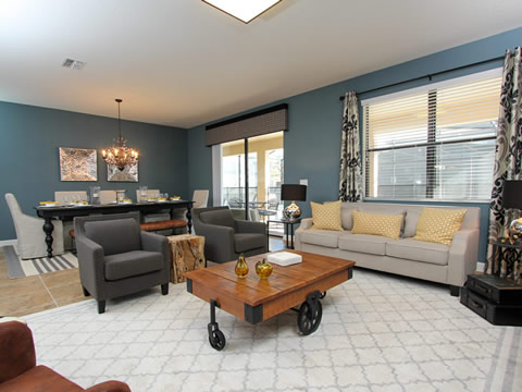 Welcome to Champions Gate Resort and this luxurious 8 bedroom, 5 bathroom rental home located near the theme parks in Orlando, Florida. This rental home has attained the prestigious "Grand" status for having an upgraded professional furniture package. This vacation rental home has all the comforts of home and more. The kitchen is fully furnished and ideal for those times when it makes sense to dine in,with plenty of seating for everyone to dine together. When it's time to relax, there is plenty of room to lounge and watch movies or just gather to share the stories of the day. The benefits of having your own private bedroom is sure to please all while having multiple bathrooms will ensure that all can get ready for the day at their own pace. The pool is sure to provide hours of entertainment as there is no better place to enjoy fun-in-the-sun than Orlando. There is also a washer and dryer and FREE wireless high-speed internet for your convenience.