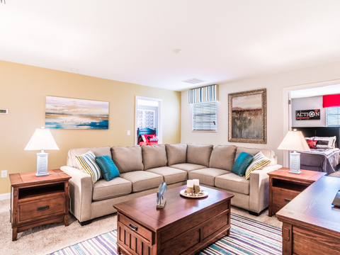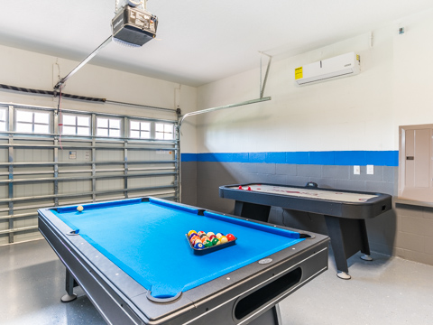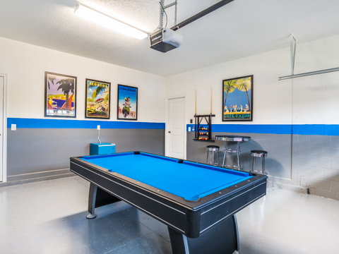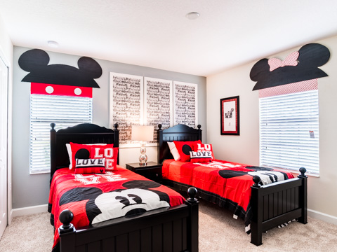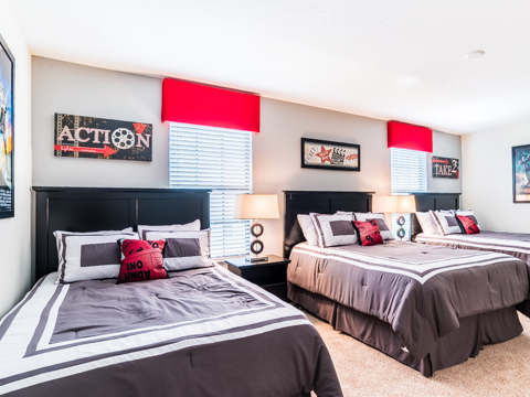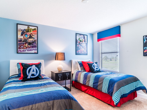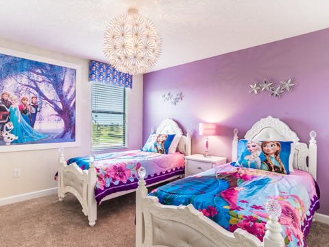 Welcome to Champions Gate Resort featuring the stunning world-class Oasis clubhouse. The lovely, open floor plan is professionally decorated and includes a stunning furniture package with two 58-inch flat-screen TV’s and 2 bluray DVD players. There are 9 bedrooms and 5 bathrooms, sleeping up to 19, allowing plenty of space for everyone to have privacy and sleep comfortably. The bedroom configurations consist of 3 king bedrooms, 1 queen bedroom, 2 double bedrooms (one has 3 double beds) and 3 single bedrooms. There are even 3 themed rooms – a Mickey bedroom, an Avengers bedroom and a Frozen bedroom. The air conditioned game room features billiards and air hockey for some friendly competition. Popular dining options are nearby or simply enjoy preparing meals in the fully furnished kitchen. The private pool and spa has plenty of poolside furniture to provide hours of relaxation. Disney, SeaWorld, Universal and the finest in premium outlet shopping is nearby. Free WIFI and a washer and dryer are included for your convenience. All the comforts of your own home, with all the amenities of a resort, what could be better?