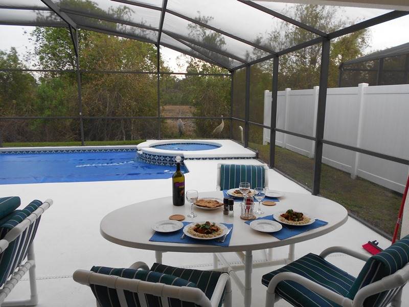 The pool area is complemented by a large outdoor table with ample chairs and lounge seats for all guests. This is all covered by a screen and lanai which allows for those suns rays but keeps out unwanted bugs. The pool area backs onto a conversation area and with fencing either side you are ensured of that little extra privacy during those relaxation hours.
