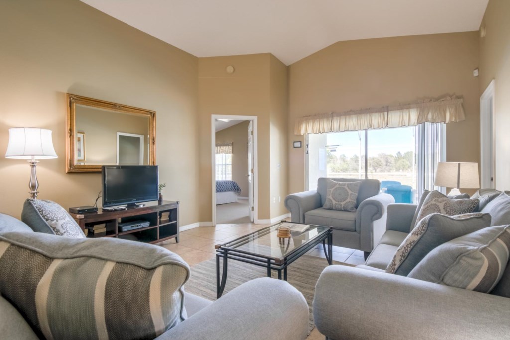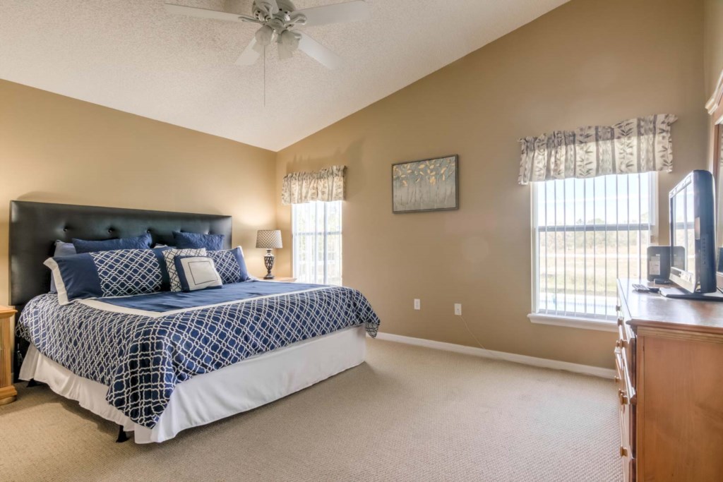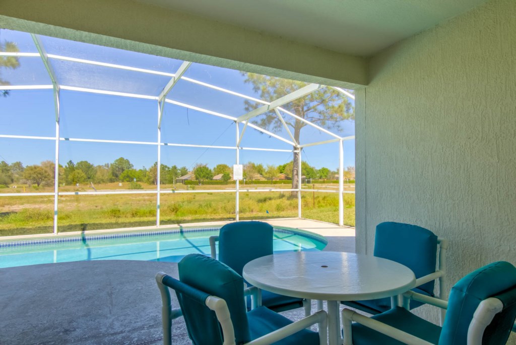 You’ll love the lagoon-shaped pool in the screened-in pool area. It’s perfect for a dip after a long day out in the Florida heat. Alternatively, you have lounge around on one of the sun loungers and work on your tan. If the sun becomes a little too much, you can sit down and admire the view of greenery from the covered lanai.