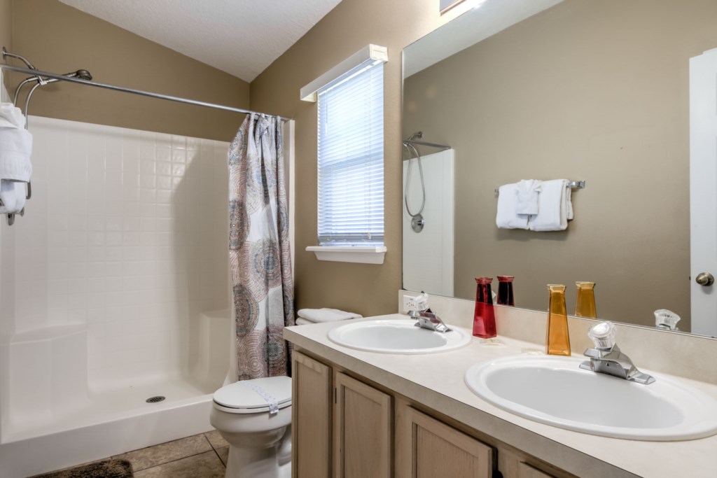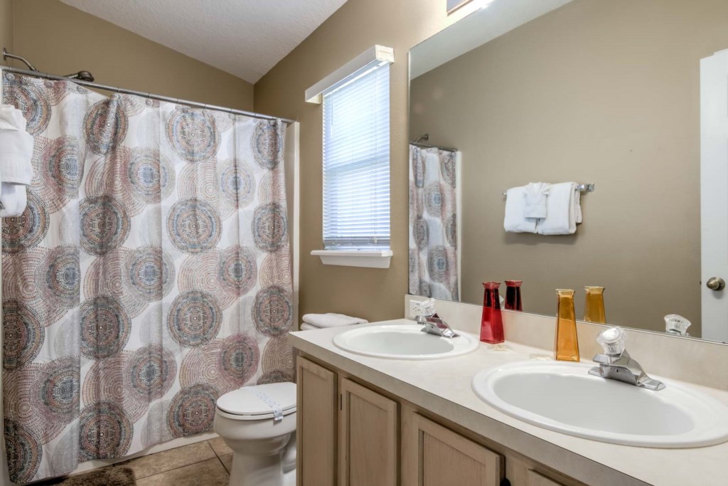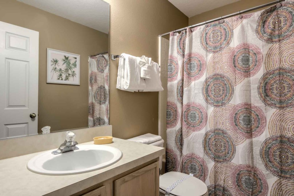 This vacation villa has 5 bedrooms, 2.5 bathrooms, and sleeps up to 10 people. This is a great place for large families or groups looking for somewhere to stay that’s close to Disney, which is less than 9 miles away!