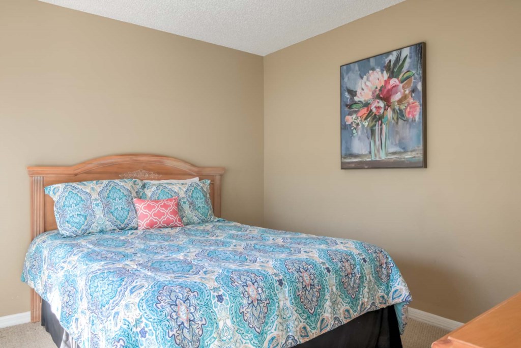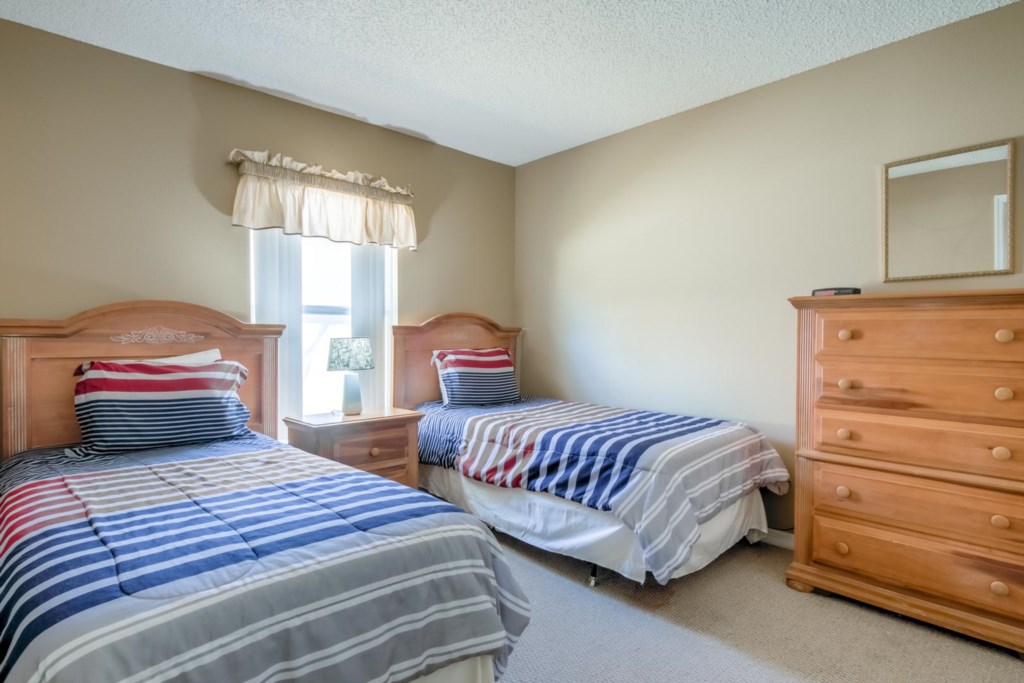 There are 5 bedrooms. The first bedroom, the master bedroom, has a queen-size bed and small en-suite bathroom. Bedroom 2 has also has a queen-size bed. Bedroom 3 has two single beds, bedroom 4 has two single beds, and bedroom 5 also has two single beds. The singles beds are perfect for younger children. There’s also a laundry room with washer and dryer.