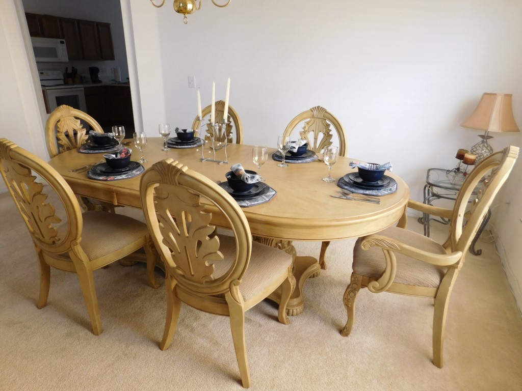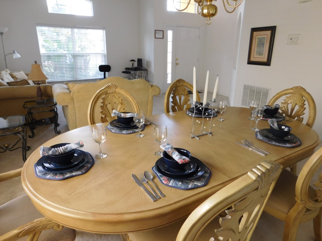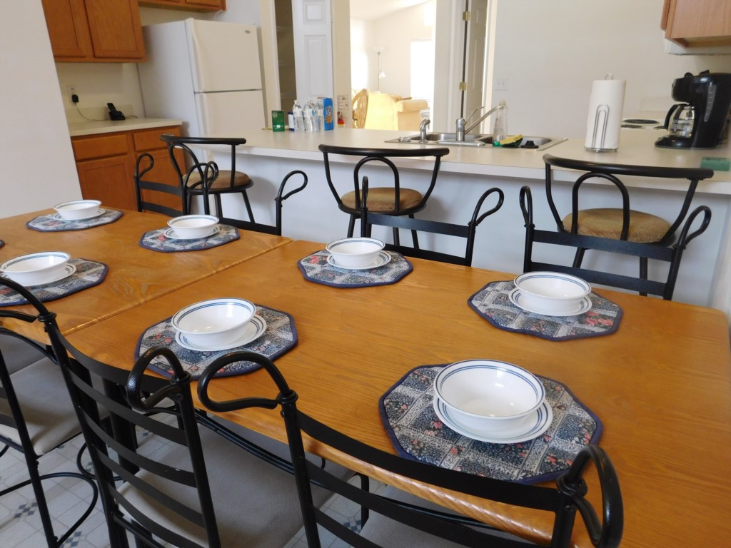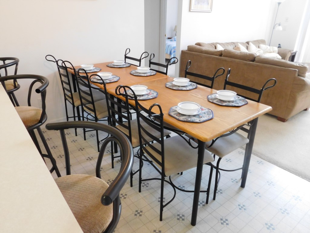 The dining area sits 6 people. The living room is adjascent to the dining room and features a large couch for the whole family along with a large flat screen TV.