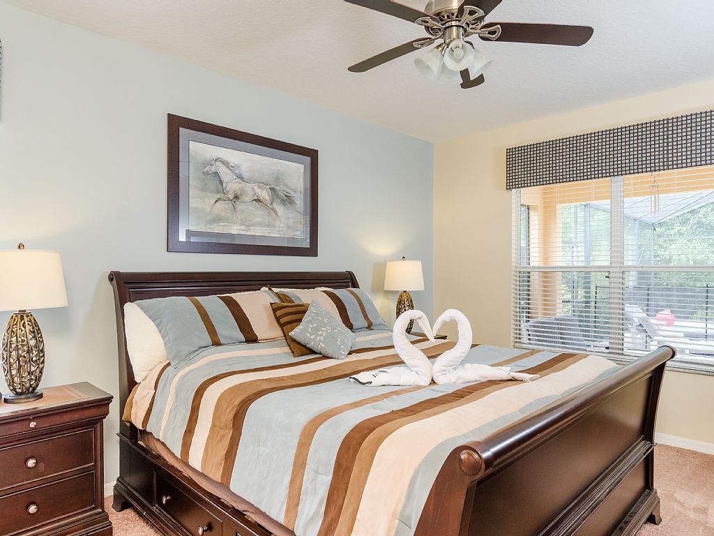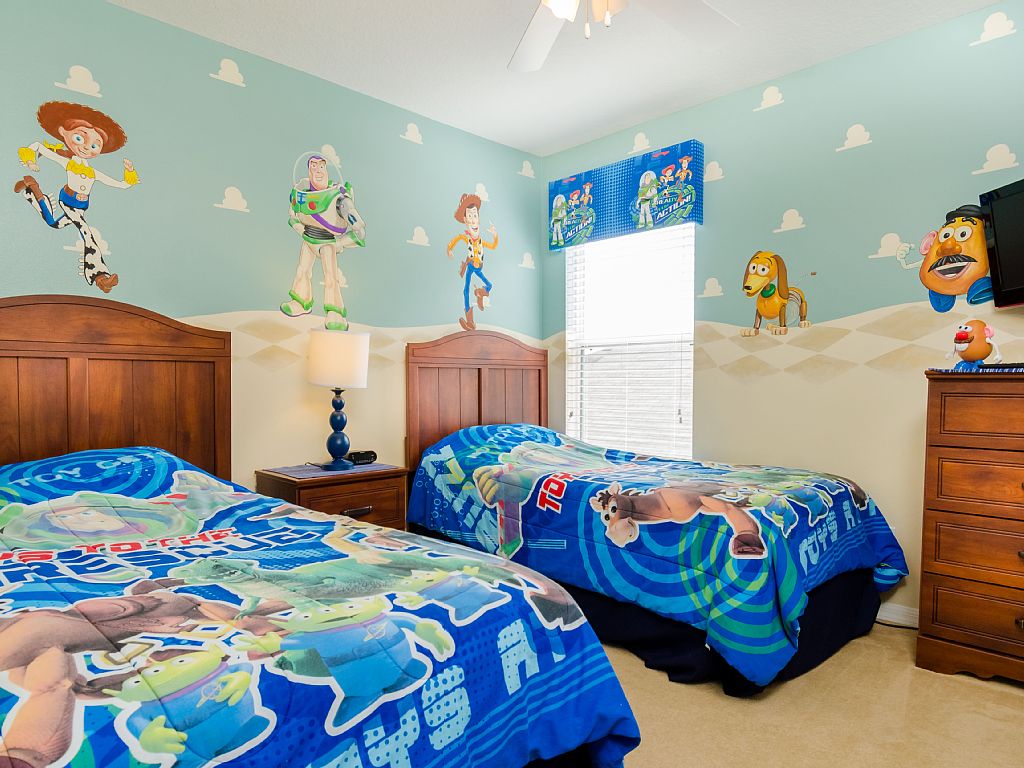 Apart from the master bedroom, this Emerald Island rental has 5 additional bedrooms 3 of which offer large beds and the remaining 2 offer single beds. This Florida vacation home near Disney World is pure luxury and can accommodate up to 12 guests. Furthermore, kids can be treated to their very own magical place. One of the bedrooms in the home has 2 single beds and is beautifully decorated with a princess theme and Disney wall design. The other twin bedroom is decorated with a Toy Story theme with characters like Woody and Buzz Light Year along the walls. This is in keeping with the fact that Disney World is just around the corner from this Emerald Island rental home. The entire decor in this beautiful Emerald Island vacation rental is of the highest standard. If you want to rent a villa near Disney World, then this is the Emerald Island Rental villa for you.