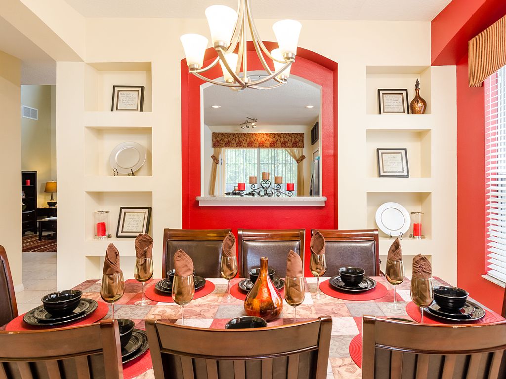 No home is ever complete without a kitchen. For this Florida vacation rental home, you don’t just get appliances; you are assured of only top quality! We opted for the upgraded kitchen and cooking equipment package when we furnished this Emerald Island gem, all this for your convenience and comfort. This Emerald Island rental villa comes complete with a refrigerator and ice dispenser, stove, oven, microwave oven, crock pot, electric kettle, ample pots and pans and dish washer. All these are situated in a marbled counter top kitchen area. You will find a quaint little space designated as a breakfast nook. This 4-seater table offers a break from all the fuzz and commotion. It overlooks the pool area giving it a relaxing view while you’re enjoying a meal or cup of tea.