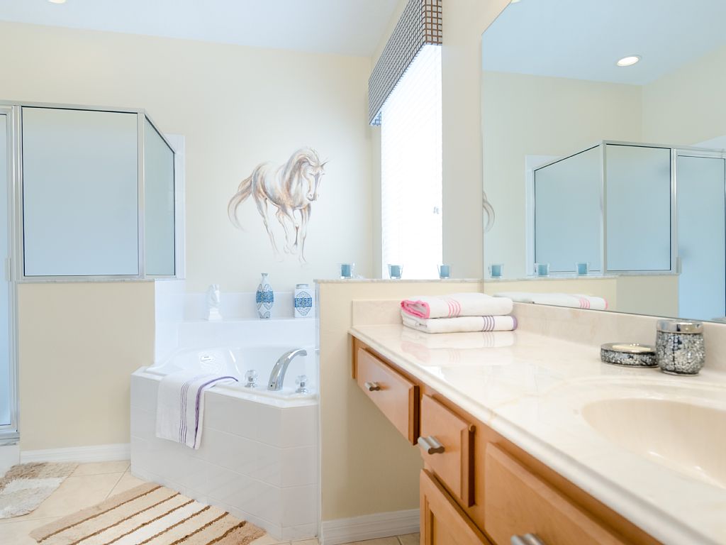 This beautiful villa is in the gated Emerald Island Resort this villa is newly furnished and professionally decorated. In the villas master bedroom, you can enjoy a good night’s rest in your very own king size bed. The vacation rentals master bedroom is equestrian themed with prints from British artist Lydia Kiernan and comes equipped with its very own master bath fitted with a very relaxing tub for your pleasure. Furthermore, you have your very own 42 inch Flat screen TV so that you may enjoy your favorite programs.