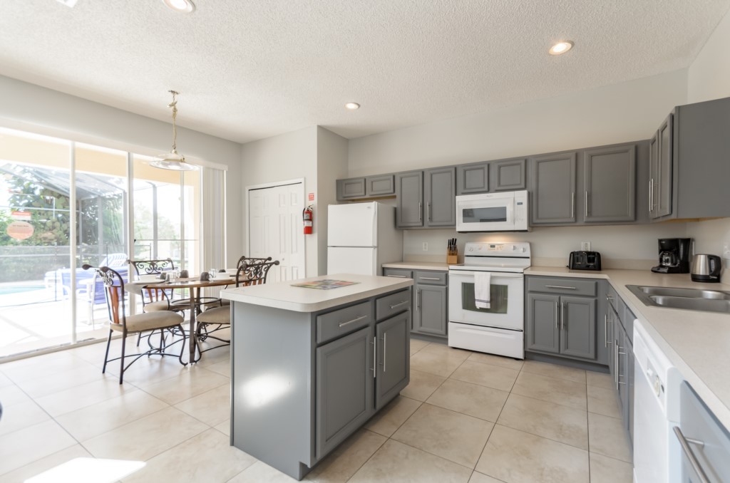 No home is ever complete without a kitchen. For this Florida vacation rental home, you don’t just get appliances; you are assured of only top quality! We opted for the upgraded kitchen and cooking equipment package when we furnished this Emerald Island gem, all this for your convenience and comfort. This Emerald Island rental villa comes complete with a refrigerator and ice dispenser, stove, oven, microwave oven, crock pot, electric kettle, ample pots and pans and dish washer. You will find a quaint little space designated as a breakfast nook. This 4-seater table offers a break from all the fuzz and commotion. It overlooks the pool area giving it a relaxing view while you’re enjoying a meal or cup of tea.