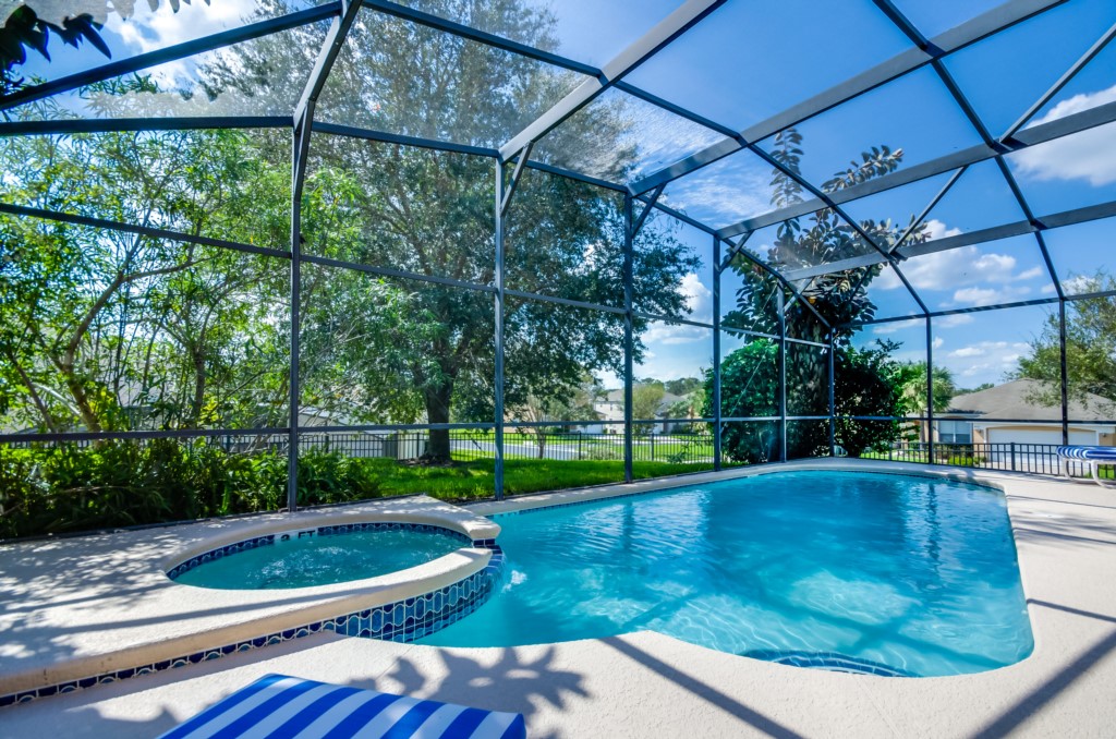 For your entertainment of course who can forget the patio with plenty of seating and lounge chairs for everyone in your party. The Emerald Island villa offers a tranquil pol and sunbathing area with a jetted Jacuzzi. This vacation rental has views of Florida Conservation behind the home. This private sanctuary is all yours to enjoy; with no neighbors behind you you will feel the tranquility. A screened pool keeps the pests out but lets the Florida sunshine in while you take a dip in your very own pool. If you prefer, you can simply relax under the stars in your very own outdoor spa/Jacuzzi.