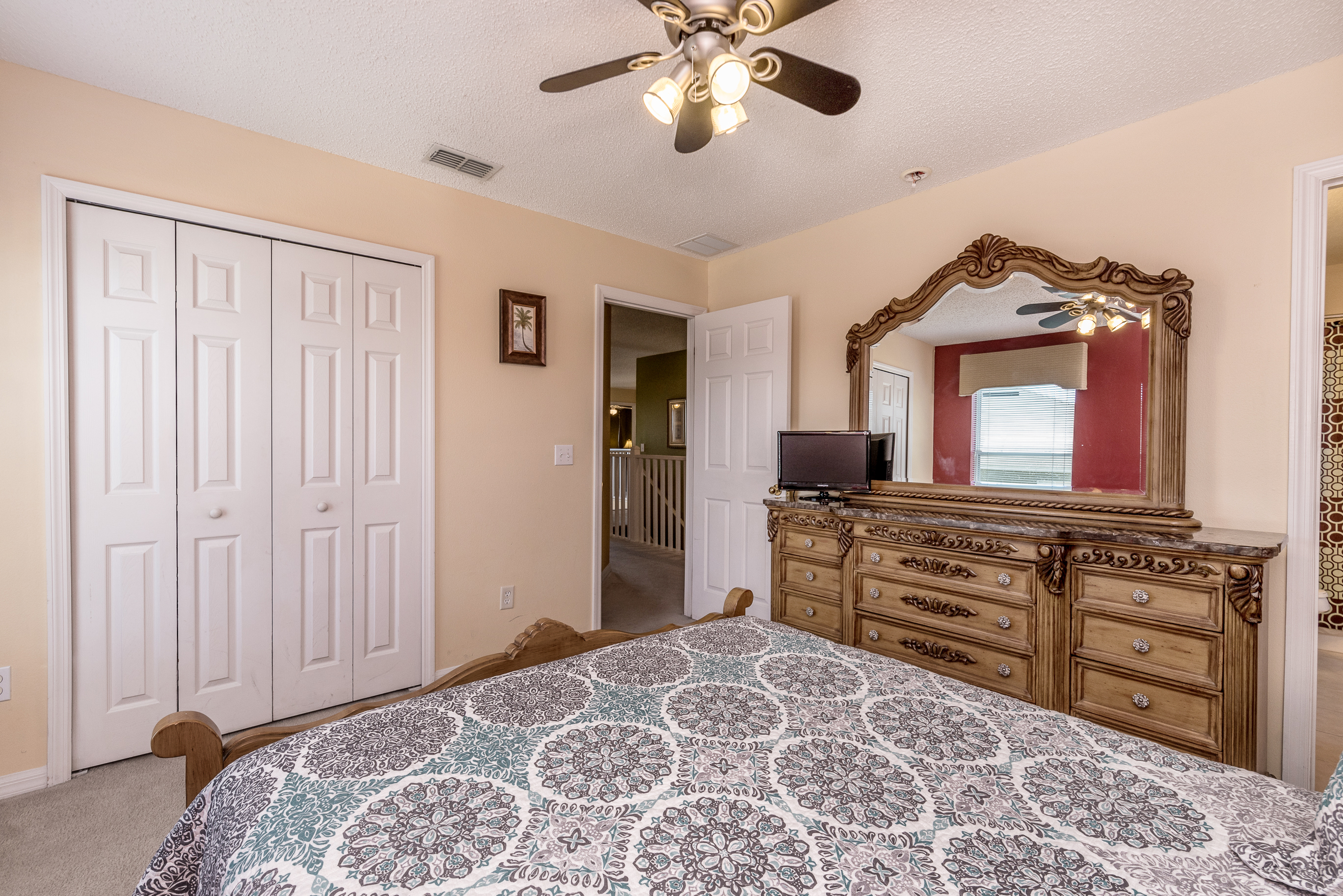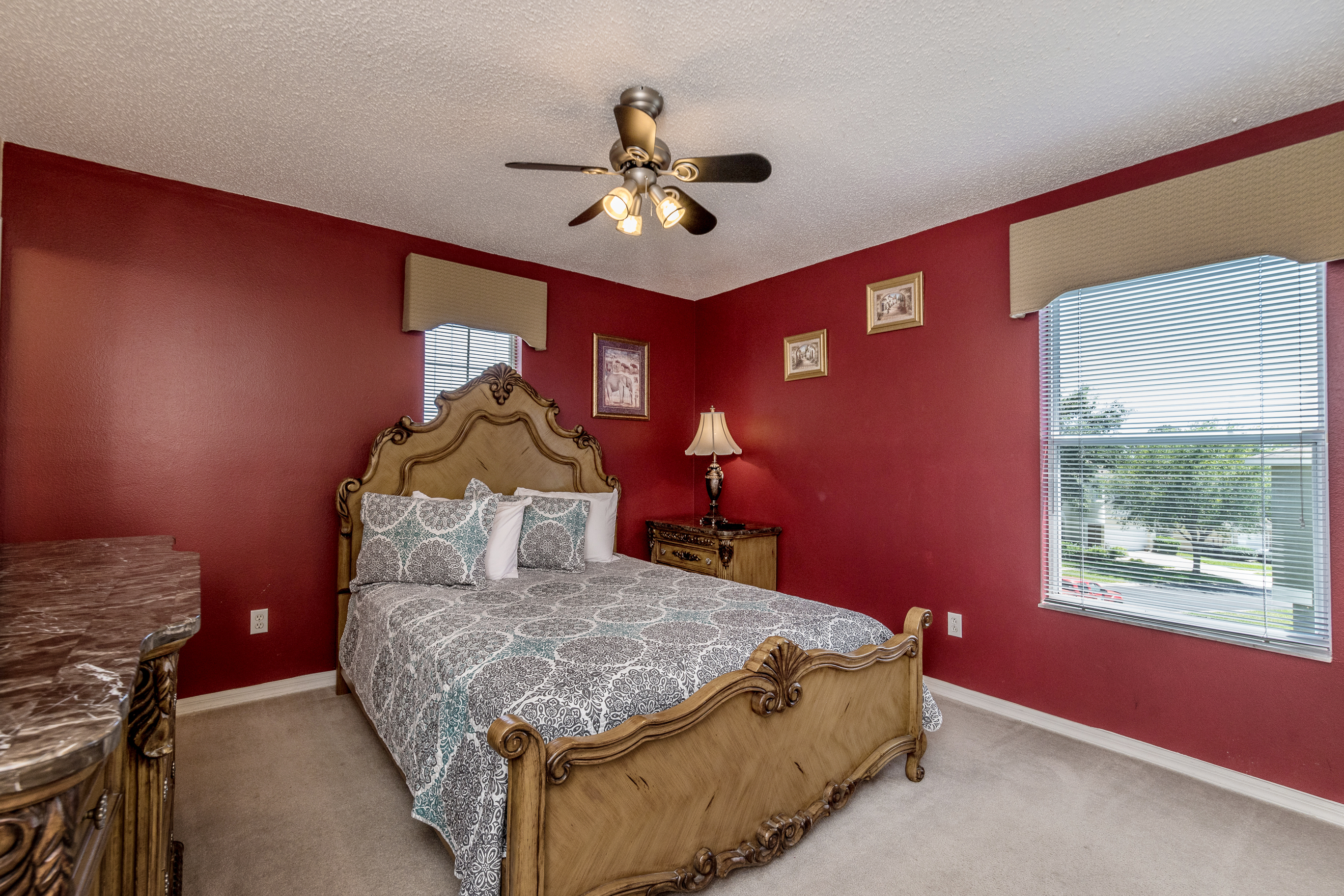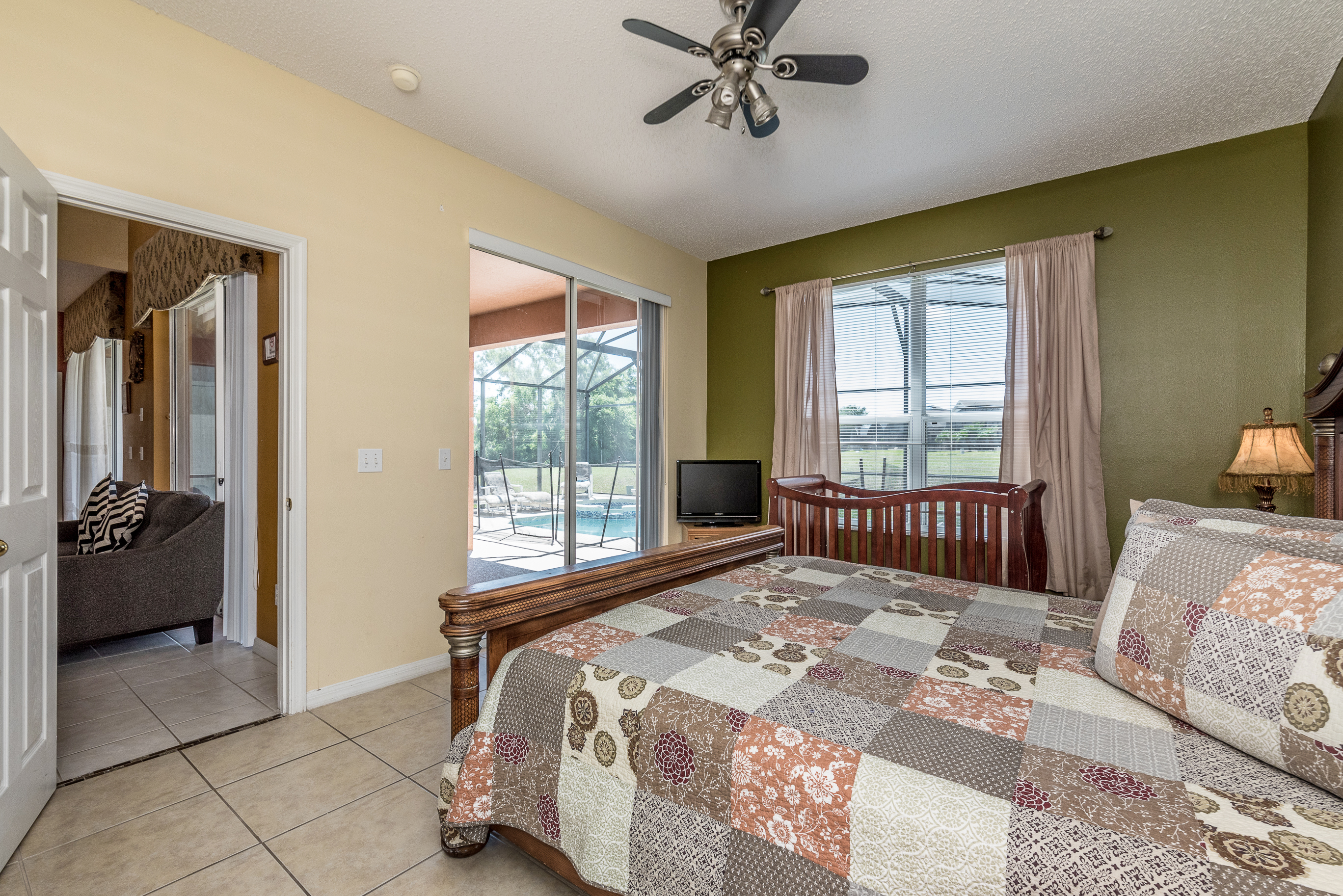 This lovely 7 BEDROOMS/5.5 BATHROOM home backs to a dry pond!! Located in guard gated Emerald Island Resort. Three MASTER BEDROOMS, high ceilings, storage galore, PLUS private pool and spa! The spacious kitchen overlooks a family room perfect for entertaining your group! This home has plenty of bedrooms for 1 large family or multiple families vacationing together. There is a master bedroom and private master bathroom suite downstairs with private French Doors that lead to the outdoor lanai and pool/deck area. Upstairs has a total of 6 bedrooms consisting of 2 wings with 2 master bedrooms, secondary bedrooms sharing Jack and Jill bathrooms, with an amazing breezeway that overlooks downstairs living area. Nice open back yard view from the pool area, sun in the pool all day long. 3 miles from Disney World and all things Florida! Near shopping, dining and entertainment.