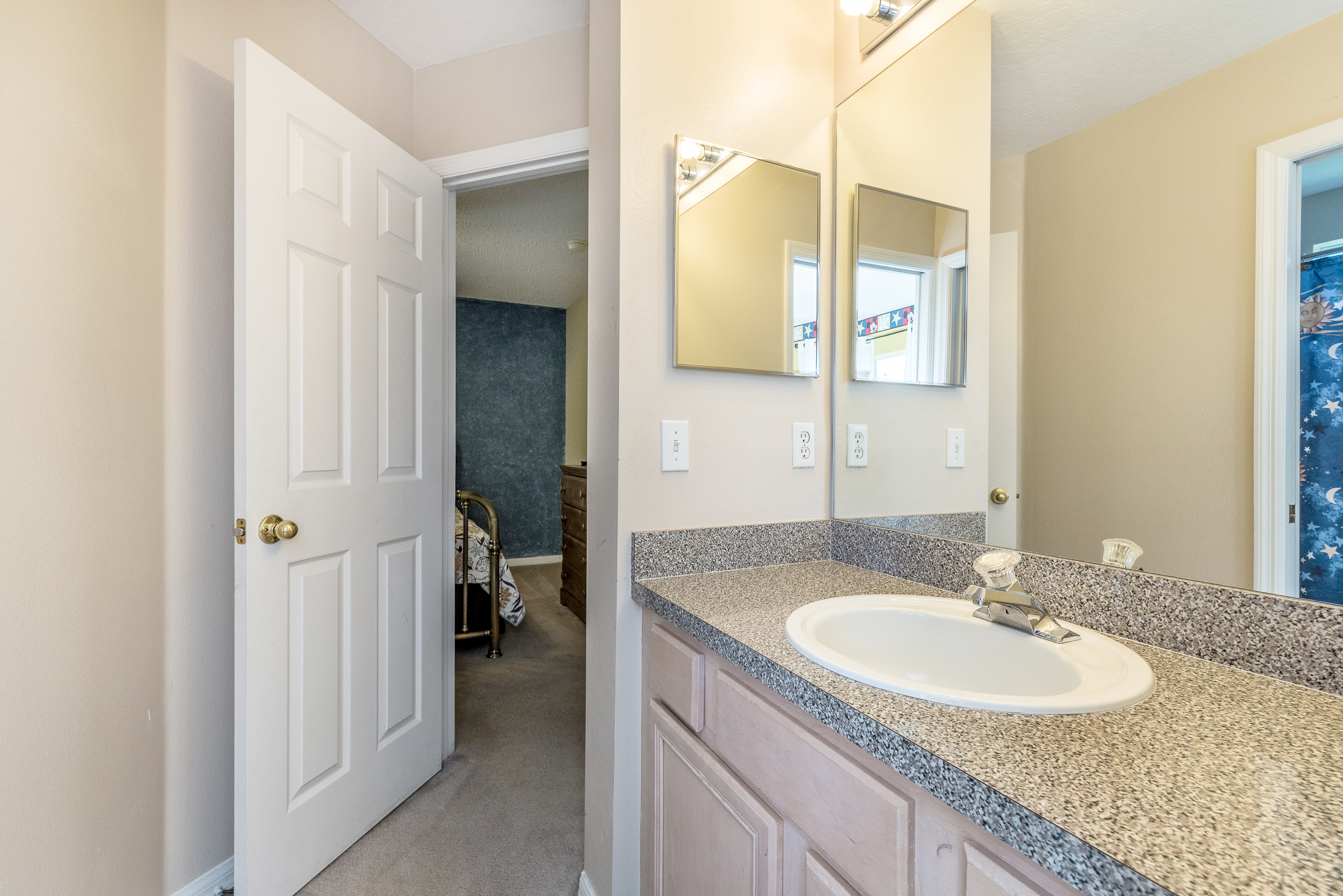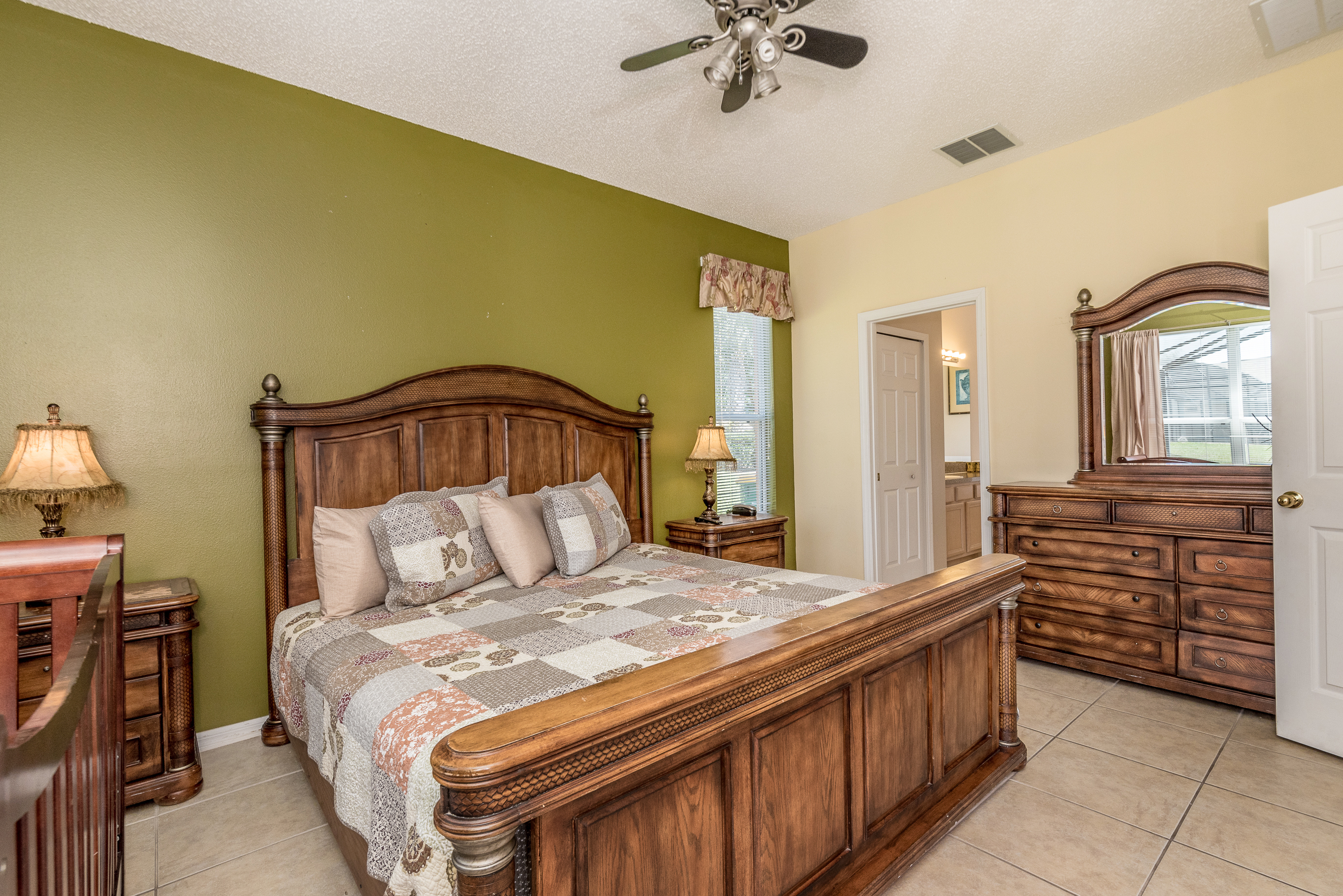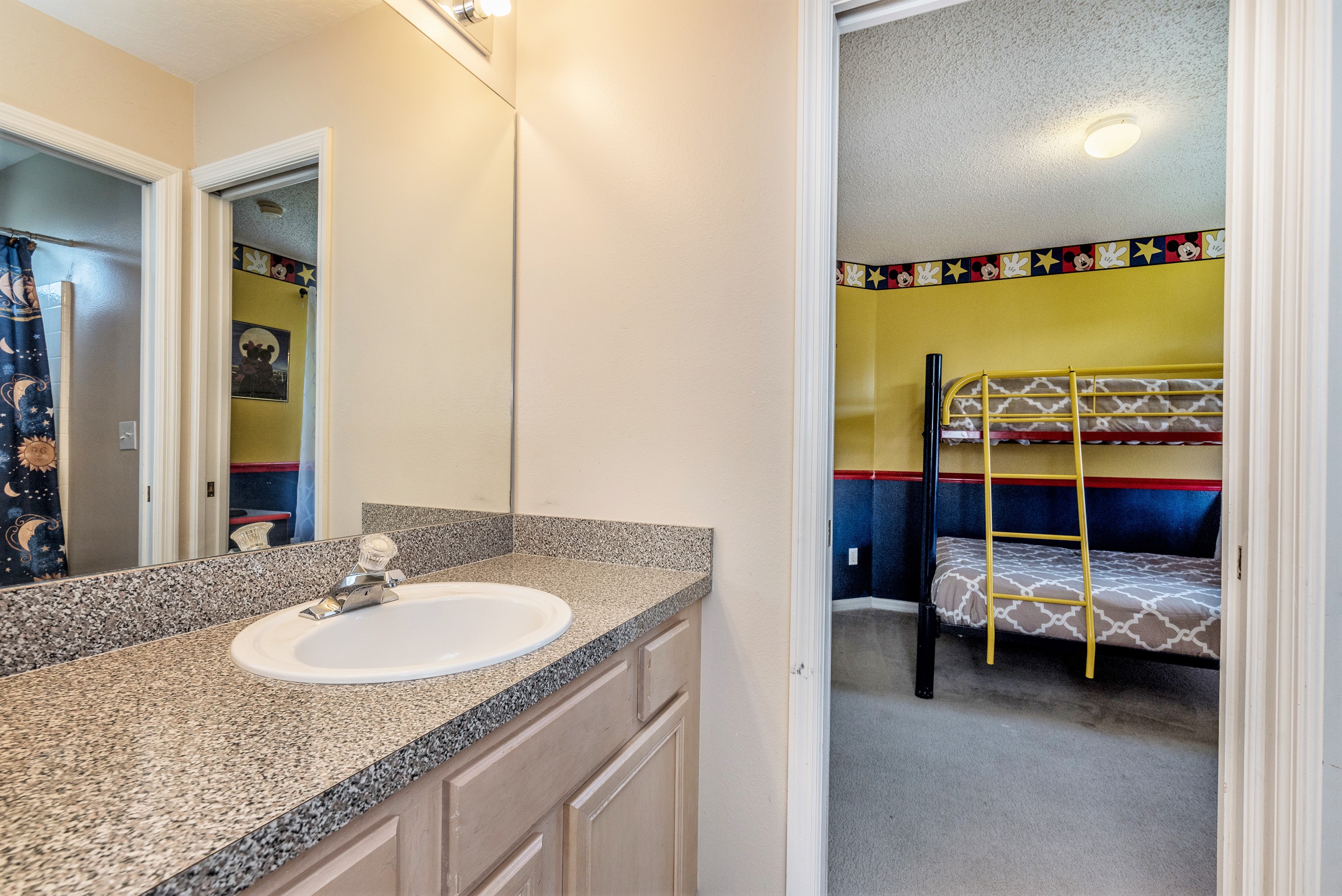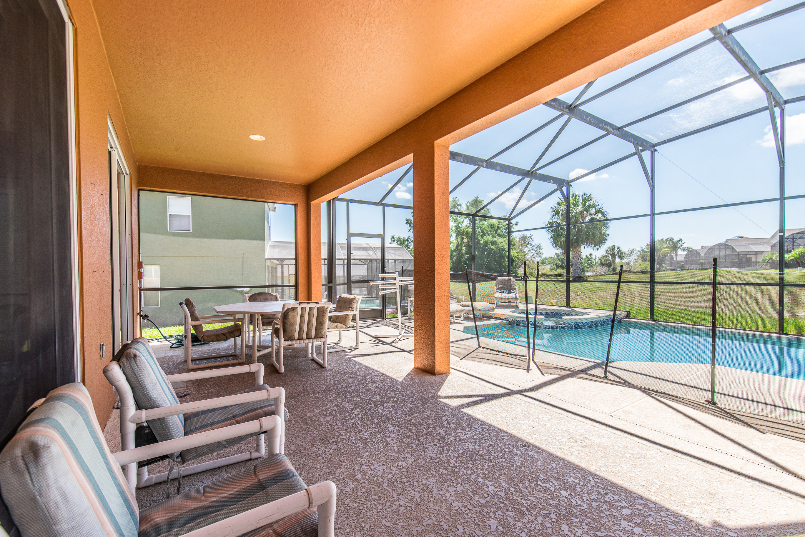 This lovely 7 BEDROOMS/5.5 BATHROOM home backs to a dry pond!! Located in guard gated Emerald Island Resort. Three MASTER BEDROOMS, high ceilings, storage galore, PLUS private pool and spa! The spacious kitchen overlooks a family room perfect for entertaining your group! This home has plenty of bedrooms for 1 large family or multiple families vacationing together. There is a master bedroom and private master bathroom suite downstairs with private French Doors that lead to the outdoor lanai and pool/deck area. Upstairs has a total of 6 bedrooms consisting of 2 wings with 2 master bedrooms, secondary bedrooms sharing Jack and Jill bathrooms, with an amazing breezeway that overlooks downstairs living area. Nice open back yard view from the pool area, sun in the pool all day long. 3 miles from Disney World and all things Florida! Near shopping, dining and entertainment.