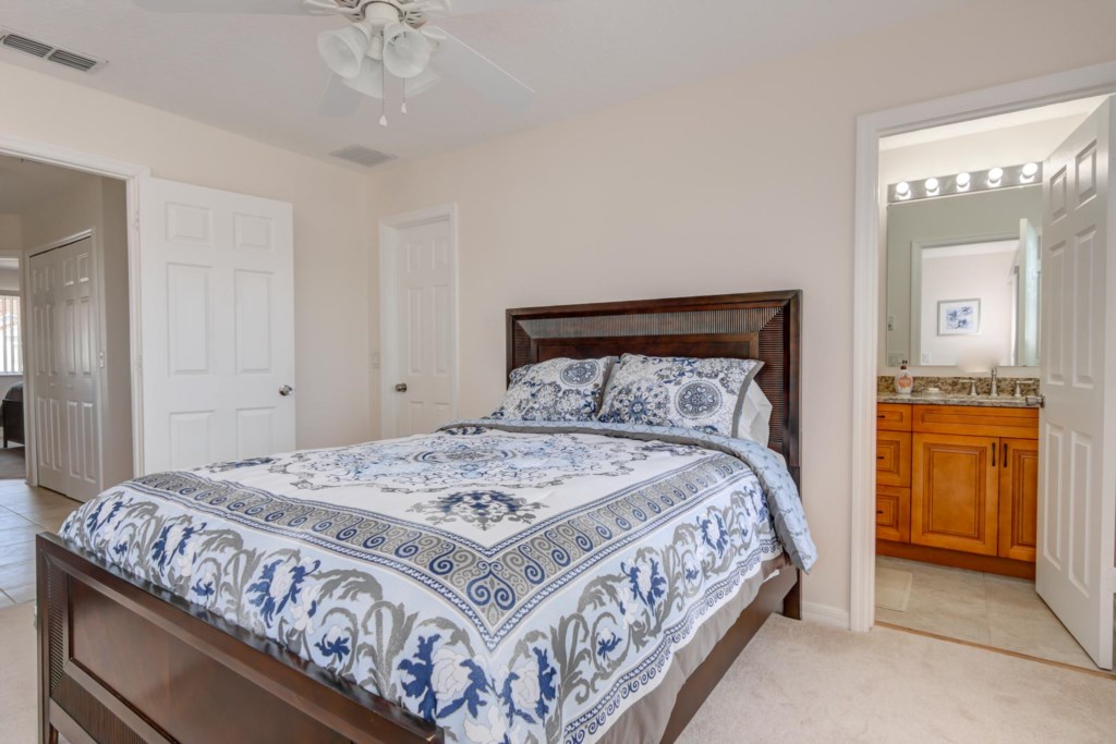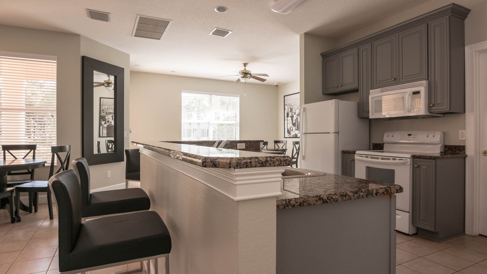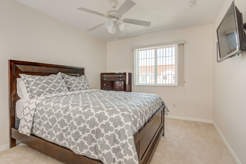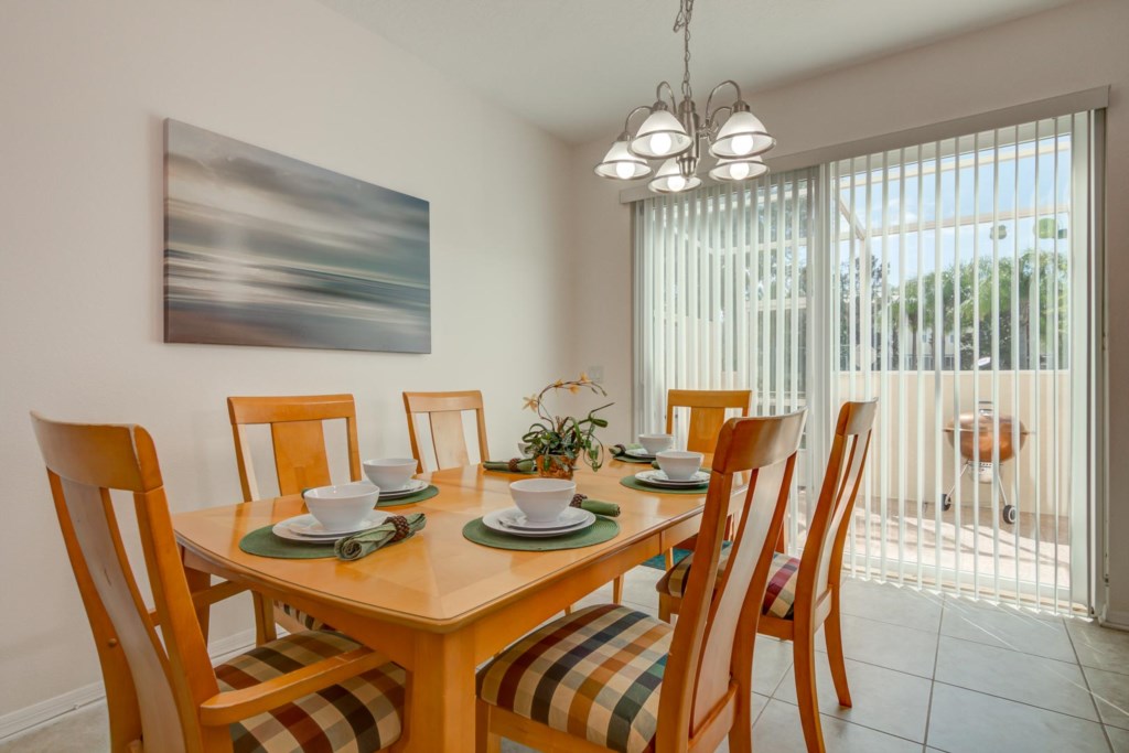 This end unit townhome has 4 bedrooms, 3.5 bathroom, is approximately 1,700 square feet, ad sleeps up to 8. This is the perfect place for a single family or 2 families vacationing together. Located in the gated community of Fiesta, it is just 15-20 minutes from Walt Disney World. The community has a large community clubhouse with fitness center, tennis court and a large heated community pool.