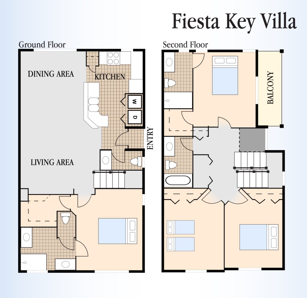 The luxurious townhouse community of Fiesta Key vacation home resort is less than 10 miles from the Disney World Main Gate. This community features 3- and 4-bedroom townhouses with a comfortable feeling of being home. A spacious clubhouse, complete with a fitness center, heated pool, spa, playground and tennis court provides something for everyone in the family! Five minutes to nearby shopping center, I-4 providing you easy access to all of Central Florida, a 24-hour Wal-Mart Supercenter, and approximately 20 miles to downtown Orlando, 9 miles from Sea World and 1 hour to the Atlantic Ocean beaches. Choose Fiesta Key for your next vacation home rental.