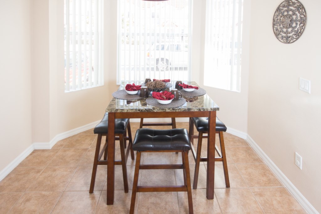 The luxury town house loacted near Disney World has just been recently decorated & re-furnished.The house is open plan and as you walk through the entrance you have a breakfast kitchen nook area with table and chairs.The kitchen then overlooks a dining area which has ample seating for six.