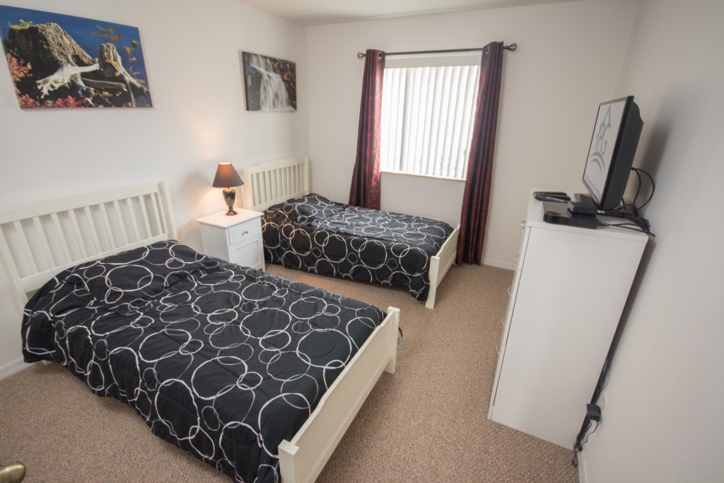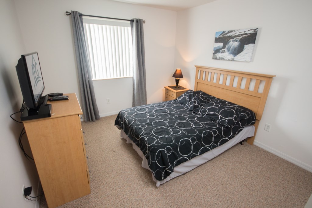 The master bedroom has a queen-sized bed, a dresser, en-suite bathroom and a large flat screen TV mounted on the wall. Bedroom 2 has a double bed while bedroom 3, which is sunny and ideal for kids, has 2 single beds. These two rooms share a bathroom.