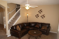 All the bedrooms are fitted with clothes closets and a full and two twin beds respectfully.The master is of course en-suite. All the other bedrooms are on the first floor, bedrooms two & three share a large bathroom. The bedroom layout is one queen & two twins. All bedrooms have T.V's in them to relax after a day in the parks. The home also has high speed wireless internet.