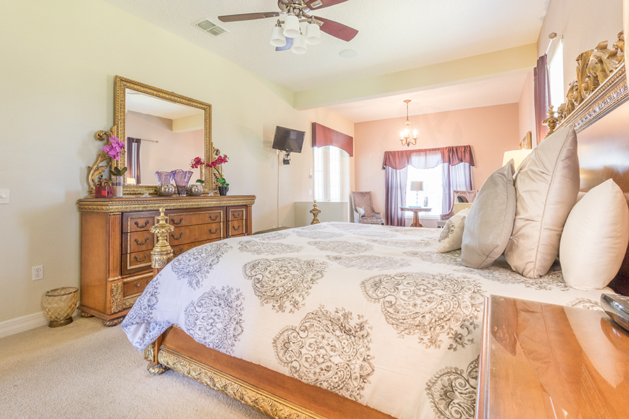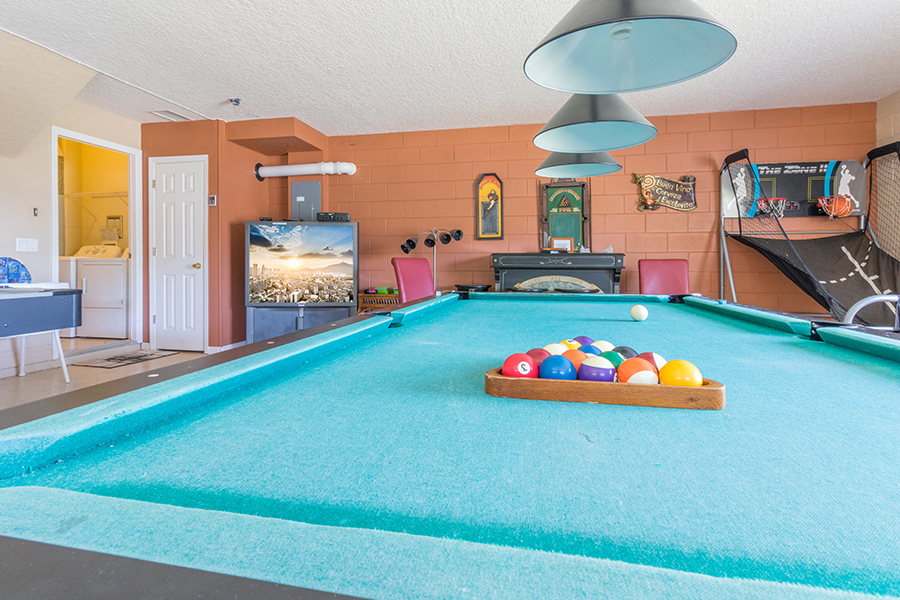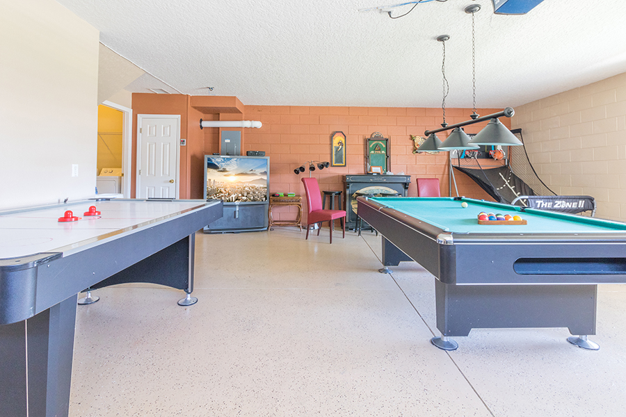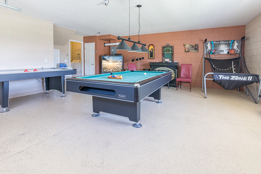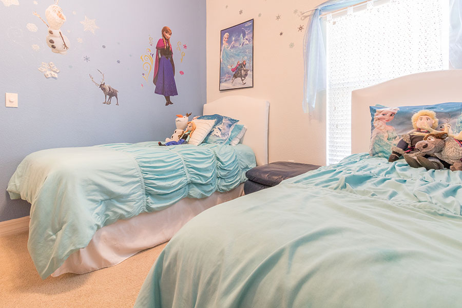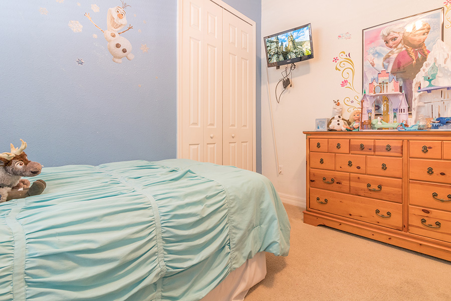 Enjoy more than 3,900 square feet of spacious comfort including 5 bedrooms, 4 baths, private pool and spa and game room. With two master suites, a Disney Frozen themed suite complete with Frozen dolls, toys and costumes, gourmet kitchen, an Xbox gaming system, pool table and air hockey, multiple families can enjoy a lavish vacation home.