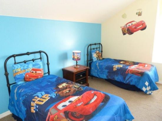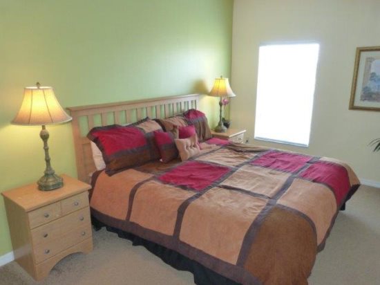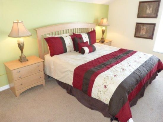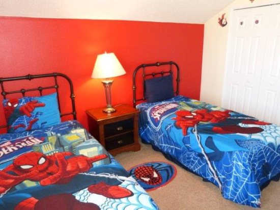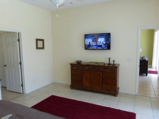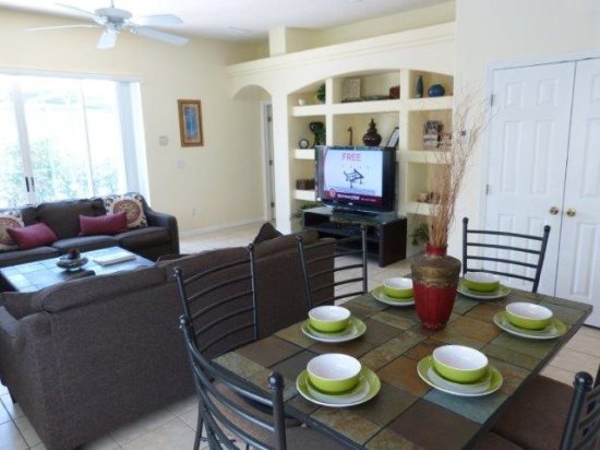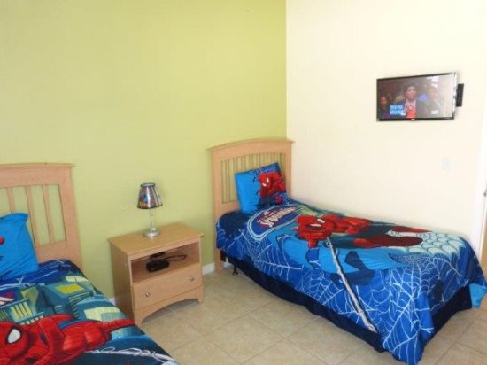 Enjoy the modern/contemporary look of this 6 BED 4 BATH home. There are 2 king master en-suites, a third king bedroom & 6 twin beds and a sleeper sofa that will comfortably sleep 14 – all bedrooms have their own TV. For the kids 2 of the twin bedrooms are themed - currently 'SPIDERMAN' and 'CARS' The garage has been converted into a lavish GAMES ROOM with a slate-bed pool table & foosball together with PlayStation 2. We are also pleased to offer FREE high speed WIRELESS INTERNET. Disney, Universal and Seaworld parks are all within easy traveling distance and when you need to recuperate for the next action packed day you can relax in front of the 52' LCD TV or soak up the Florida sunshine by your own SOUTH FACING PRIVATE POOL & SPA surrounded by mature HIBISCUS shrubs for added privacy. TENNIS & VOLLEYBALL are also available at the resort Clubhouse.