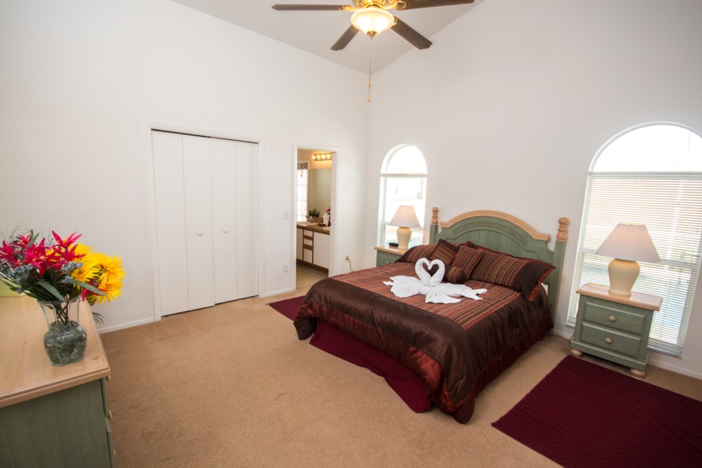 A private pool accompanies this wonderful villa. The pool along with the outdoor furniture set make for a great place to cool off after a long day. If you don’t fancy lying in the sun, there’s always the covered lanai. This area also makes for the ideal spot for al fresco dining in the evening. There’s also outdoor lighting and a ceiling fan, making the outdoor area even more inviting in the balmy evenings.