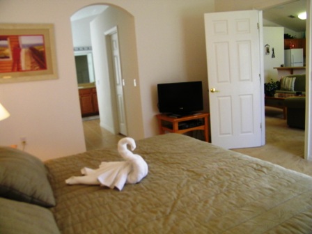 The master bedroom with its king size bed has a walk-in closet, luxurious bathroom and a 19” inch TV while the second bedroom provides a cozy living space with a 13” flat screen TV and spacious closet. Bedrooms 3 and 4 each have twin beds and a flat screen TV. Additionally, bedroom 3 has a small en-suite bathroom with a single vanity.
