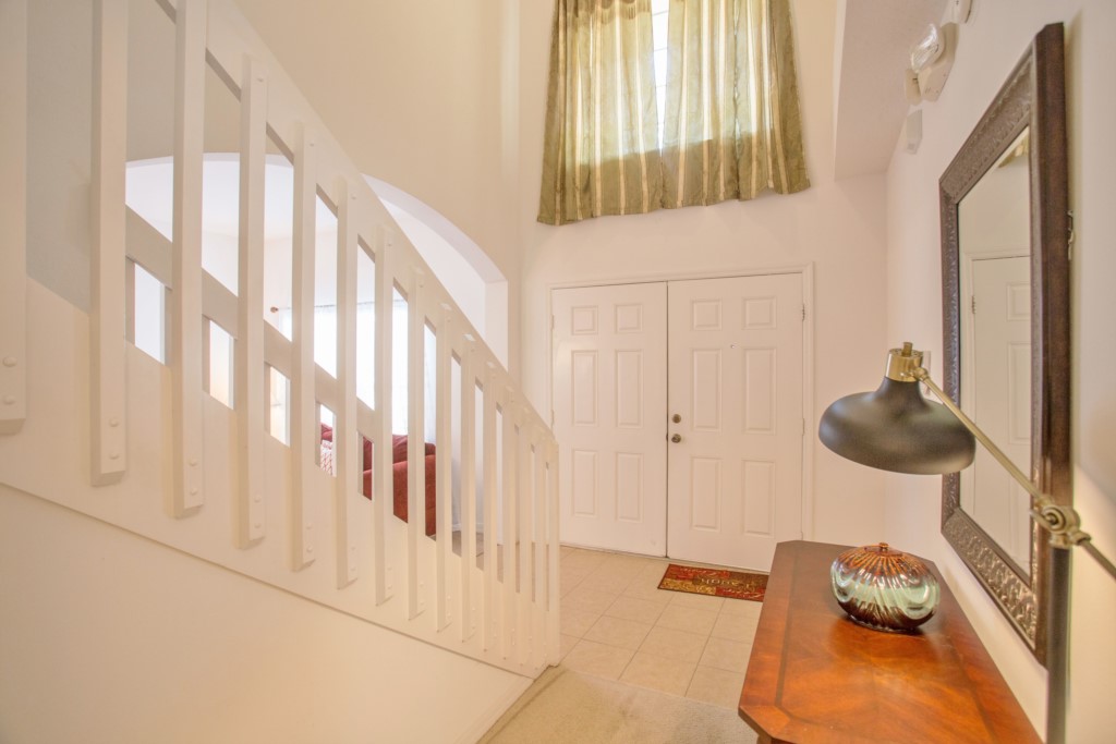 Beautiful 2 story home with private pool in the gated community of Highgate Park. There is a big formal living room and dining room. The large and very bright kitchen has a huge eat in space, and island and lots of counter space. The breakfast bar divides the kitchen and family room, which has slider doors to the pool area. No rear neighbors close to the patio/pool area. The pool is South facing! There are 4 bedrooms upstairs, 2 of which have an ensuite bathroom. The 2 other rooms share a bathroom. The master bedroom has a walk-in closet and the master bathroom has a tub, dual vanity and a large walk-in shower. The utility room is upstairs and washer and dryer convey with the property! Take a look at this lovely home located approx 15 minutes from Disney and very close to the I-4. Approximately 1 hour to both coasts