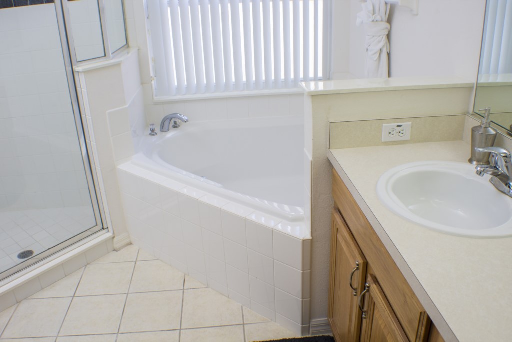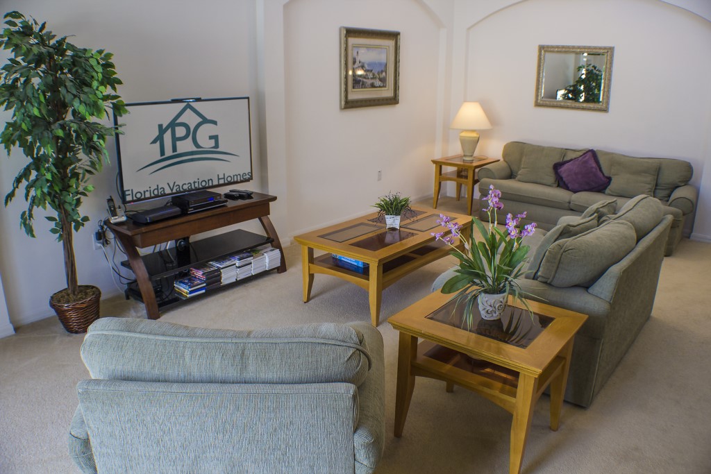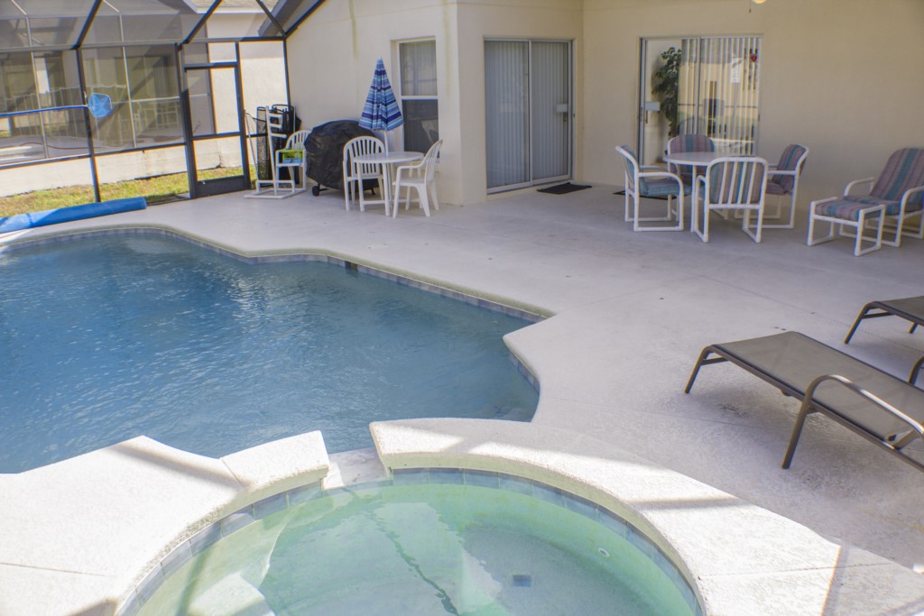 A games room comes with this villa, which is equipped with a full-size professional pool table. There’s also a flat screen TV in the games room for your enjoyment, and this is 1 out of the 4 TVs that can be found in the home. Outside the Villa is a magnificent private pool and Jacuzzi for the guests to enjoy. Choose to relax under the covered lanai where there’s a patio set or alternatively, you can choose to catch some sun on 1 of the sun loungers provided.