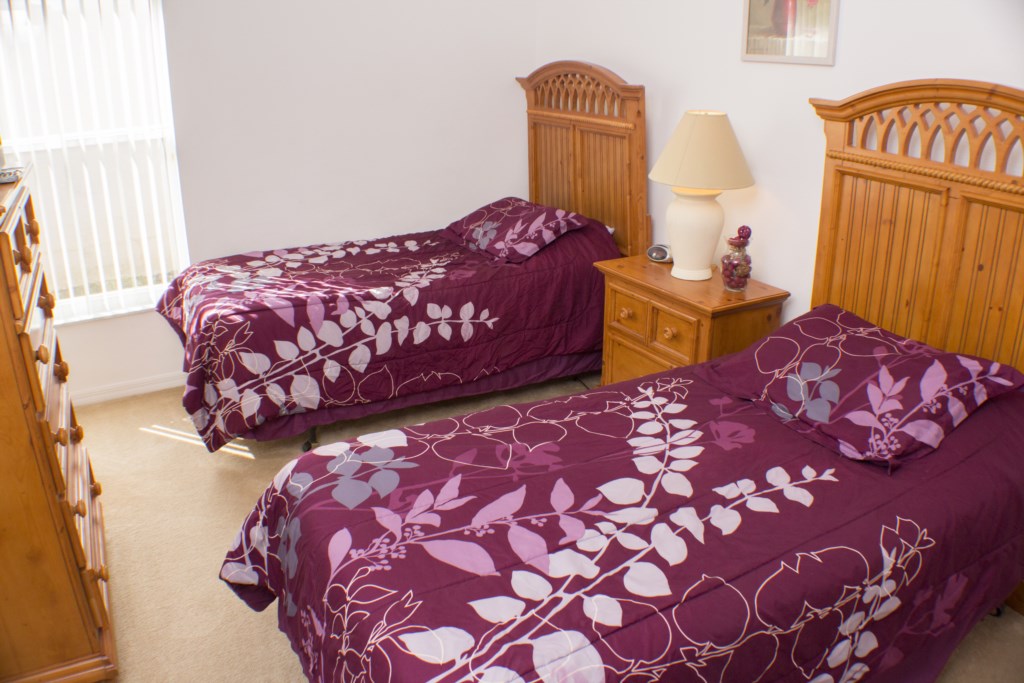 The master bedroom boasts a large Victoria style king-size bed with white woodwork. The room also has matching furniture and a lot of wardrobe space, which includes a grand looking white dresser with an impressively carved mirror. The large en-suite bathroom will leave you in awe. It’s been newly refurbished and boasts a twin vanity, a large corner mirror with star-like lights, a corner tub with a view, and a separate walk-in bathroom. The second master bedroom with a queen size bed is beautifully furnished with a wooden headboard and matching furniture. The arch windows allow a lot of natural light to enter the room. It also has its own TV and small en-suite bathroom with a single vanity and large mirror. The other 2 twin bedrooms share a communal bathroom. Both rooms are furnished with wooden furniture and have enough space to sleep, relax, and play, making this the ideal spot for younger guests to stay.