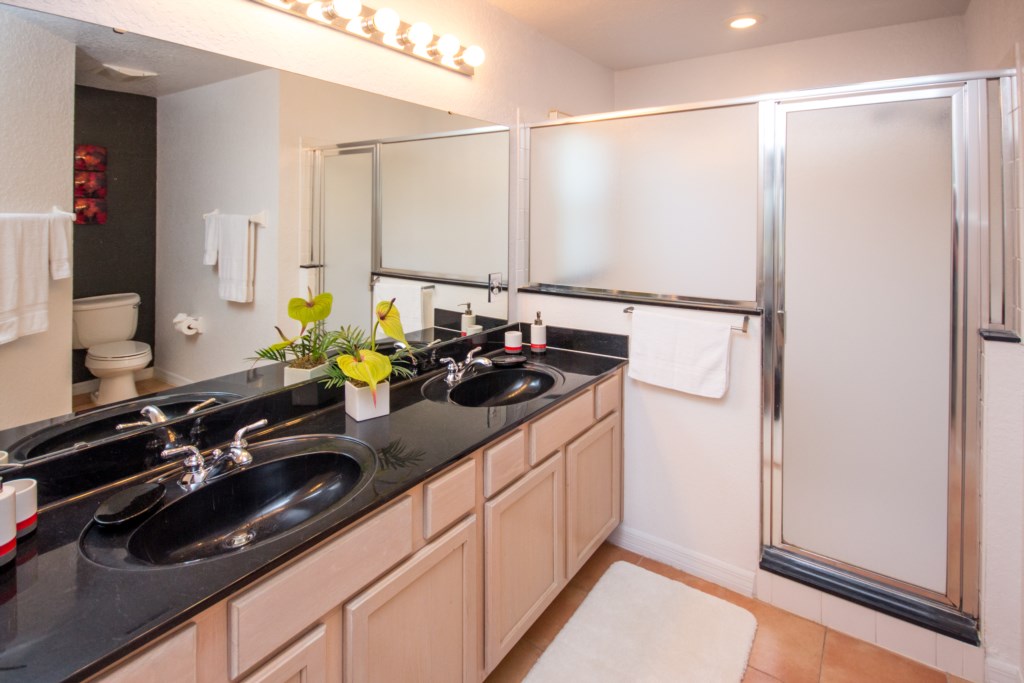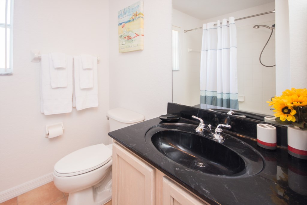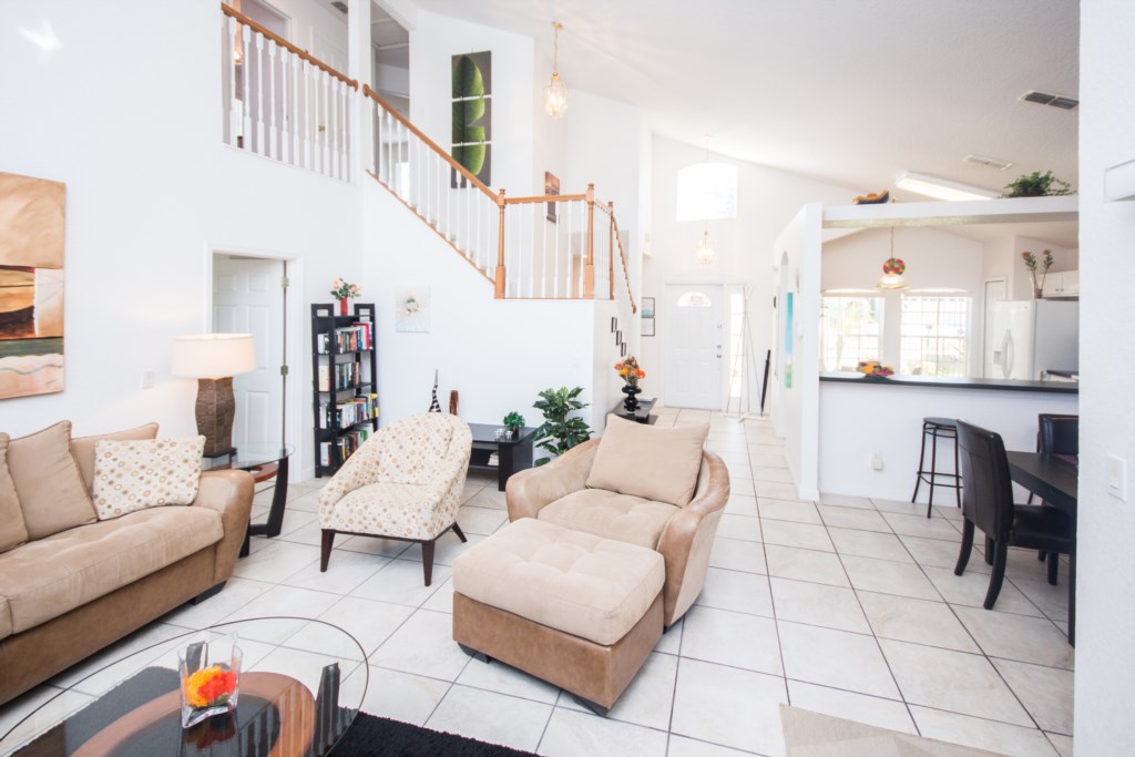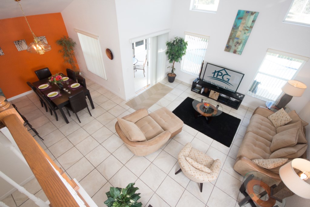 The 1825 sq ft/165sqm. villa provides everything you need to have a carefree holiday in an area packed with world class entertainment. The ground floor of the house provides a family room with vaulted ceiling, dining room, kitchen with dining area, master bedroom with ensuite bathroom, and an extra half bathroom. Upstairs are 3 further bedrooms and 1 full bathroom. All bedrooms have a walk-in closet.
