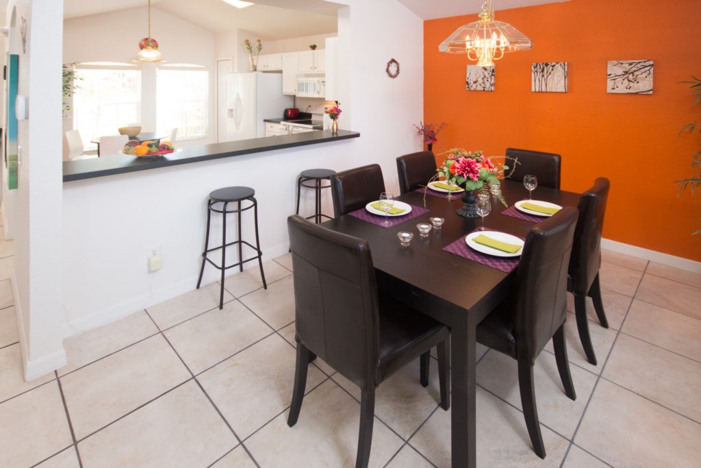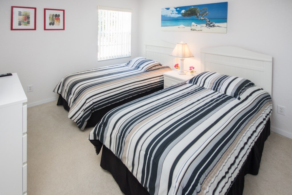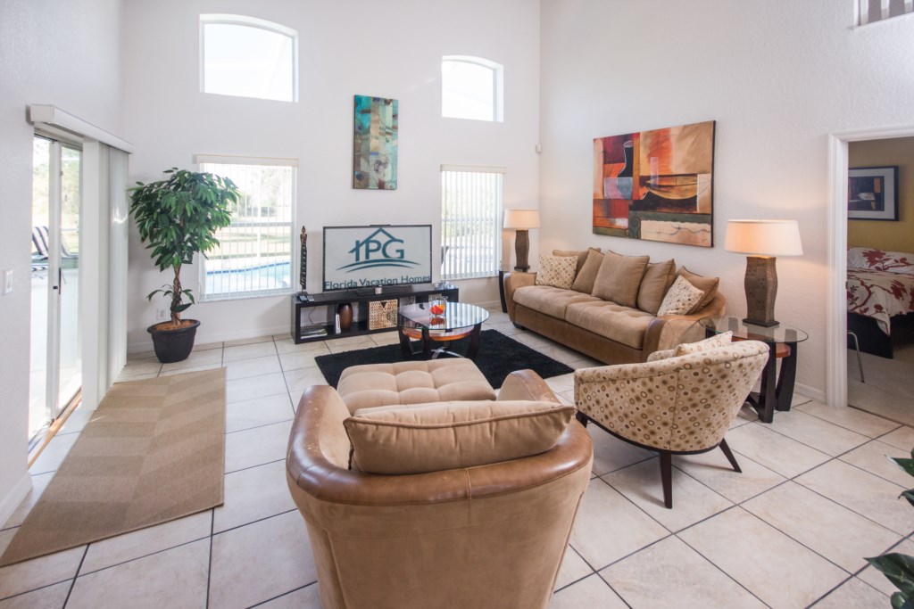 When you are not out enjoying Orlando's wonderful attractions or one of the fabulous golf courses, you can enjoy life in the sun by the large pool, which is surrounded by a mosquito net. The south west facing pool area enjoys the sun from approx 10 am to sunset. You can also enjoy life under the covered lanai or indoors where there is a 55 inch flat screen TV in the living room. In all four bedrooms are also flat screen TV's. There is a complimentary internet access (Wifi) and the big TV package, dvd and Wii, and telephone with free calls within the USA and Canada.