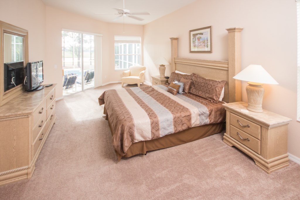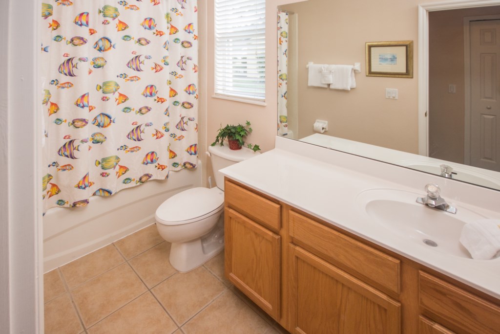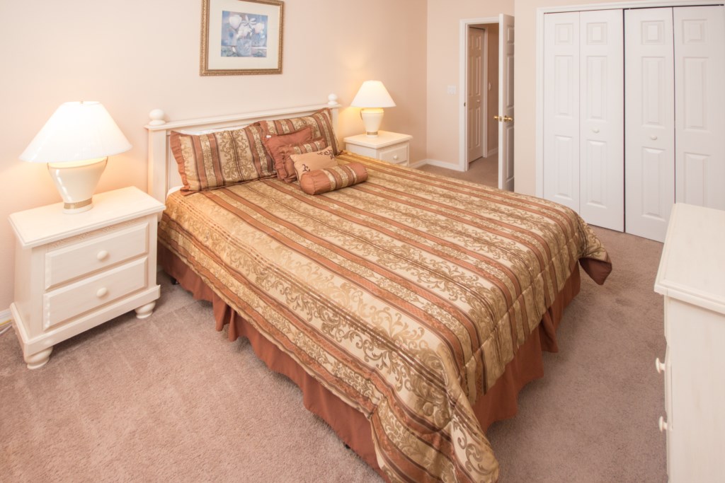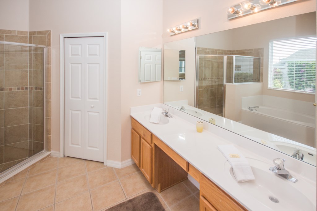 Our two storey home has 4 bedrooms and 2 bathrooms plus a great den area upstairs. The large master bedroom with king size bed has a huge bathroom with tub and separate shower. There are 2 wash basins and separate toilet. At the front of the home is a bedroom with twin beds and TV. On the other side of the home is another bedroom with twin beds and the fourth bedroom has a full size bed. The family bathroom features a bath with shower over, wash basin and toilet.