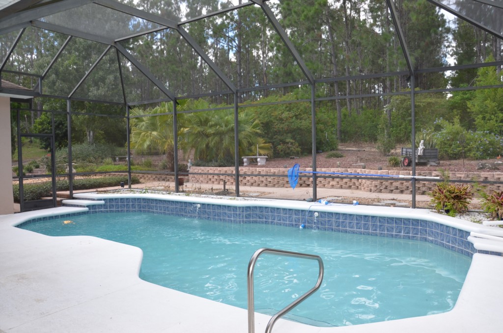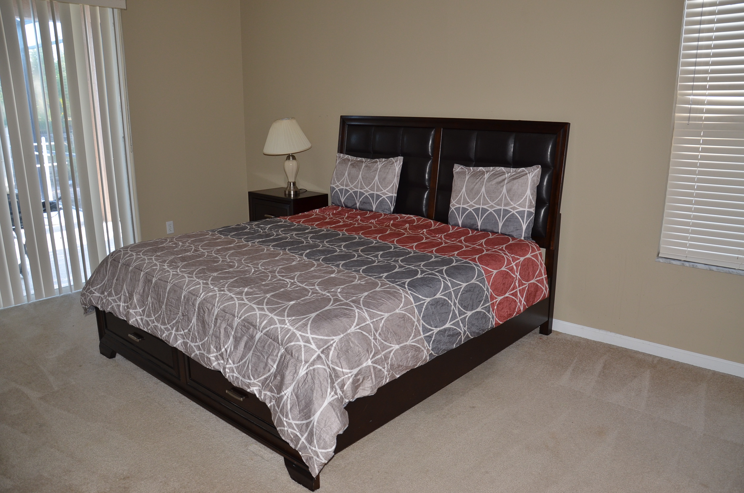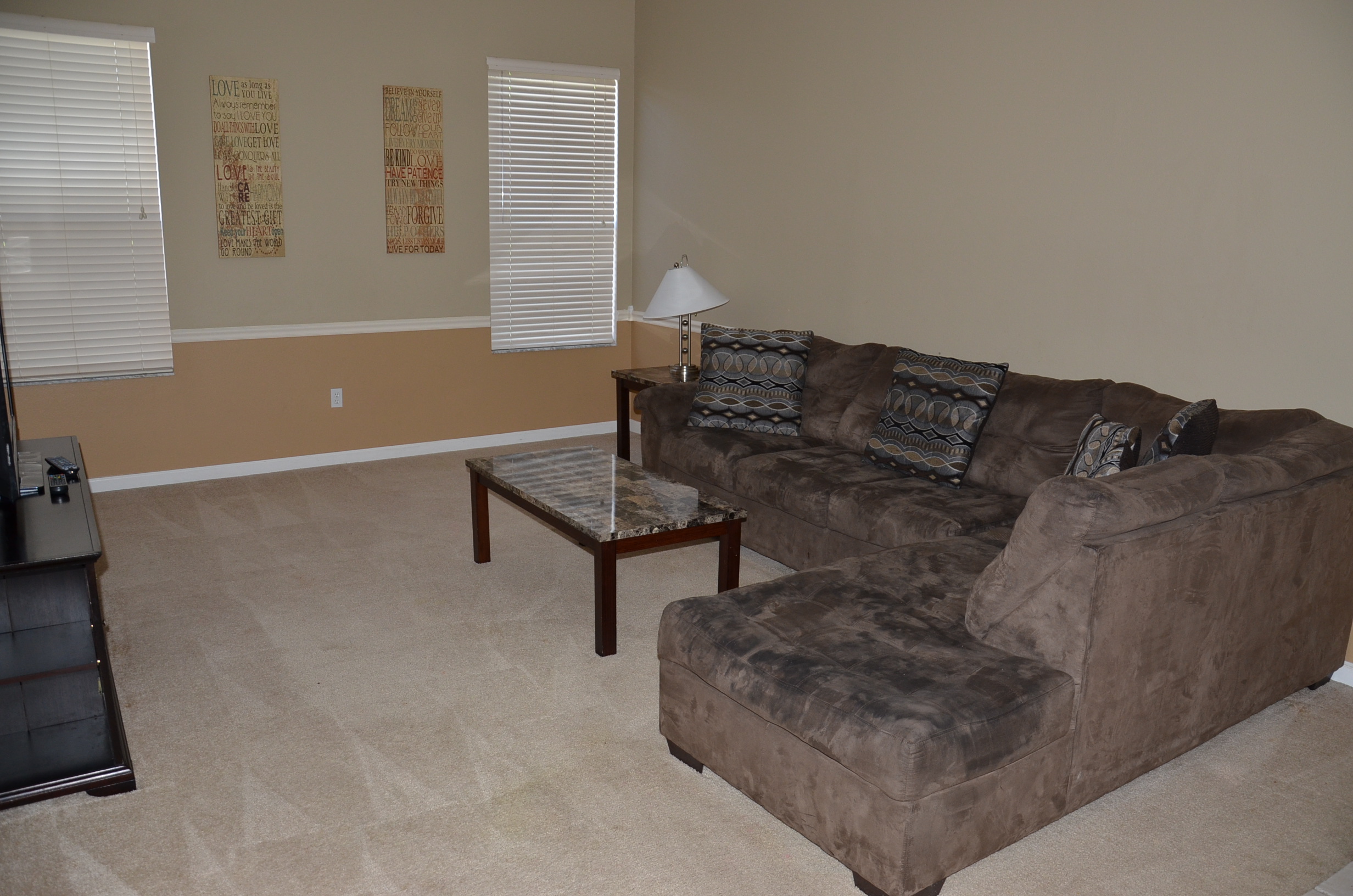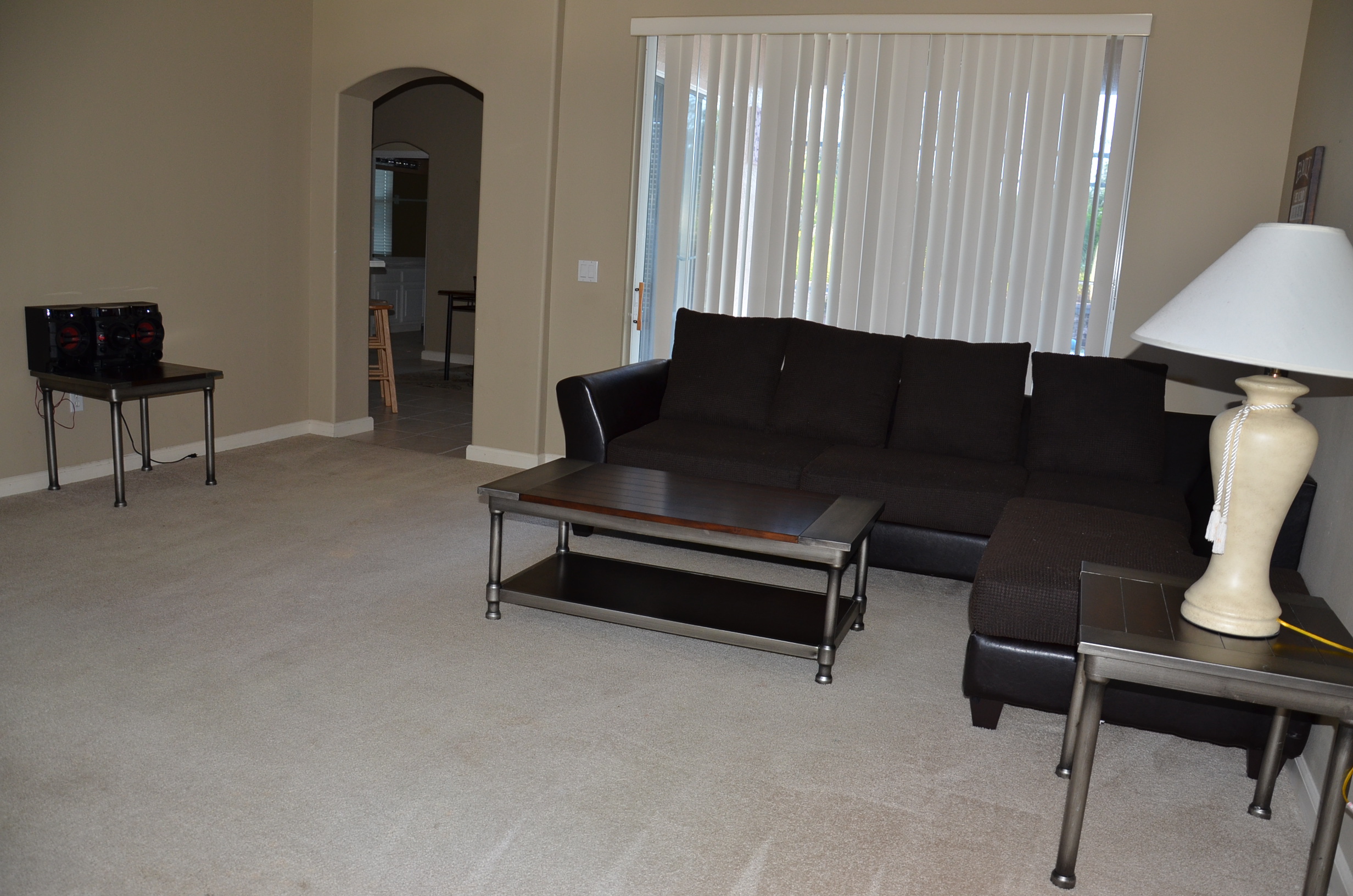 This four bed, three bath private pool home is not overlooked and has a conservation view and large back yard. Through the entrance hal you will find the dining area and the first of two living roms. The master with EnSuite is off to the right and away from all other bedrooms. Down the hallway is a bathroom and a utility room and there are two bedrooms both with two twin beds. The open plan kitchen has a breakfast bar and a separate breakfast are which leads to the second large living room with flat screen TV. From this room a separate anexe houses the queen bedroom and another EnSuite. A doorway leads to the oversize pool deck with outside furniture and a very spacious swimming pool. The whole area is protected with a pool cage and insect mesh so the evening barbecues do not get interrupted by unwanted bug guests.