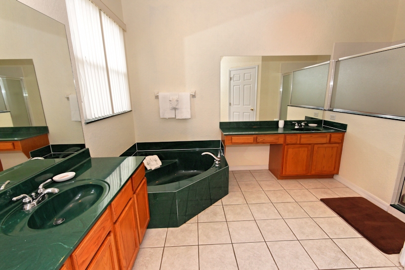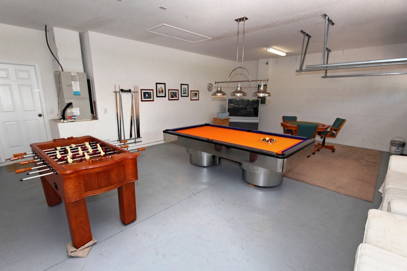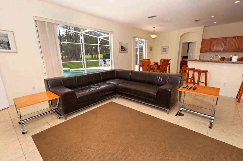 Upon entering this wonderful home you will see the complete lower level of the home has stylish, cool and hygenic ceramic tile. The upper level has wood flooring throughout. Just inside the front door to your left, you will find the study/reading room for some quiet relaxation on the comfortable sofas or set up your laptop on the desk area to keep in touch with work and friends. The villa has free wireless high-speed Internet connection throughout. There is a phone in the villa that you can use to call local and long distance within the USA. The open plan, modern family room has a wall mounted flat screen 50-inch tv, dvd player, comfortable sofas tables and lamps. There are 2 dining areas in the home with a total seating capacity of 10, not including 4 additional breakfast bar stools and of course an outdoor patio table and chairs. The full size and fully equipped family kitchen has all the appliances you will need to prepare full family meals or snacks. Dishwasher, waste disposal, fridge with icemaker, freezer, toaster, coffee maker, blender etc are all supplied. There is a full size washer and dryer in the utility room plus iron and ironing board. Also on the ground level are 2 of the 6 bedrooms. The first is a King master suite with King size bed, closet, ceiling fan, 40 inch tv, and dvd. The en suite bathroom has a large tub bath, walk in shower, sinks and wc. The second bedroom on this level has a Queen size bed, 32 inch tv, ceiling fan, closet and drawer space. There is a further family bathroom right next to this bedroom. For young and older ones alike there is a great game room on this level with a really cool professional pool table, card gaming table, a 53 inch tv connected to a PS2 game console. There is also sofas and seating in the game room. Taking us upstairs in this magical home you will find the other 4 bedrooms. The first is a Queen master bedroom with tv/dvd player, closet and drawer space, ceiling fan and private en suite bathroom with bath, shower, sink, and wc. Bedroom 4 is also a queen bed and has tv/dvd, ceiling fan, and storage space Bedrooms 5 and 6 both have 2 twin (single) beds in each, tv/dvd, ceiling fans and storage space. There is a further family bathroom on this level, giving a total of 6 bedrooms and 4 full bathrooms at this wonderful home! Moving back outside where you will no doubt spend much of your time while here in sunny Florida you will find your very own private swimming pool which has the option of being heater during the cooler months. The spacious pool deck overlooks the 18th fairway of the golf course. The pool deck is furnished with tables, chairs and sun loungers to enjoy our superb climate! A section of the pool deck is covered for some respite from the sun if the going gets too hot for you! The entire pool deck area is fully enclosed with screening to help keep out the bugs etc. Highlands Reserve, as well as having a fantastic golf course also has a clubhouse with golf shop and restaurant, community pool and tennis courts. This amazing home really does tick all the boxes
