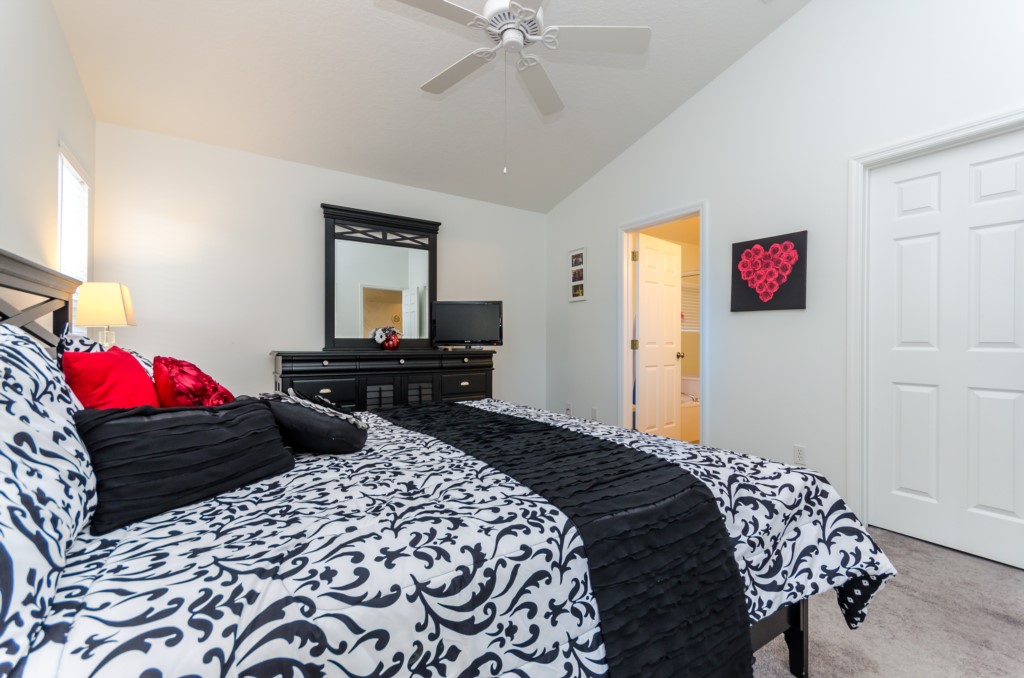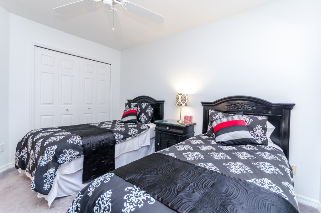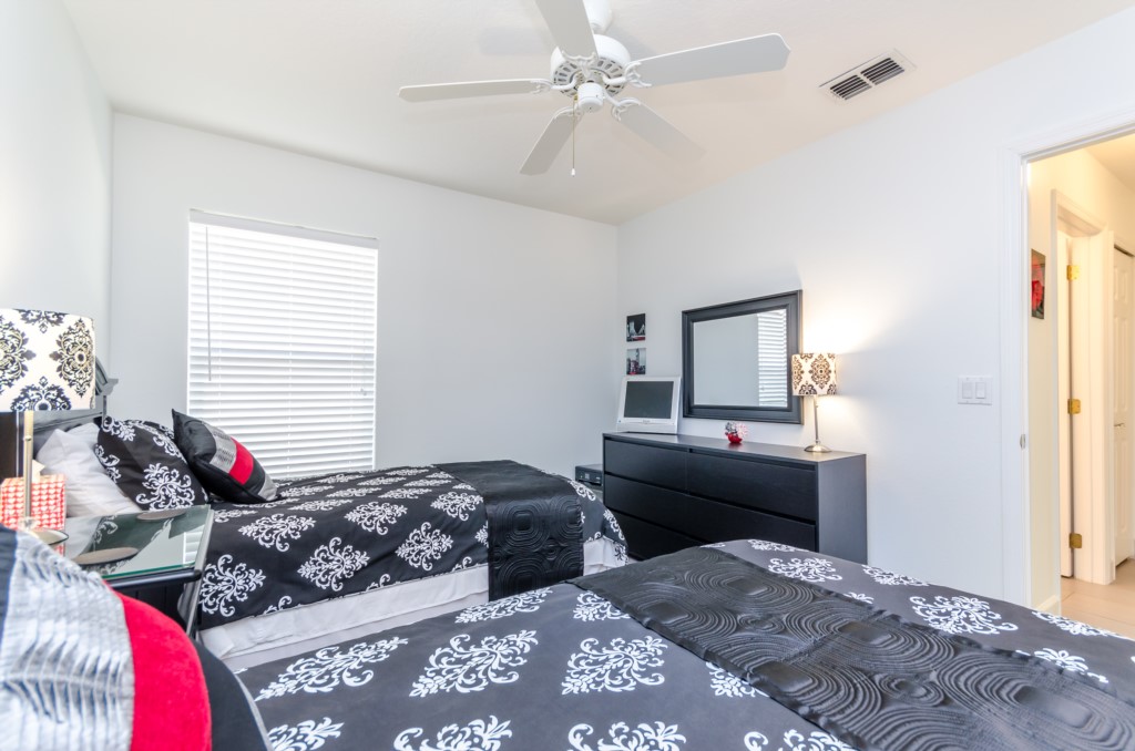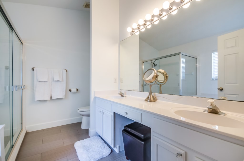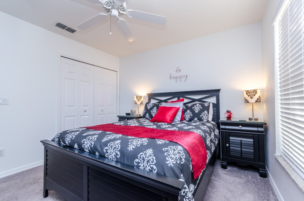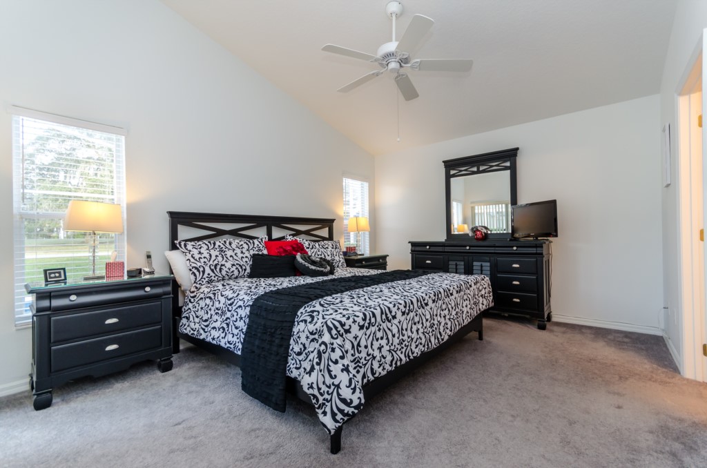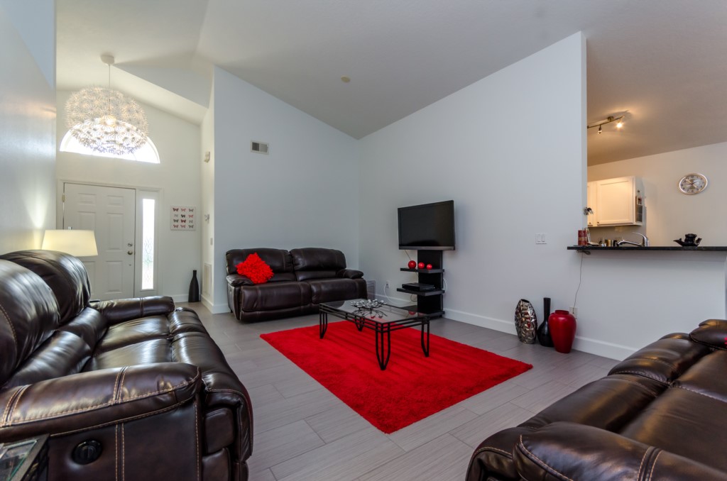 Stunning 3 bed 2 bath villa with excellent, private pool and spa. This modern updated property has all the amendites and upgrade you could want. Wonderful outdoor area with large table seating 6 in covered lanai with 2 ceiling fans to keep you cool. Or relax all day in the sun on the sun loungers and recharge the batteries before heading back to the theme parks .There is a pool alarm on the patio doors to go out to the pool deck to keep the little ones safe. Dip in the pool to cool off, then relax in the spa under the stars in the evenings. Suits smaller families, couples, golfers, on golf community with large communal pool, tennis courts and play area. Close to local shops and restaurants. Huge king bed in master bedroom with ensuite having garden bath, large shower, his and hers sinks and toilet, hair drier and straighteners, large wardrobe and patio doors to pool deck, queen bed in 2nd bedroom, large wardrobe, twin beds in 3rd bedroom, with large wardrobe containing , shared bathroom between bedrooms 2 and 3 having is a upgraded walk in with shower , sink and toilet. Flatscreen TV's in two bedrooms as well as the lounge. Telephone, free WIFI. Lounge seating for 8 including 3 seater and 2 seater sofas . Breakfast nook with table for 6 plus 2 at breakfast bar, overlooking pool area. Modern fully equipped kitchen with upgraded appliances and granite worktops, Washer, drier, Ironing board, modern iron, clothes airers. All this and just 10 minutes from main gate of Walt Disney World! 25-30 mins from Universal and Sea World. Come to see us soon!