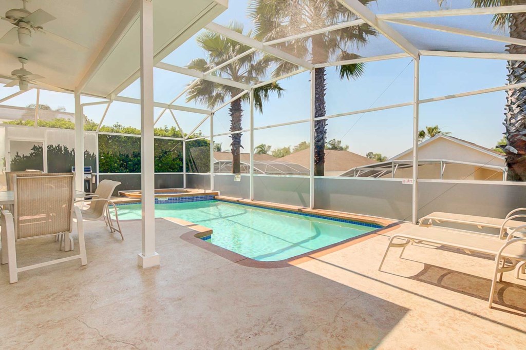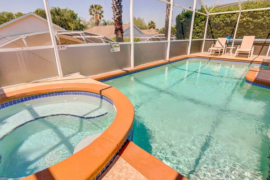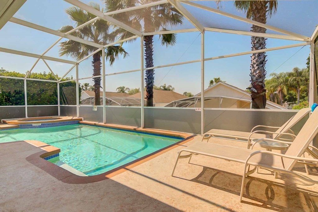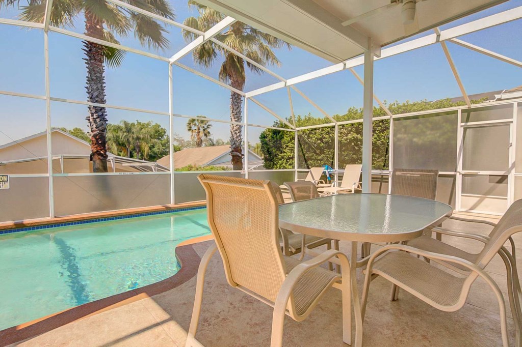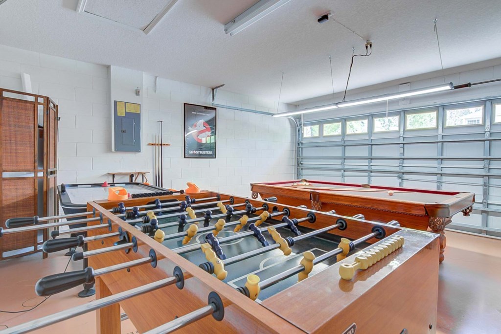 As you step through the front door, the formal living room and formal dining room are to your left. The formal living room has two sofas and is the perfect place to sit down and talk with a drink. Just off the formal living is the formal dining room, which is the perfect place to have a more intimate dinner with the family. The kitchen is large, fully equipped, and has granite countertops and modern appliances. There is a breakfast nook just off the kitchen. After a long day out at the parks, nothing beats relaxing in the comfortable family room/informal living room, where the whole family can rest and watch a move together on the TV. The garage has been converted into a games room, which everyone is bound spend hours enjoying. It has a full-size pool table, an air hockey table, a foosball table, and a dart board. The whole family will enjoy spending time here. Fancy somewhere to cool off? Take advantage of the private pool and jacuzzi. The pool area is private, so you can relax and enjoy your time without worrying about neighbors peaking in on your fun. There is also a covered lanai where you can sit down and relax away from the sun.