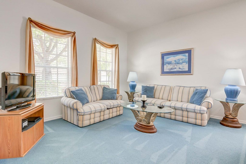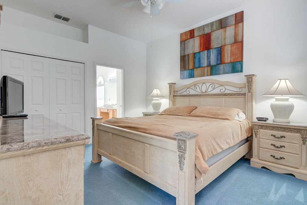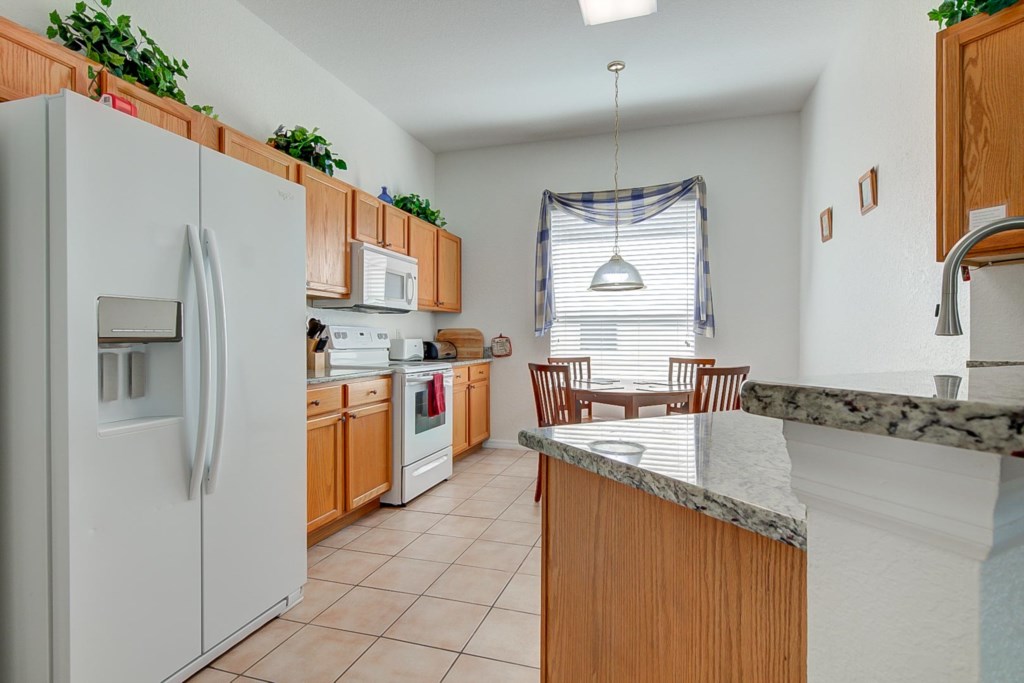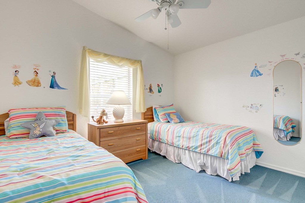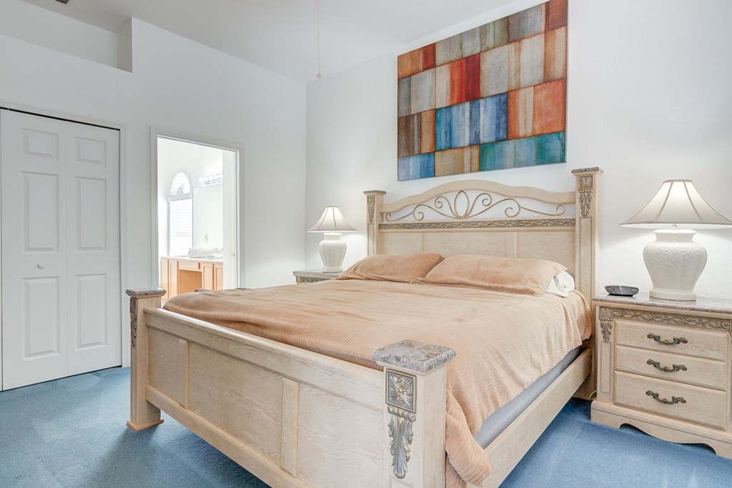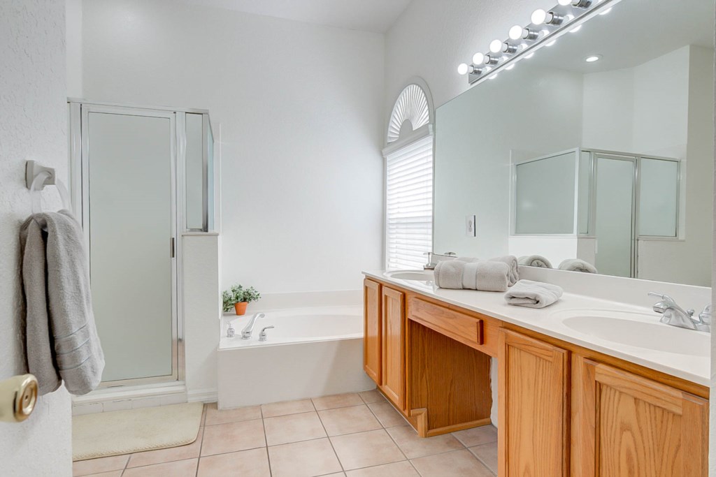 As you step through the front door, the formal living room and formal dining room are to your left. The formal living room has two sofas and is the perfect place to sit down and talk with a drink. Just off the formal living is the formal dining room, which is the perfect place to have a more intimate dinner with the family. The kitchen is large, fully equipped, and has granite countertops and modern appliances. There is a breakfast nook just off the kitchen. After a long day out at the parks, nothing beats relaxing in the comfortable family room/informal living room, where the whole family can rest and watch a move together on the TV. The garage has been converted into a games room, which everyone is bound spend hours enjoying. It has a full-size pool table, an air hockey table, a foosball table, and a dart board. The whole family will enjoy spending time here. Fancy somewhere to cool off? Take advantage of the private pool and jacuzzi. The pool area is private, so you can relax and enjoy your time without worrying about neighbors peaking in on your fun. There is also a covered lanai where you can sit down and relax away from the sun.