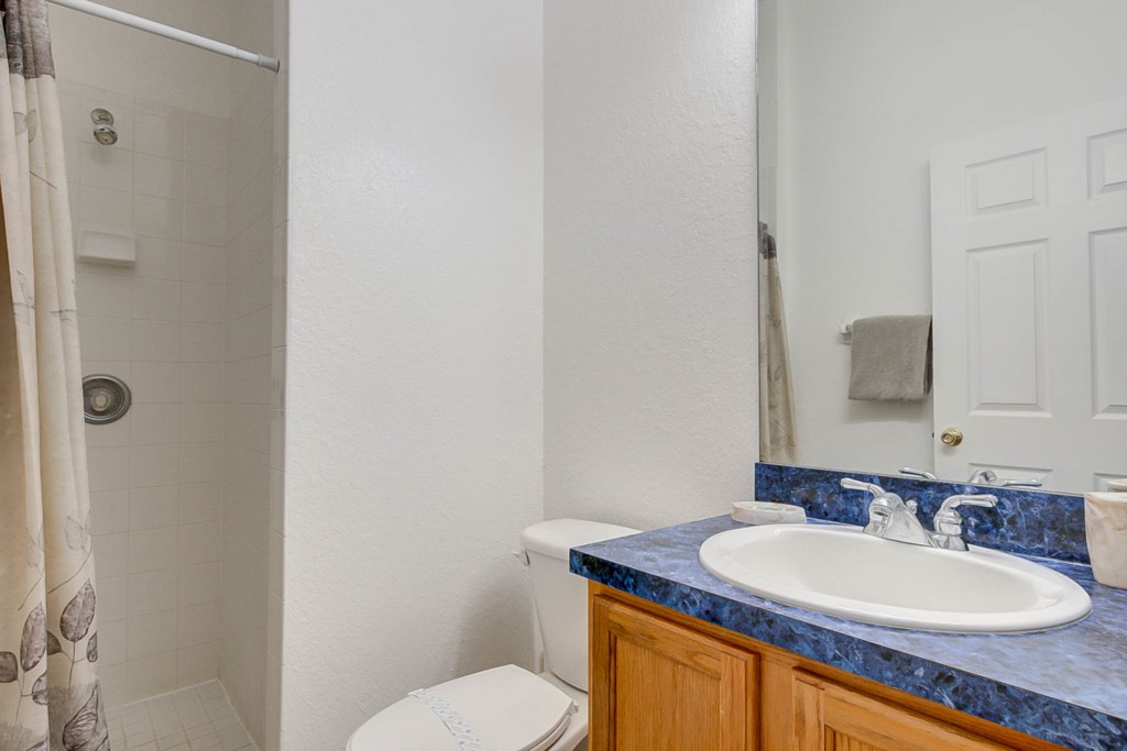 There are 4 bedrooms. The first bedroom, the master bedroom, has a king-size bed, flat screen TV, and en-suite bathroom with garden tub and walk-in shower. The second bedroom has queen-size bed and en-suite bathroom, and the third and fourth bedrooms both have two single beds in each – perfect for the kids.