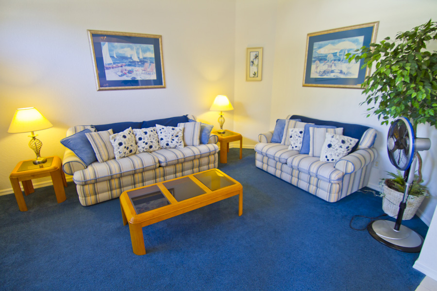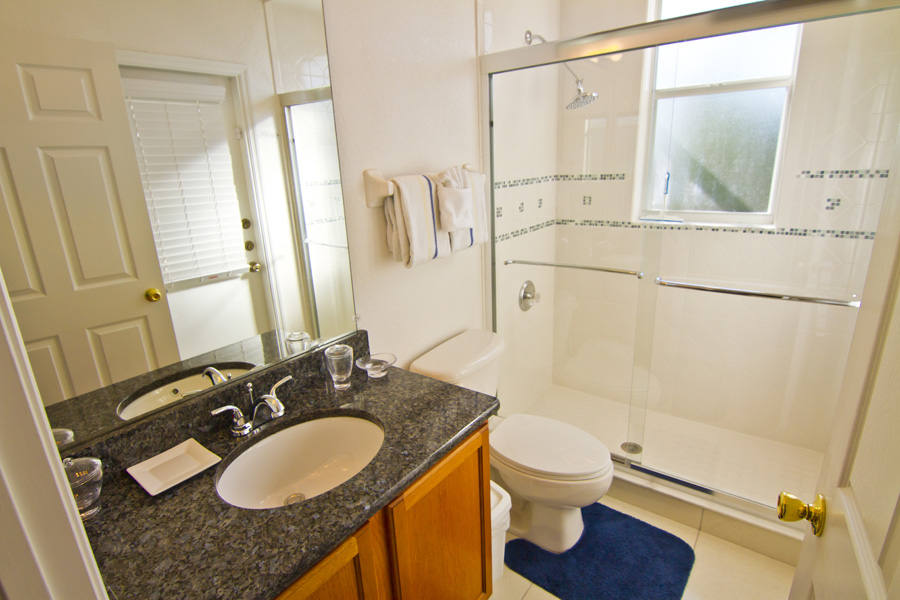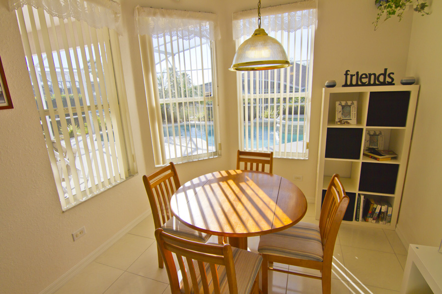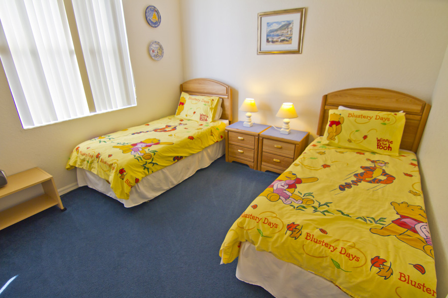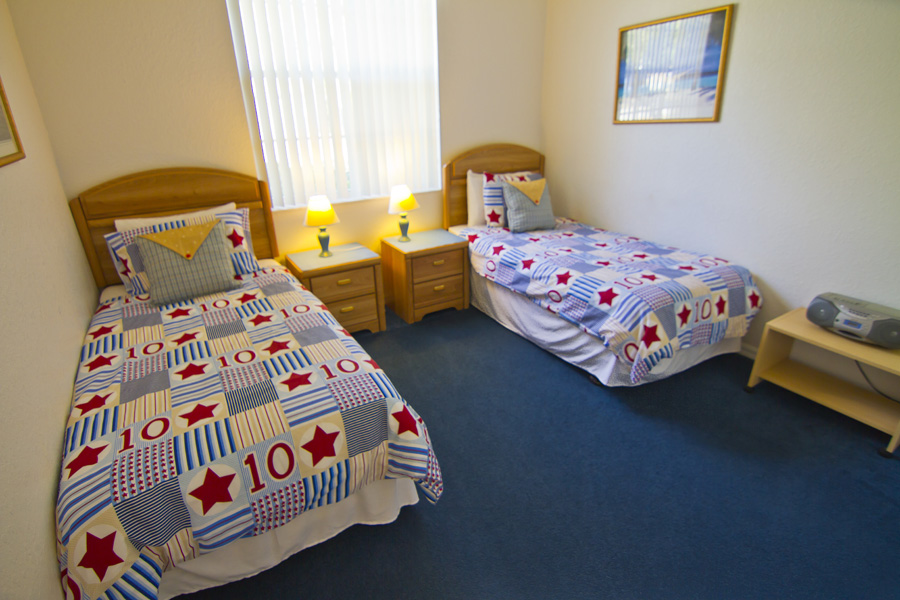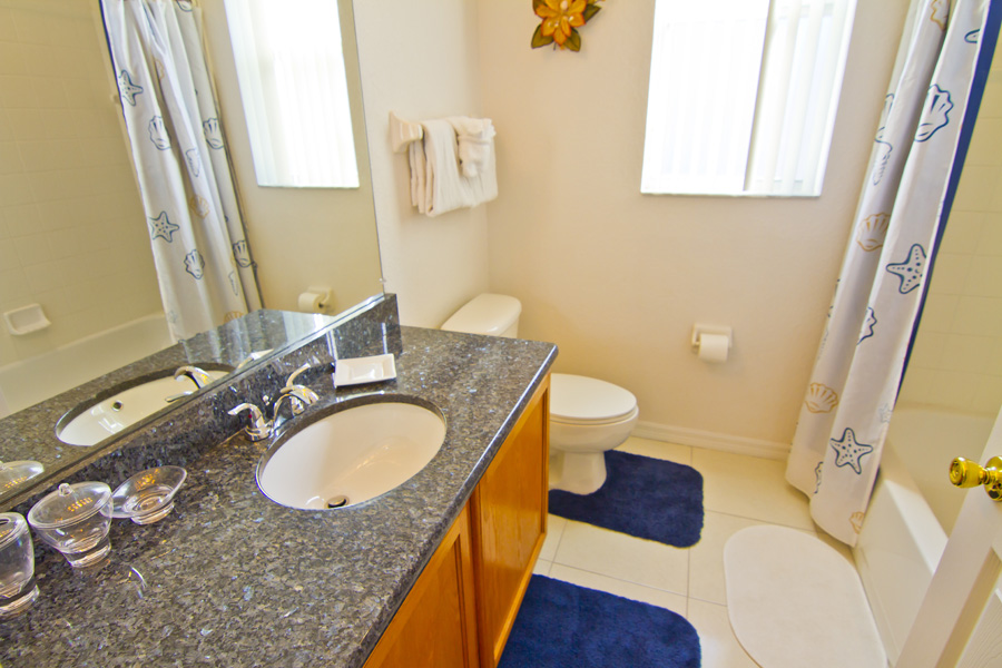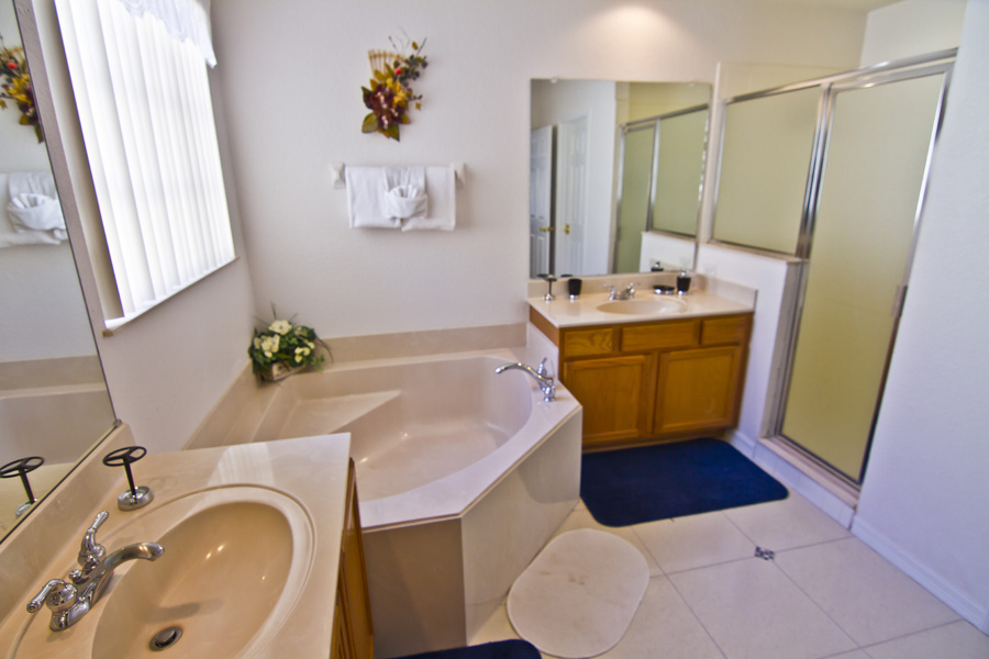The master bedroom has a king size bed, with an en-suite bathroom that has a shower and garden tub. The second bedroom has a queen size bed, and the 3rd and 4th bedrooms have two twin beds. The living room has a large flat screen TV and DVD player, along with a collection of books for those quiet evenings that you want to spend in the home. There is also a TV and DVD player in the den, so everyone can watch something different.