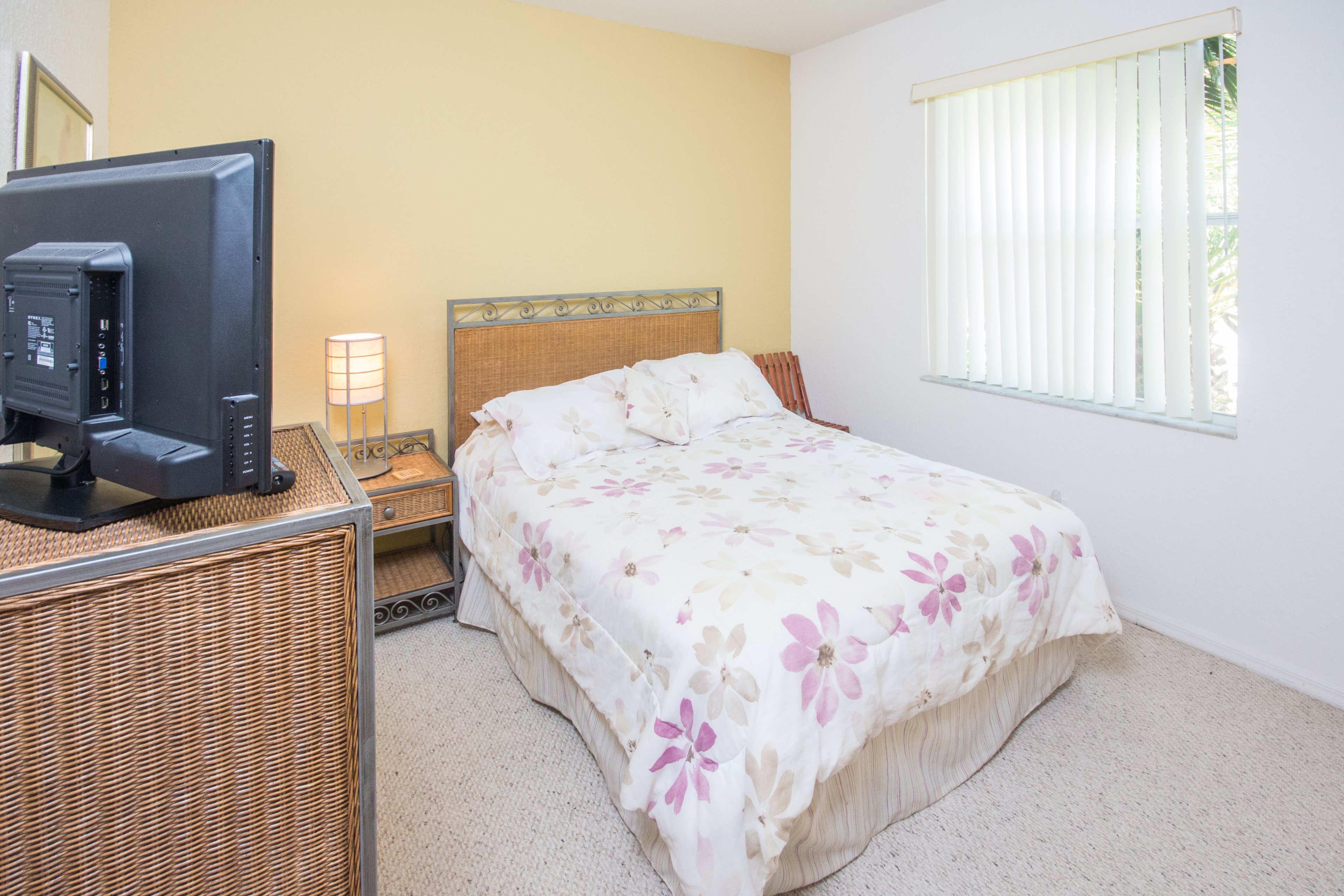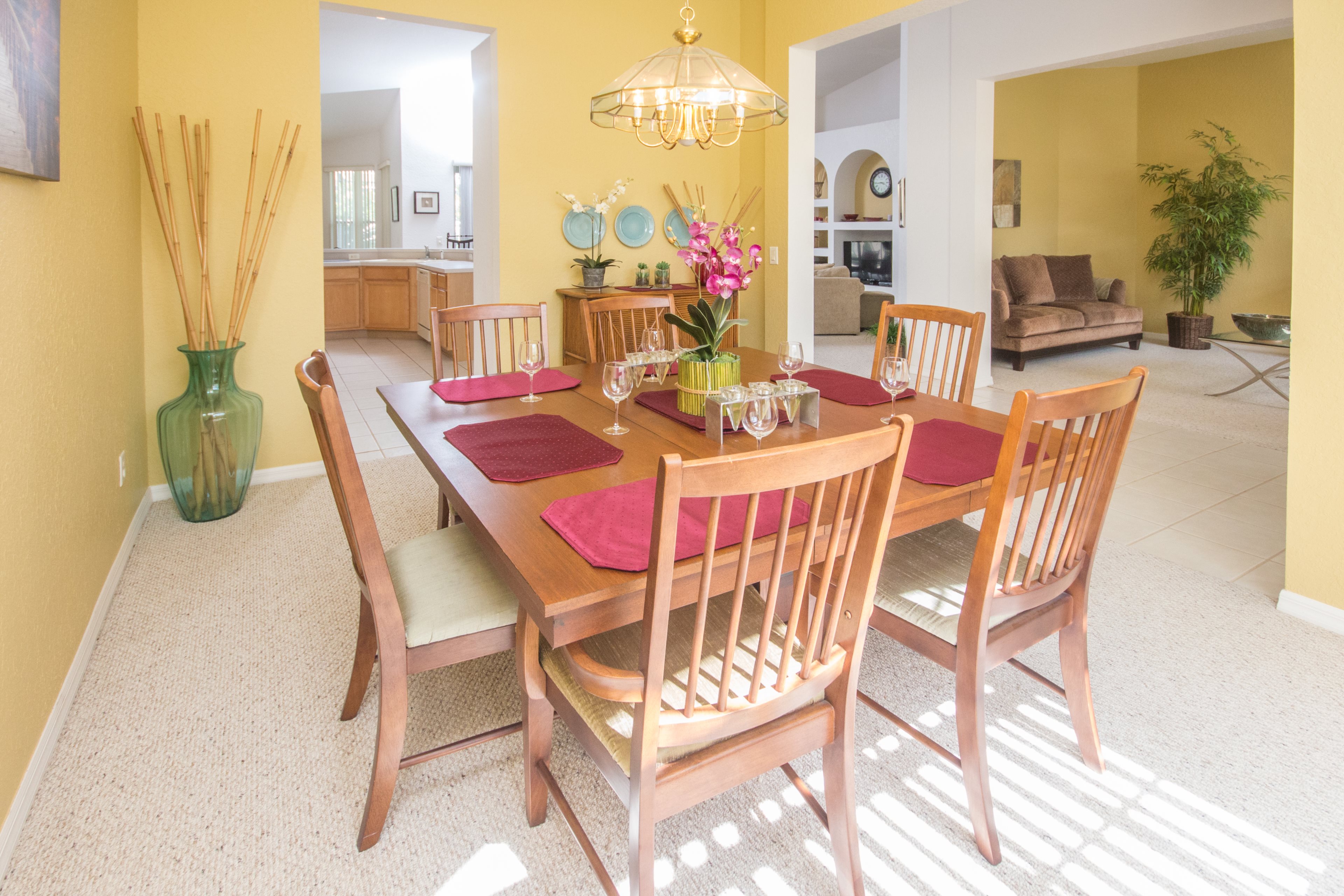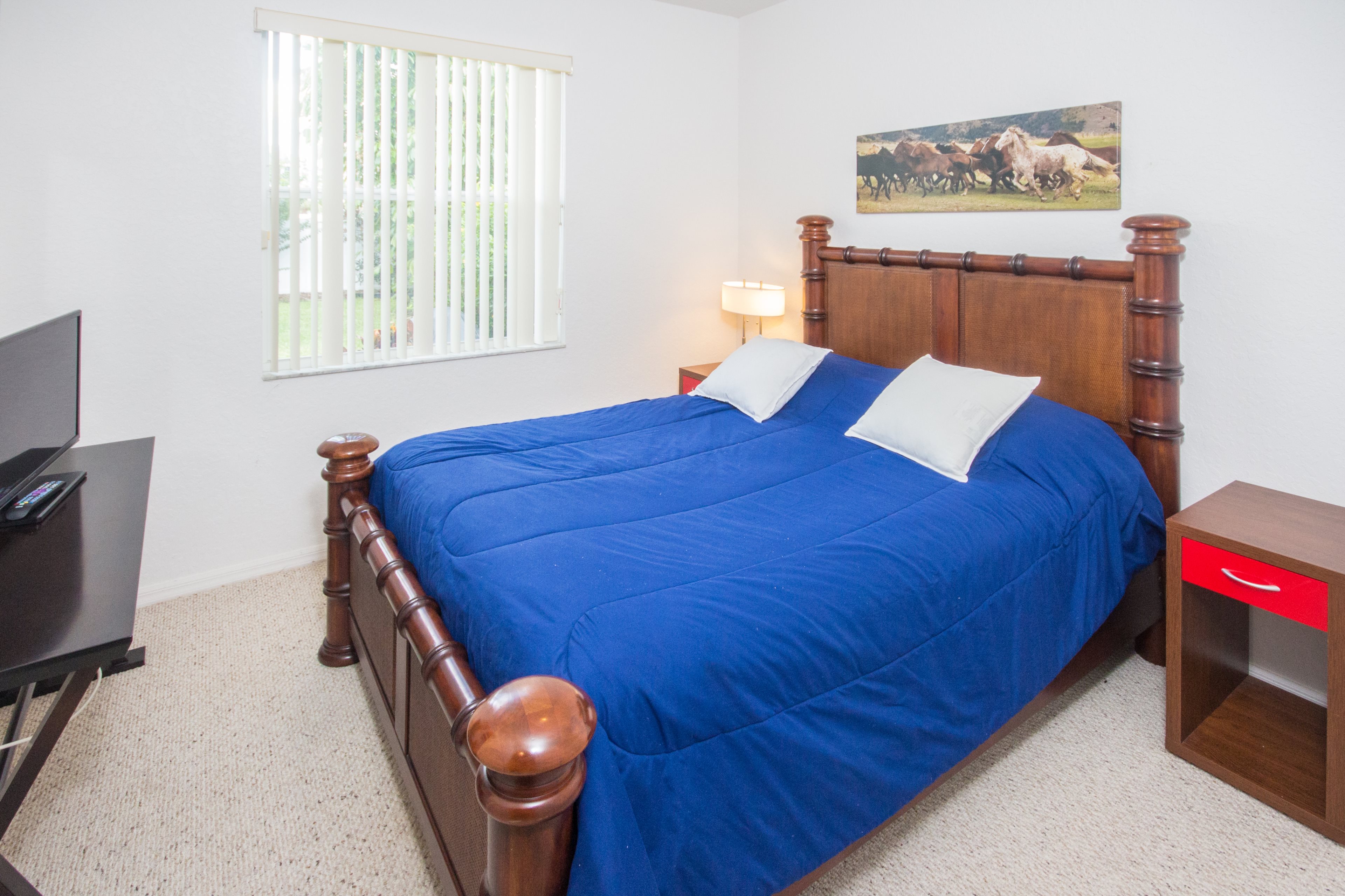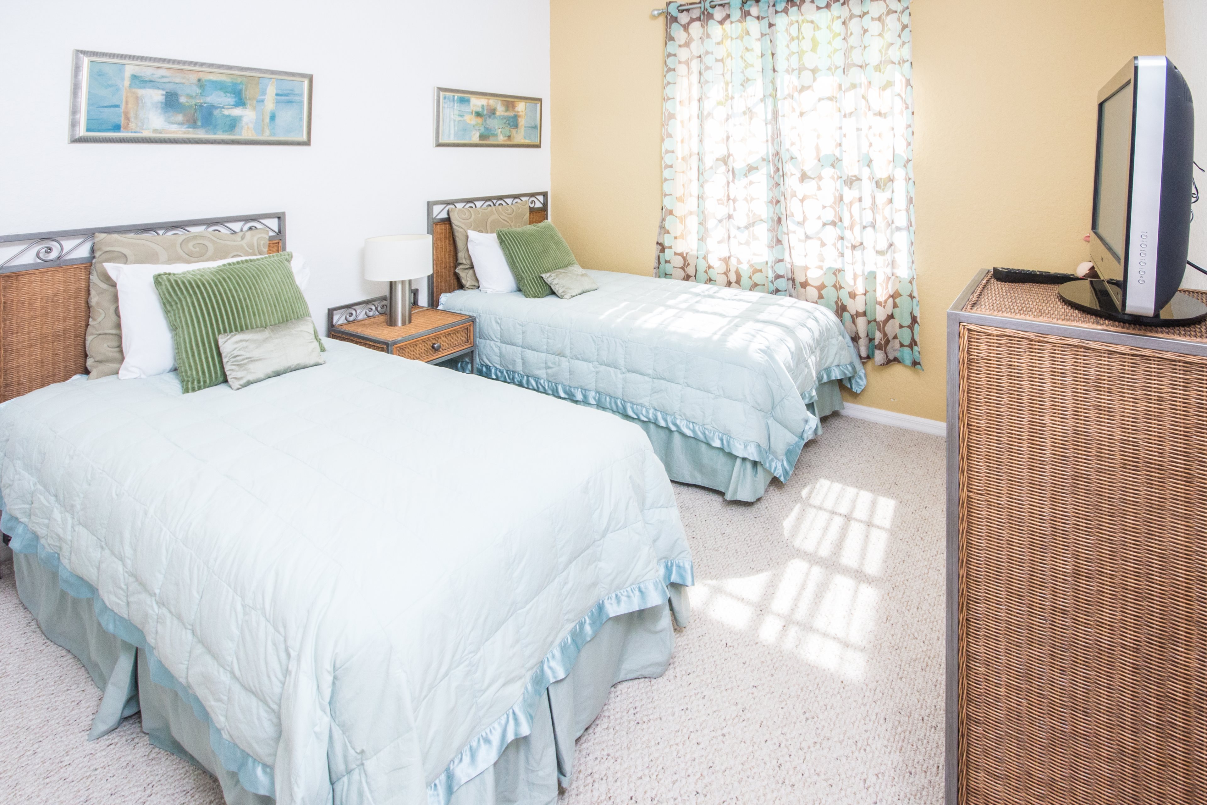 How does 4 bedrooms, 3 bathrooms, a games room, a private pool, and over 2,300 square feet of space sound to you? Thinking this might be a good fit? Read on. The exterior of the house is sharp, and well-manicured. As you enter the villa, you’ll notice the vaulted ceilings, which make all communal rooms appear large and airy. The first room you’ll notice is the living room. It has a very large, curved sectional sofa, which will seat eight or more people. It also has a large flat screen TV centered between two built-in bookshelves. This is the room that you’ll want to come to when you want to relax with a movie or book on the comfortable sofa after a long day out at the park. Behind the living room is the kitchen. It is large, open, and comes fully-equipped with all the utensils and equipment you could need to cook a meal. It also has plenty of countertop space, modern appliances, and a breakfast bar with seating for up to three. Need more room? There’s a breakfast nook just off to the side of the kitchen, and large formal dining suite with seating for up to 6 in the room next to the kitchen. There are 4 bedrooms. Bedroom number 1, the master bedroom, has a king-size bed and en-suite bathroom. Bedrooms two and three both have a queen-size bed. Bedroom four is ideal for the younger members of the family since it has two single beds. Don’t worry, all bedrooms come with their own TV, so no one should be fighting over the living room TV remote. I left the best for last: the pool and games room. The games room is in the converted garage, and it has a pool table and an air hockey table. The screened in pool area plays host to a variety of things to do. You can swim in the private pool, take a dip in the spa, catch some sun on the sun loungers, or, if you don’t want any more sun, you can retreat to the covered lanai where you can sit down and relax.