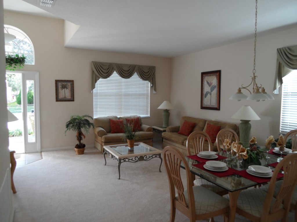 With its 4 bedrooms and 2 bathrooms, this large single storey home in Highlands Reserve can sleep up to 10 guests at once. As soon as you arrive at the home, you’ll feel welcomed with the large shaded front lawn ideal for playing children and the double garage parking space. This home is a favorite amongst families with young children, and the community’s proximity to both Disney World and some of Florida’s top golf clubs will delight everyone.