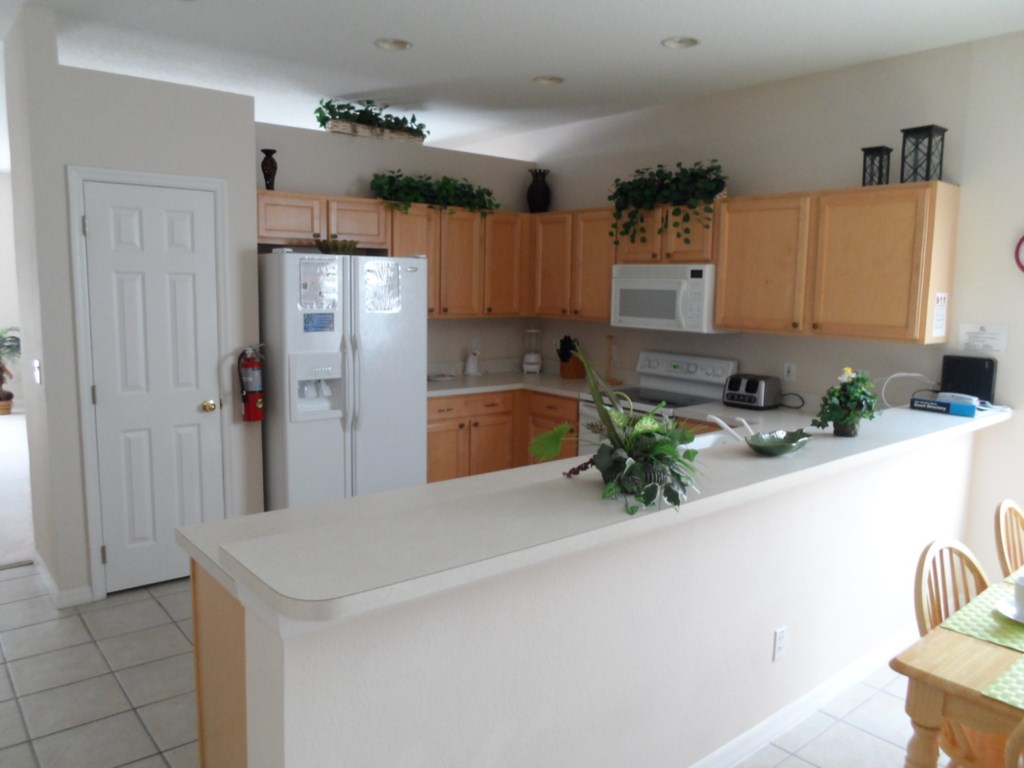 The patio area has a beautiful lagoon shaped private swimming pool and this is the perfect place to relax and unwind after a busy day of sightseeing. The pool’s deck area is west-facing, meaning you’ll also be able to take advantage of the splendid sunsets in the evening. There’s a covered lanai area that is ideal for getting some shade or al fresco dining after cooking your own barbeque. Here you’ll find a patio set that has 4 cushioned chairs. If you want to catch some rays, there are also 2 sun loungers at your disposal.