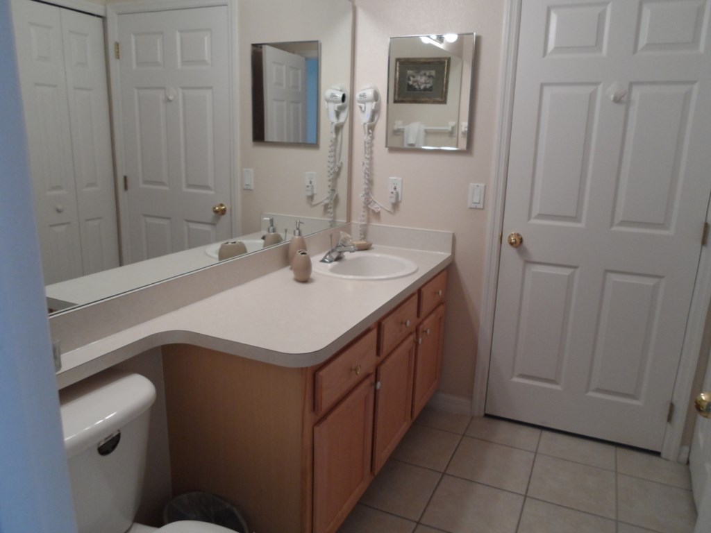 There are 4 spacious bedrooms in total, all of which have large windows. The master room has a king sized bed and boasts beautiful bedroom furniture and a 20” TV. The room opens up onto the patio area and you’ll be able to enjoy the morning sun and gorgeous views. The second room has a queen size bed and a 19” inch TV. The other 2 rooms are brightly decorated and have twin beds, which would be ideal for any younger guests. All of the bedrooms and the family area have ceiling fans to ensure you remain at a comfortable temperature during the hotter months.