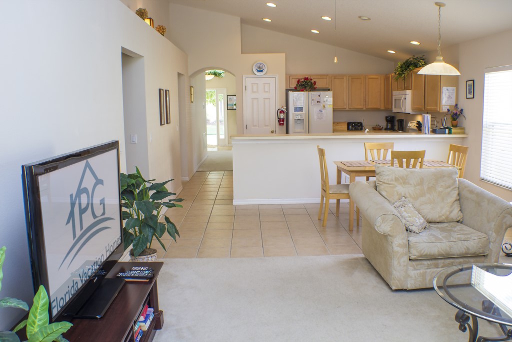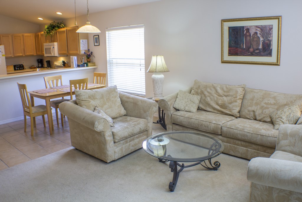 The living room is a great space with comfortable sofas where you can kick back in style and watch the 60” flat screen TV and DVD player. There is also a second living area where guests can relax.