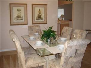 The dining room has been decorated with great artwork that complements the modern chairs of the glass dining room table. The formal dining area can accommodate 6 guests. The kitchen has a truly luxurious feel to it. There’s lots of cupboard and counter space, making this an easy kitchen to use. It’s also equipped with the latest in technology when it comes to kitchen appliances. To the side, there’s a small breakfast nook that allows for more informal eating.