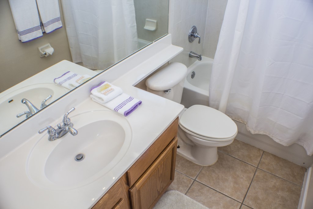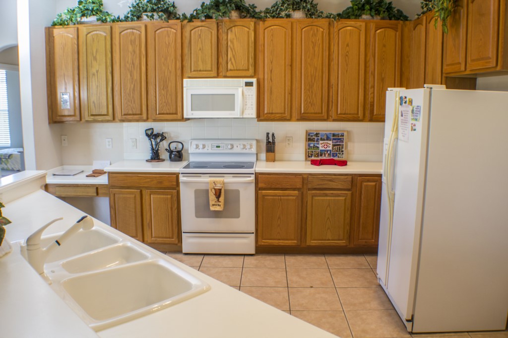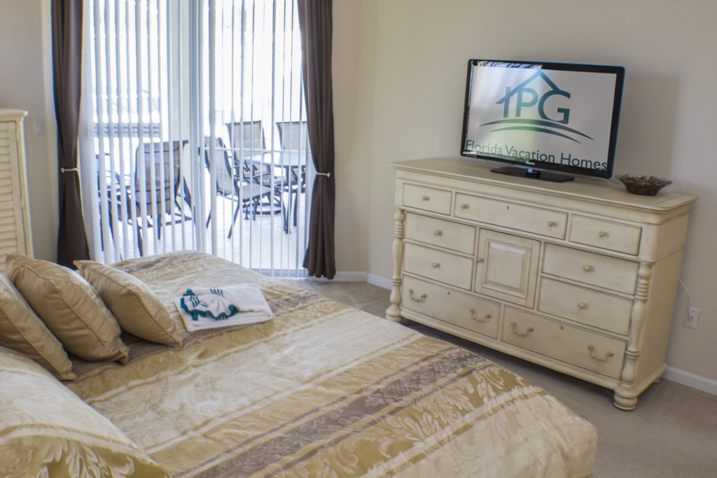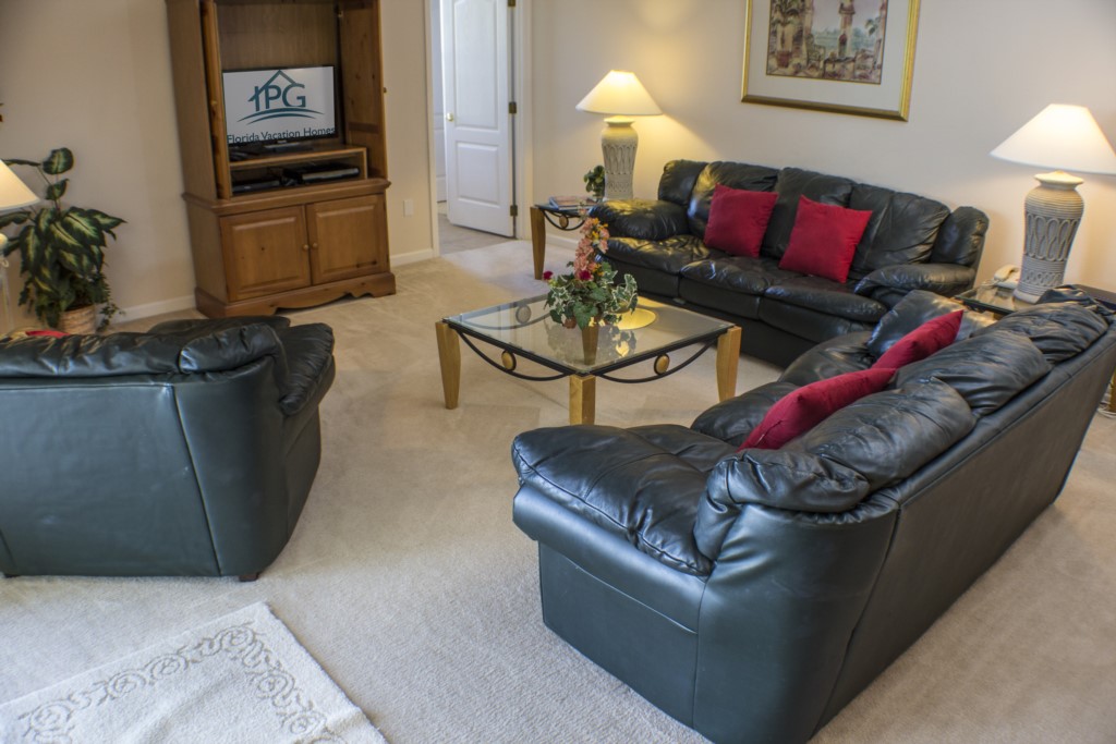 The living room is comfortably decorated and it is the perfect place to relax after a busy day of sightseeing. Additionally, there’s also a family room which has more of a relaxed atmosphere. If you wish to dine formally, you have the choice of sitting at the modern glass dining table that can seat up to 6 guests. The large tiled kitchen with wood décor is a perfect place to prepare meals and cook as it has every appliance imaginable. There is also a separate kitchen dining area for less formal occasions. This home also has its own laundry room with an industrial sized washing machine and dryer. You will be able to easily keep in contact with friends and family while you’re away with the Hi-Speed internet connection.