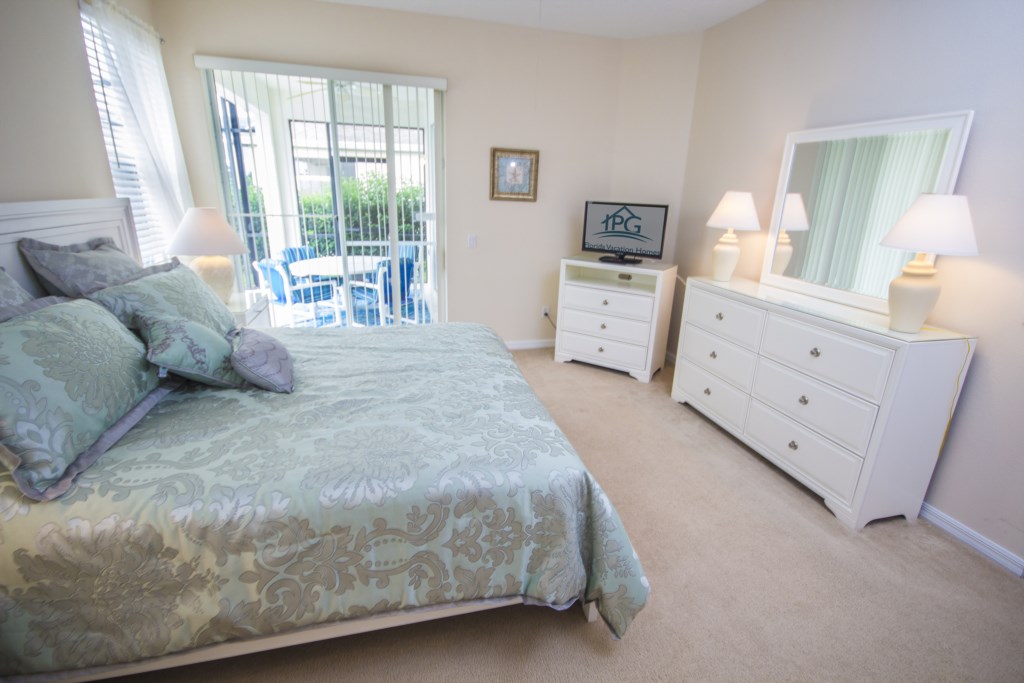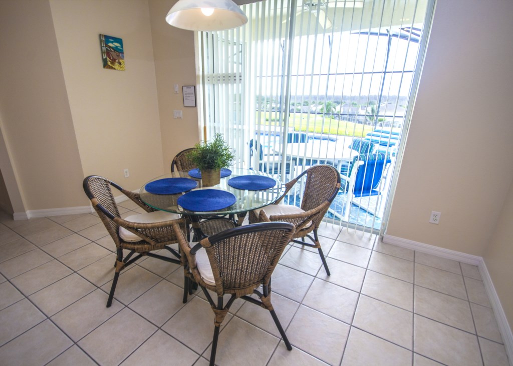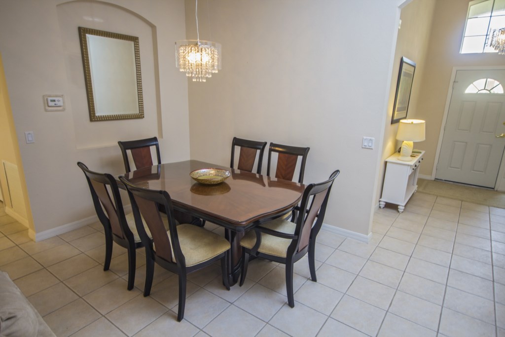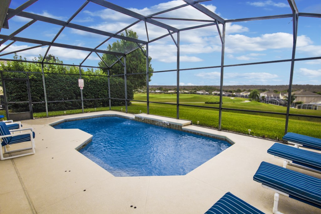 The favorite area of the home would have to be the pool area. Overlooking the golf course, this gorgeous pool is perfect for exercising in or just playing around in. The large patio area is welcoming and a number of new and cushioned sun loungers line the pool’s side. If you want to escape the sun, you’llalso have the option to sit under the covered lanai area where there’s a comfortable table and outdoorseating that could comfortably seat 4-6 guests.