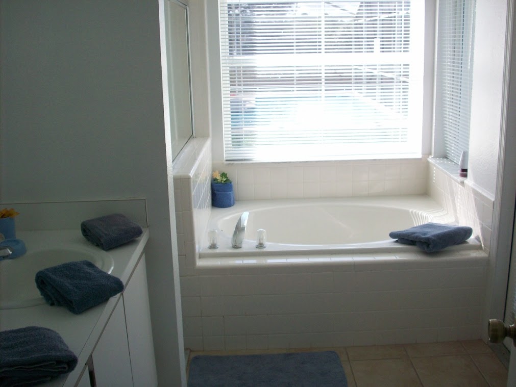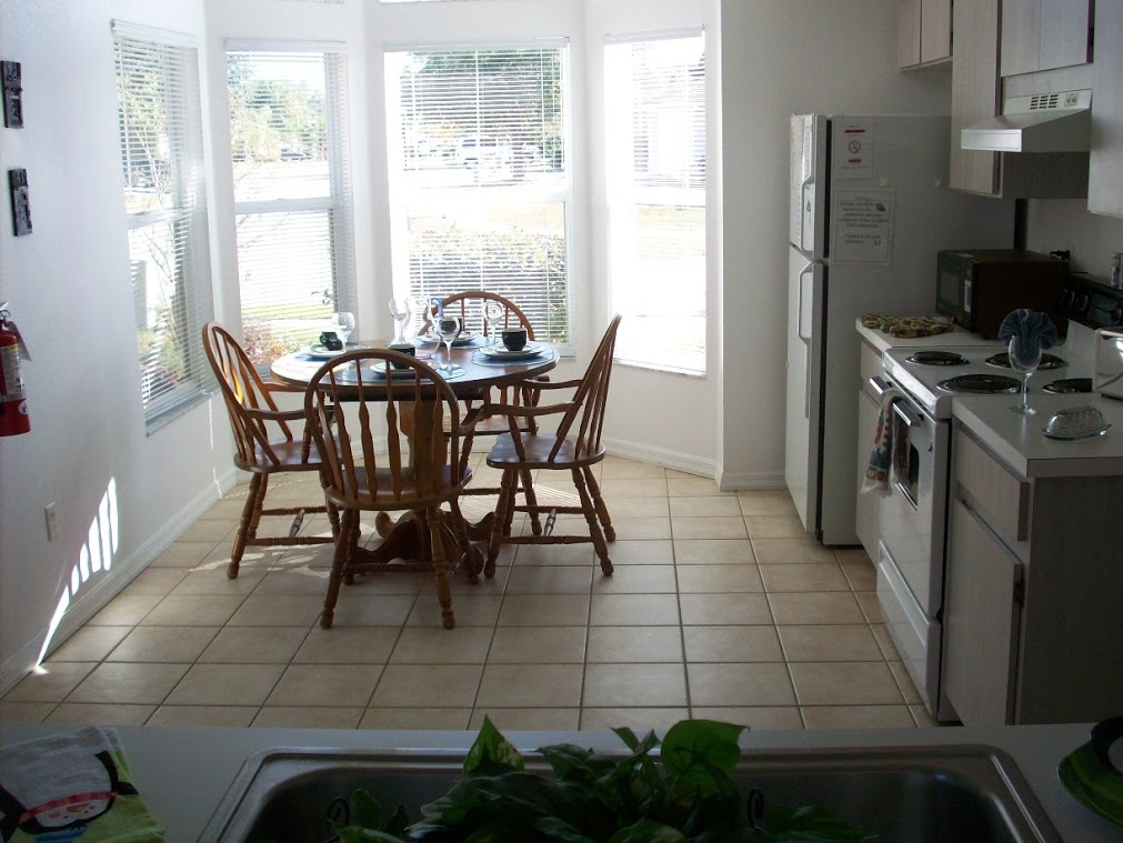 The kitchen has a large window that attracts the warm sun during the day. It is a great space and comes fully equipped with all the necessary appliances and utensils. The modern granite counters are a plenty and very easy to clean.